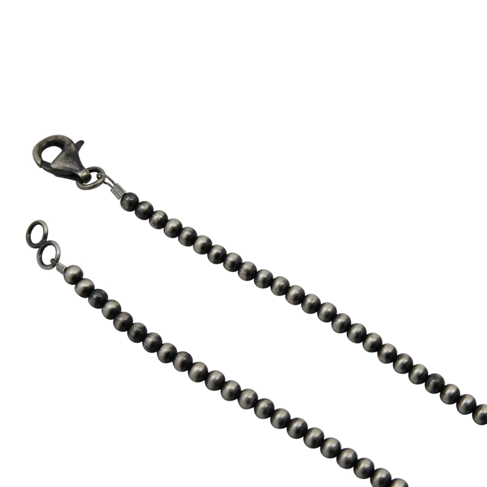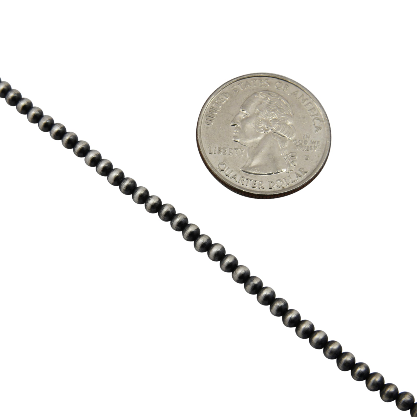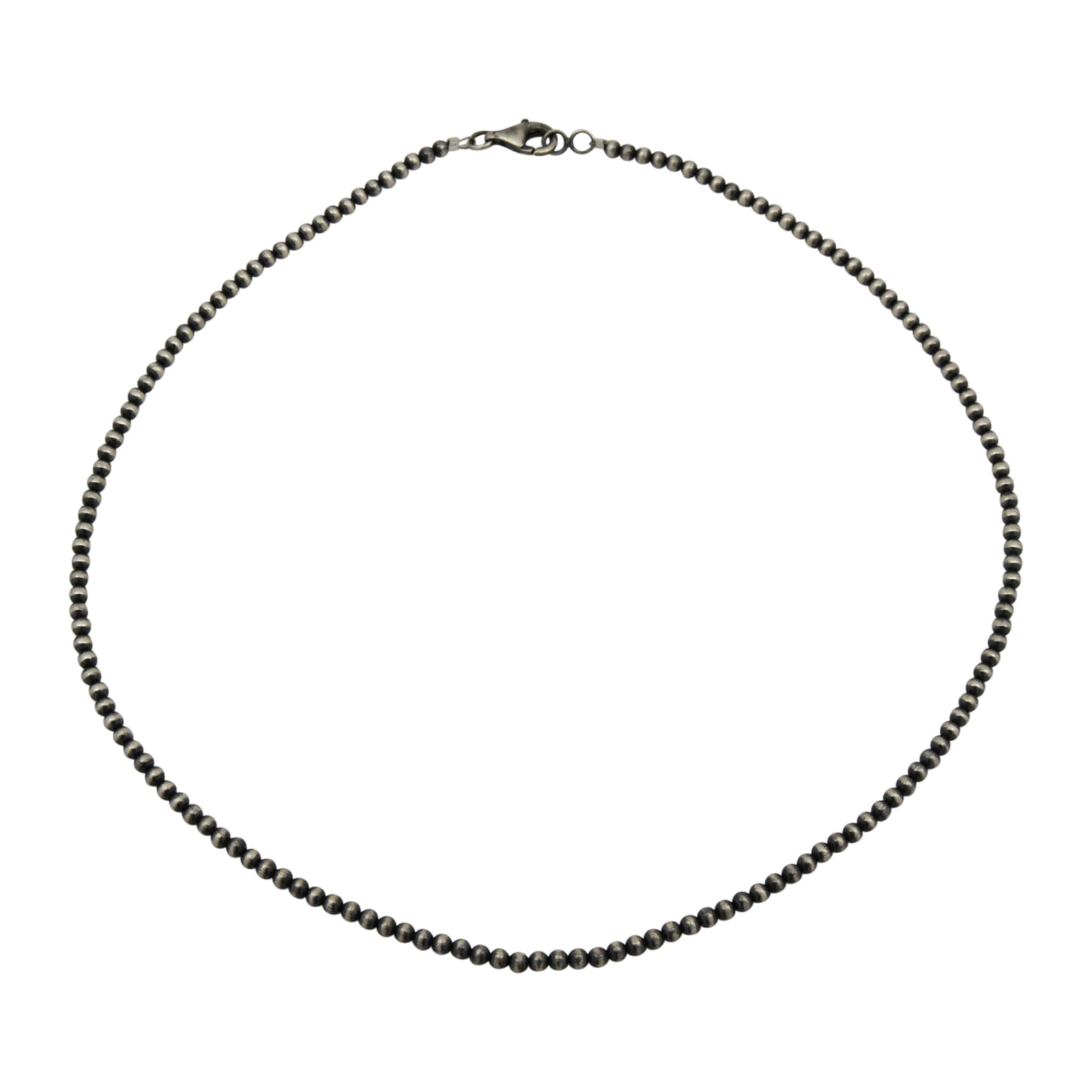 Sterling Silver Navajo Pearls 3mm Oxidized Bead Necklace. Also known as Santa Fe Pearls or Desert Pearls. The artist hand strung a single strand of 3mm silver beads. Available in multiple lengths. Longer lengths can be wrapped to give graduated or double look and feel.