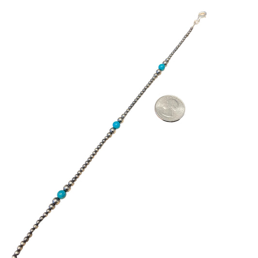 Blue Turquoise Desert Pearl Bead Necklace Sterling Silver
