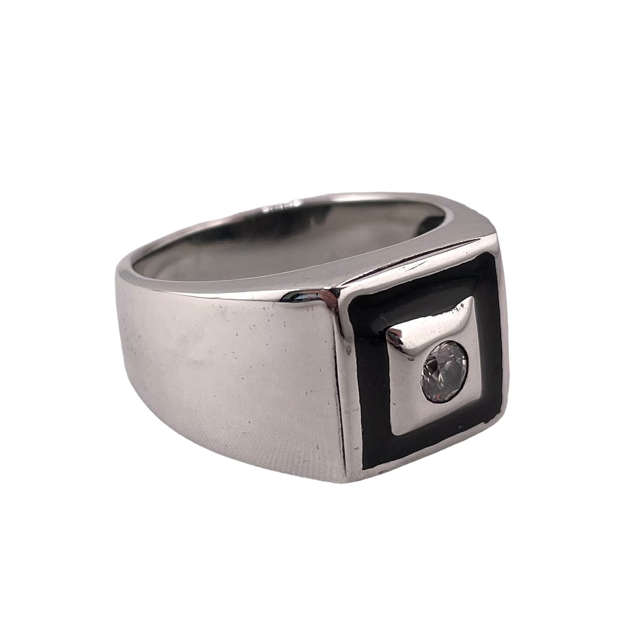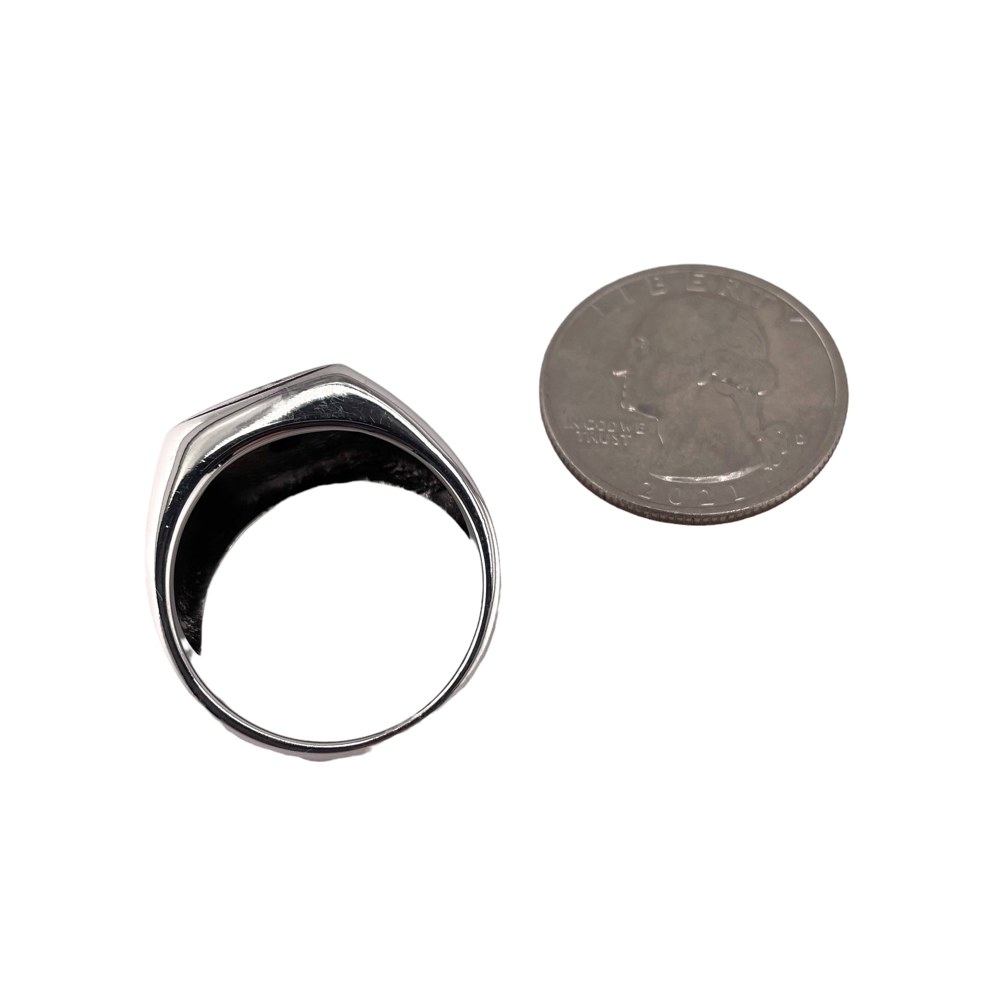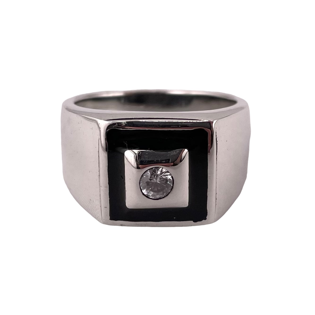Black Onyx & Clear CZ Ring Sterling Silver. This ring measures 13mm length, at the longest point and is available in sizes 8-13.