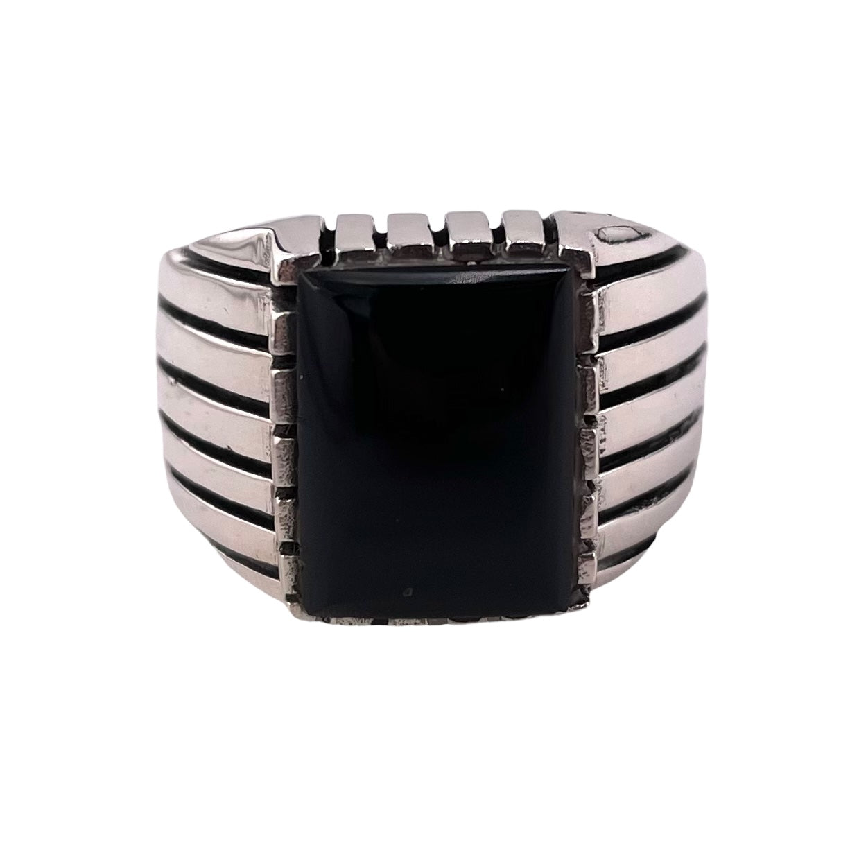 Black Onyx Stone Ring Sterling Silver. This ring measures 16mm length, at the longest point and is available in sizes 8-12.