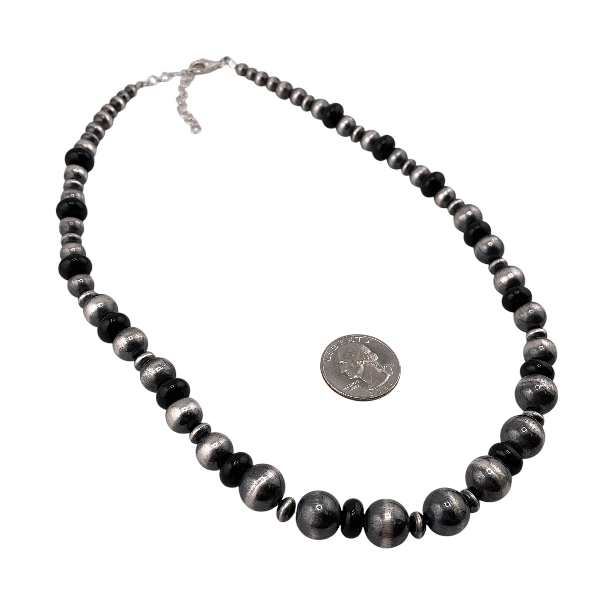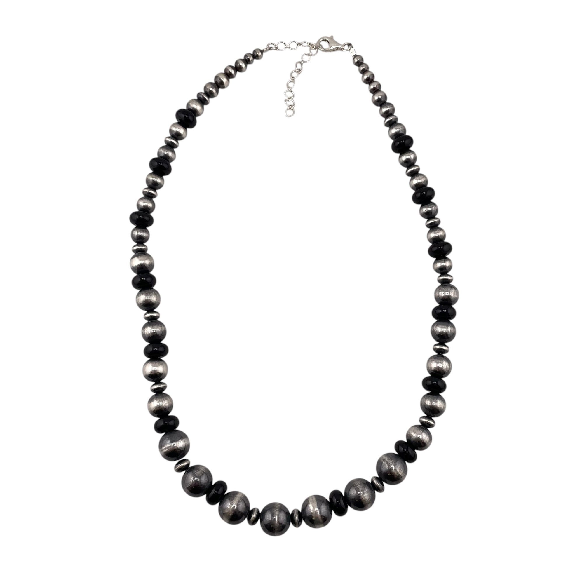 Black Onyx Desert Pearl Graduated Mixed Bead Necklace Sterling Silver