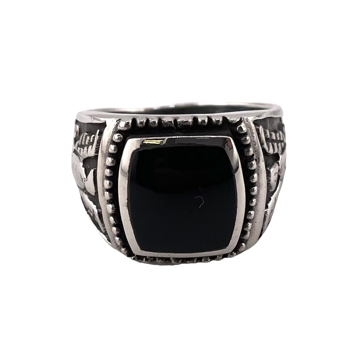 Black Onyx Stone Thunderbird Mens Ring Sterling Silver. This ring measures 16mm length, at the longest point and is available in sizes 8-12.