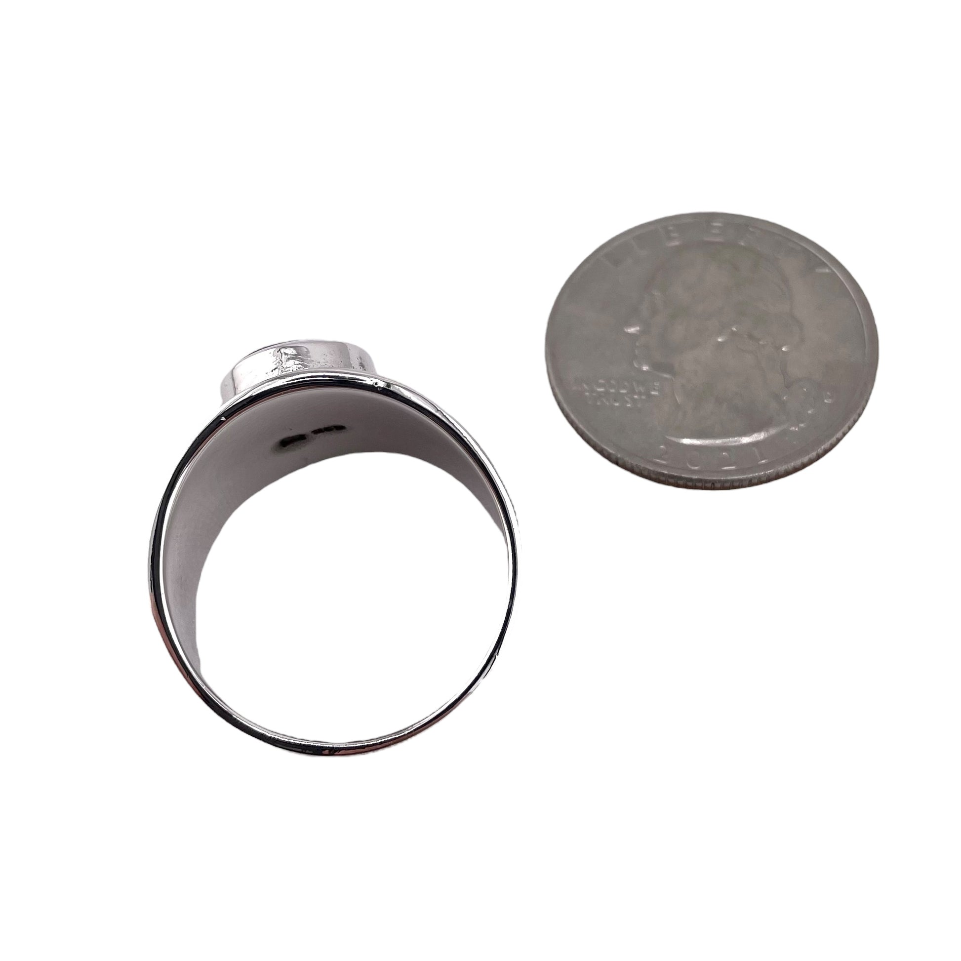 Black Onyx Oval Stone Sunshine Ring Sterling Silver. This ring measures 5/8" wide and is available in sizes 9-12.