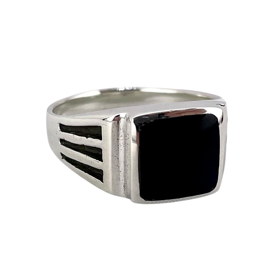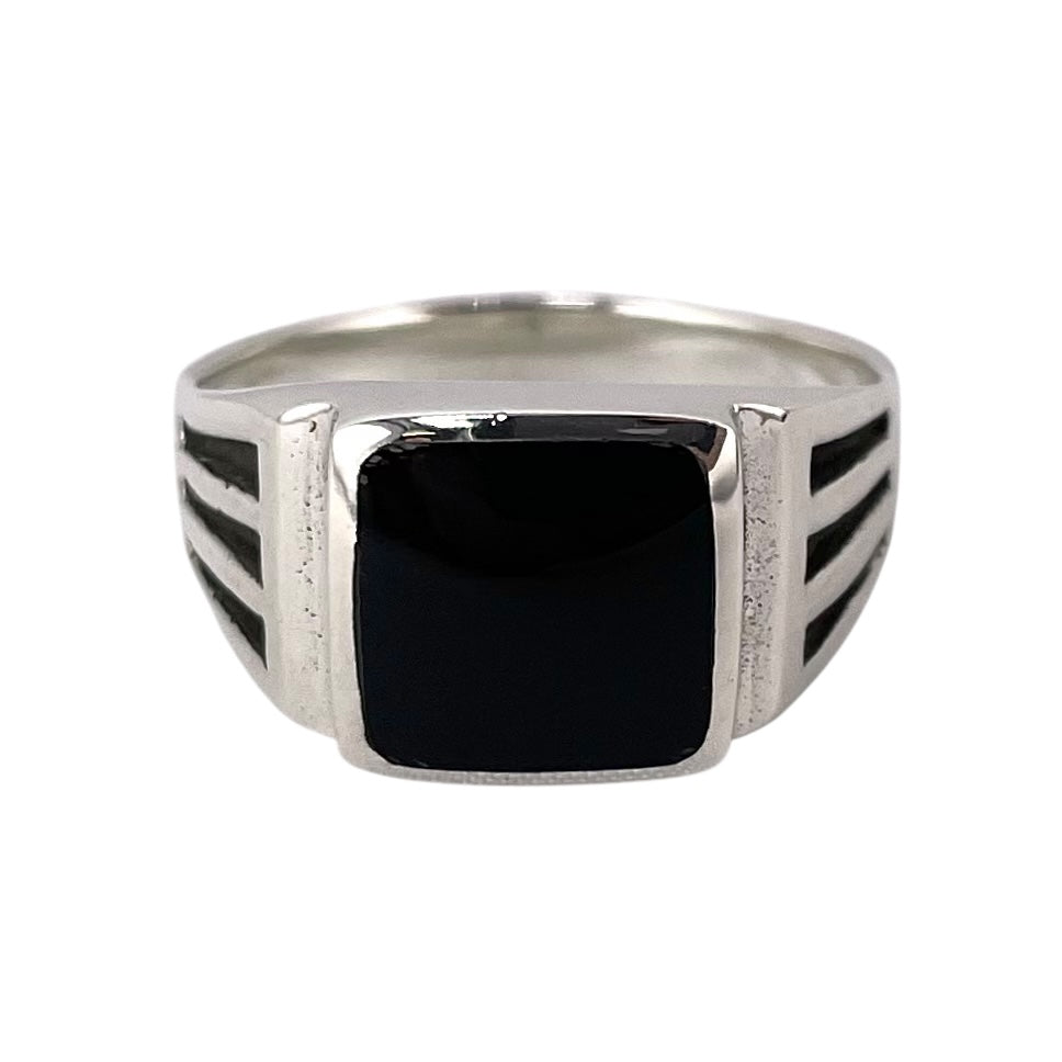 Black Onyx Stone Square Mens Ring Sterling Silver