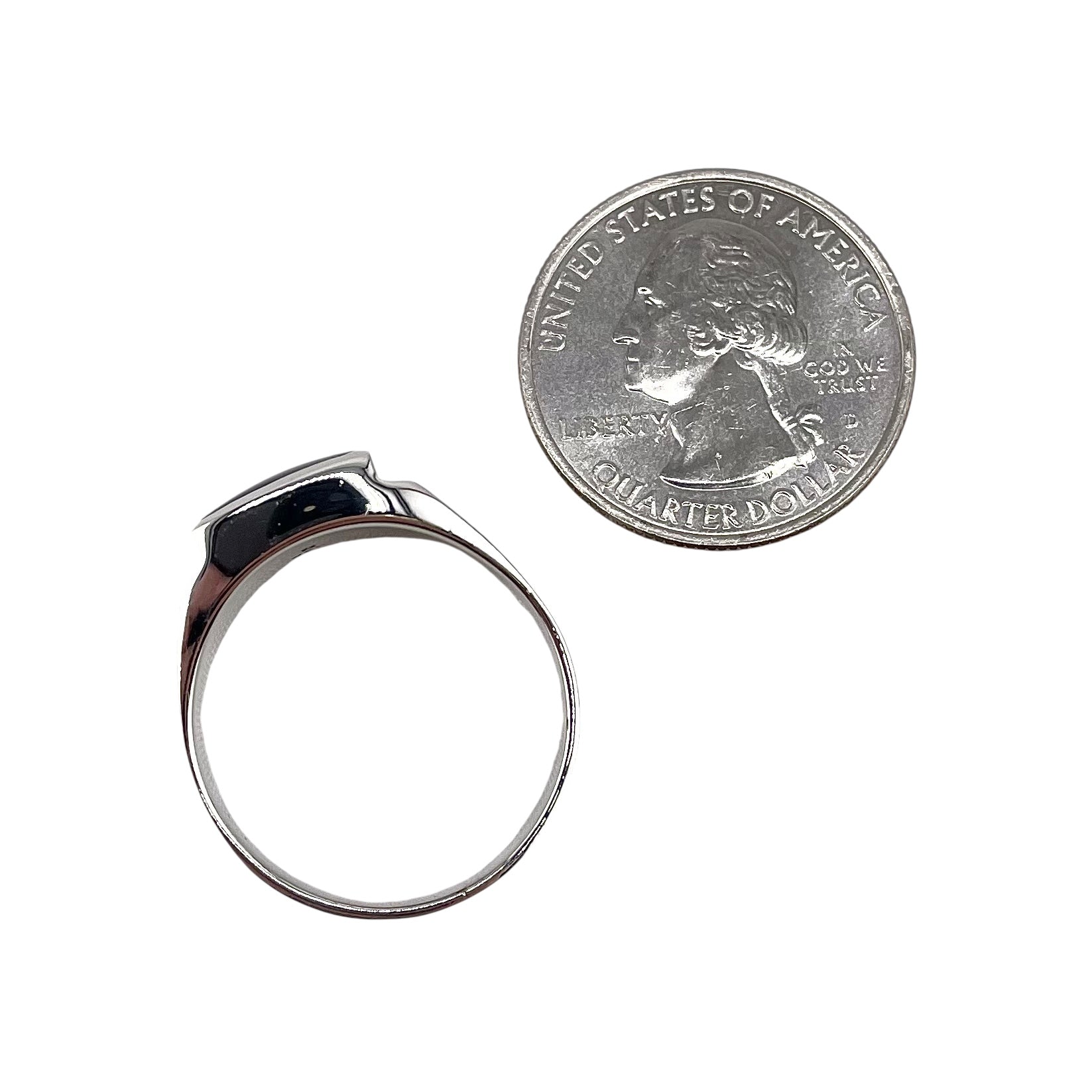 Black Onyx Stone Square Mens Ring Sterling Silver. Ring measures 3/8" wide and is available in sizes 8-12.