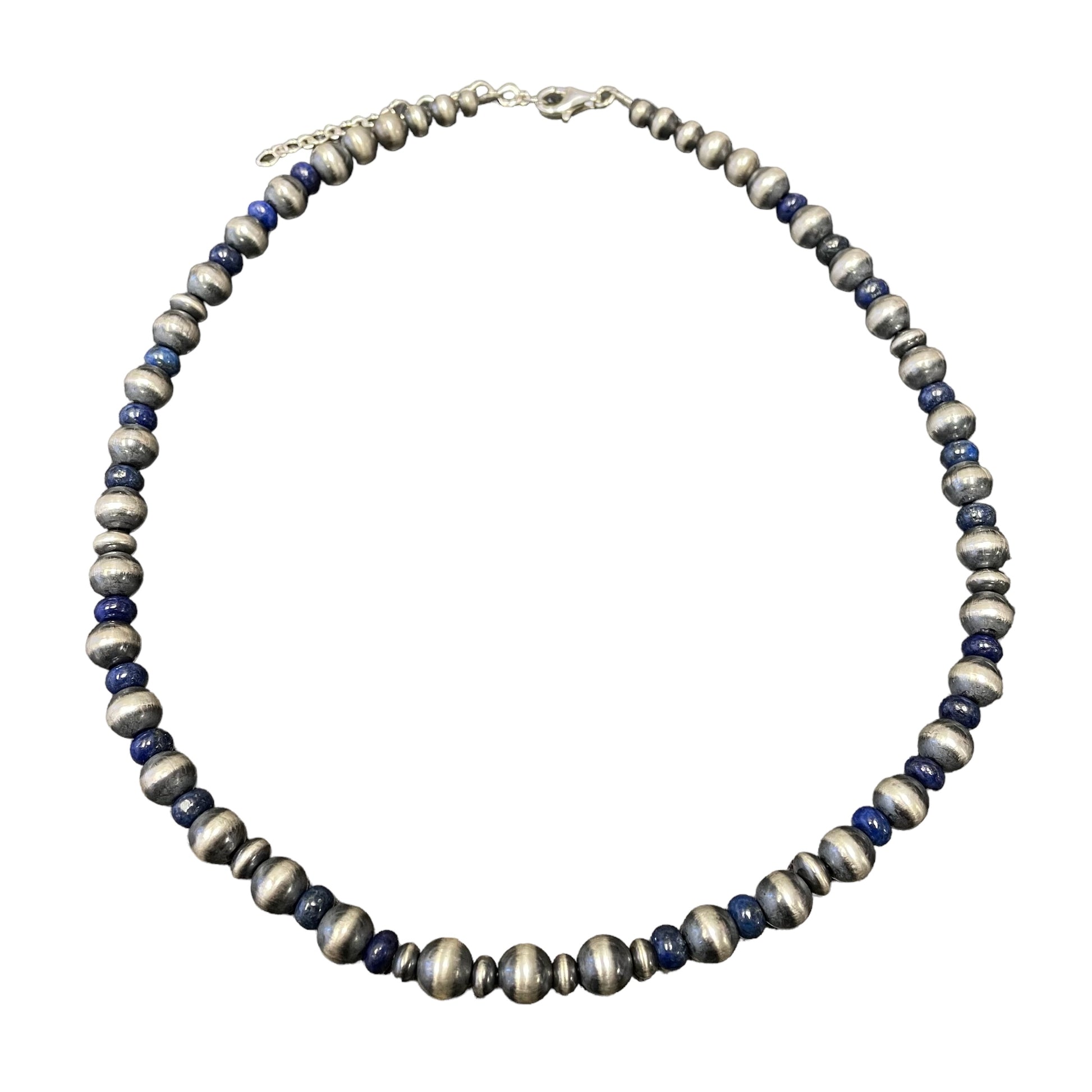 Lapis Desert Pearl Bead Necklace Sterling Silver