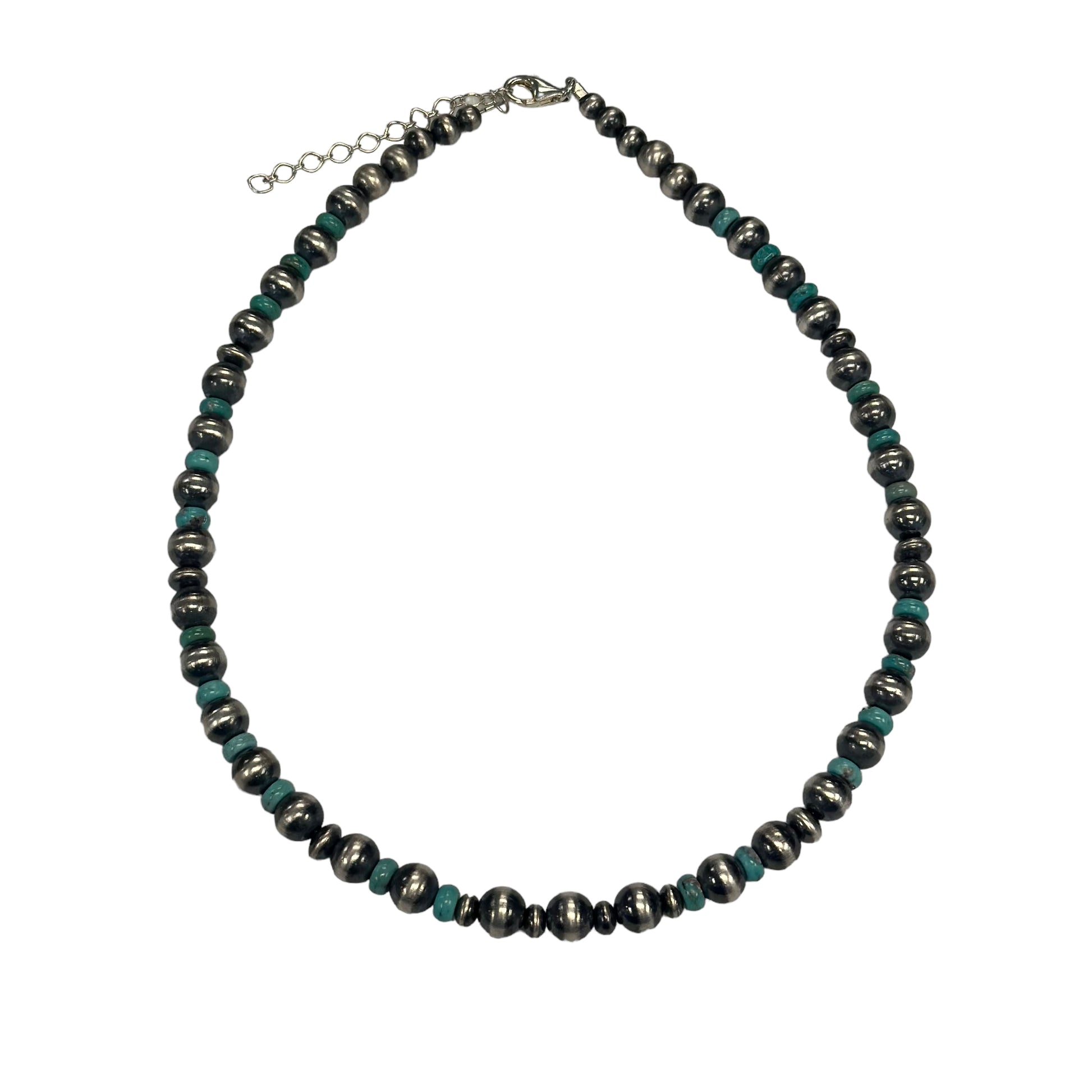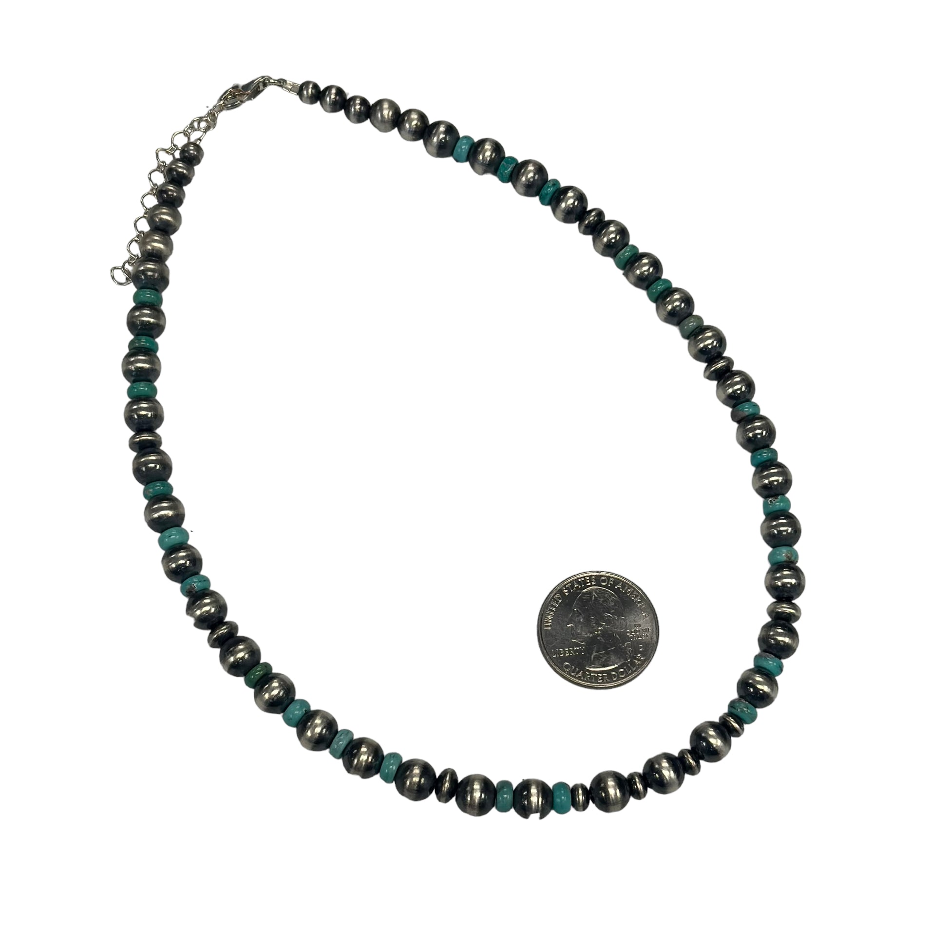 Blue Turquoise Desert Pearl Bead Necklace Sterling Silver