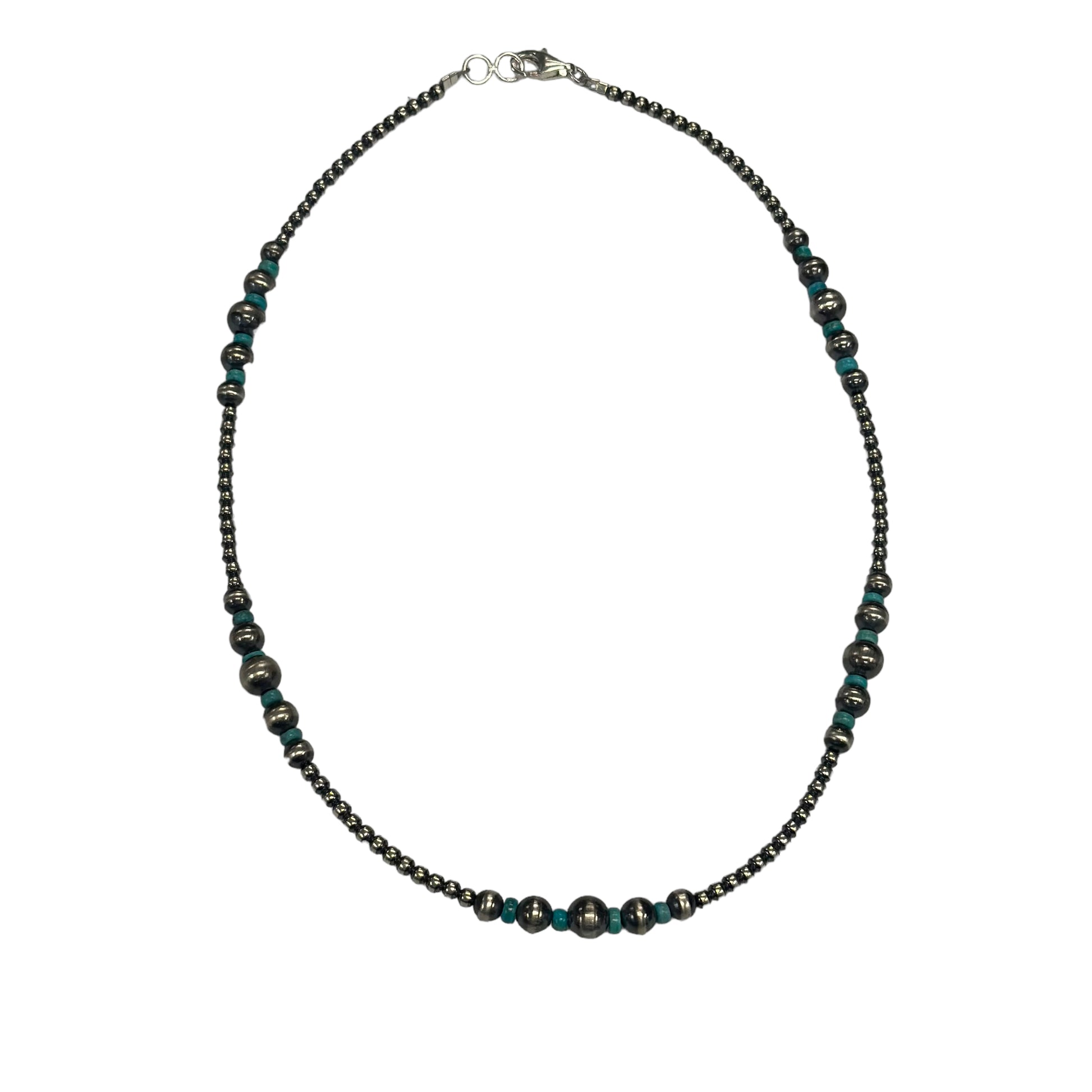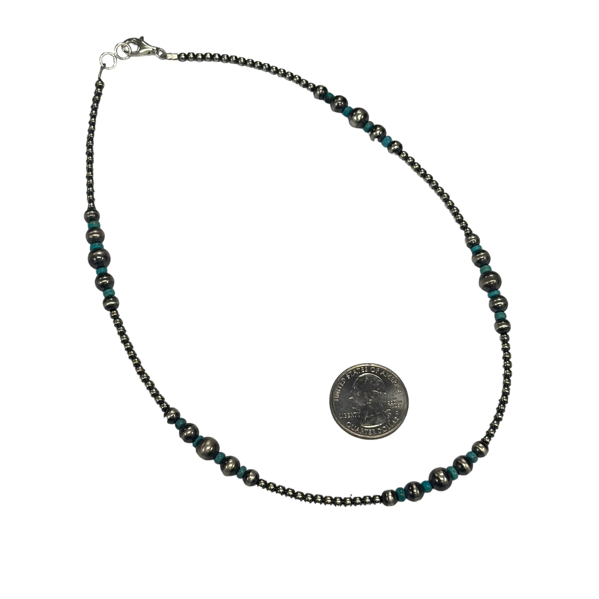 Blue Turquoise Desert Pearl Bead Necklace Sterling Silver