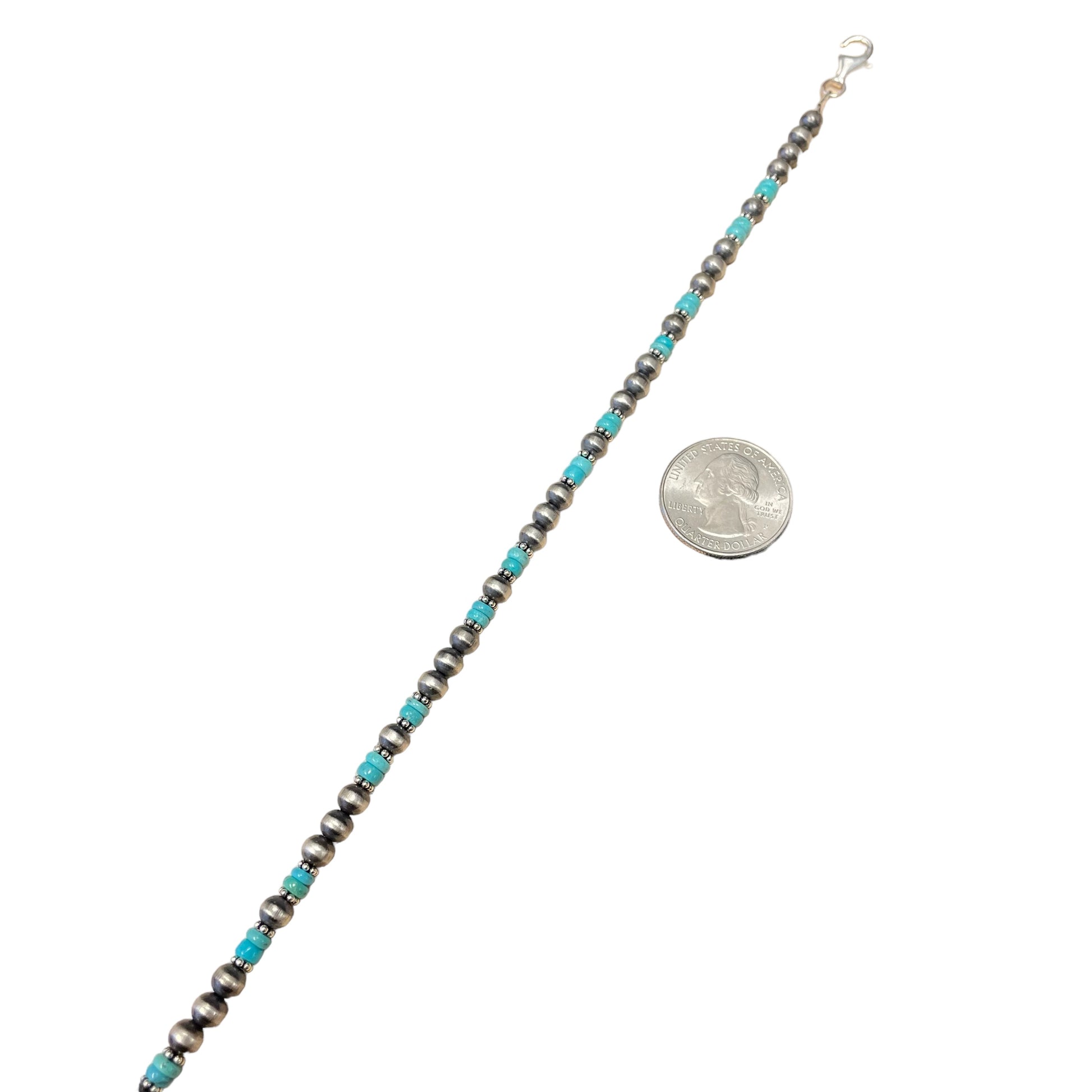 Blue Turquoise Desert Pearl Bead Necklace Sterling Silver
