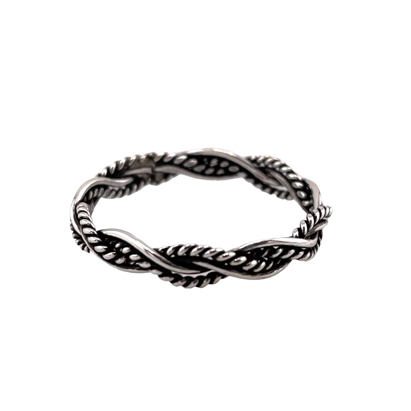 Braided 3.5mm Band Ring Sterling Silver. This ring measures 3.5mm wide. It is available in sizes 4-10.
