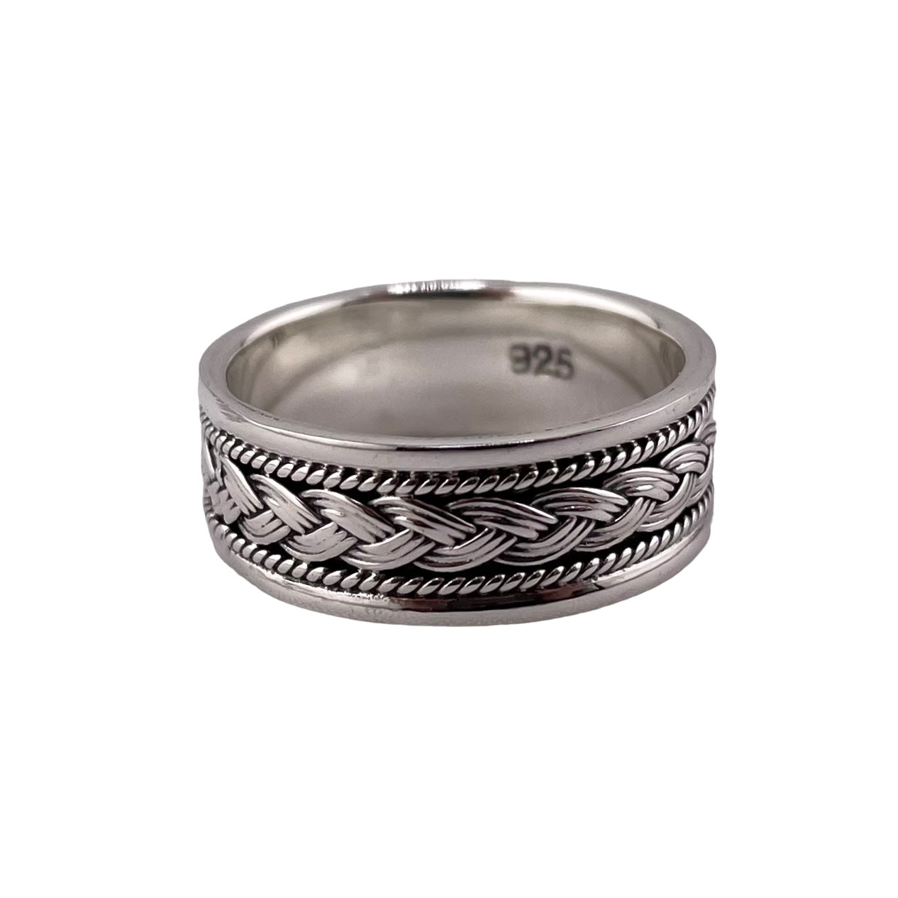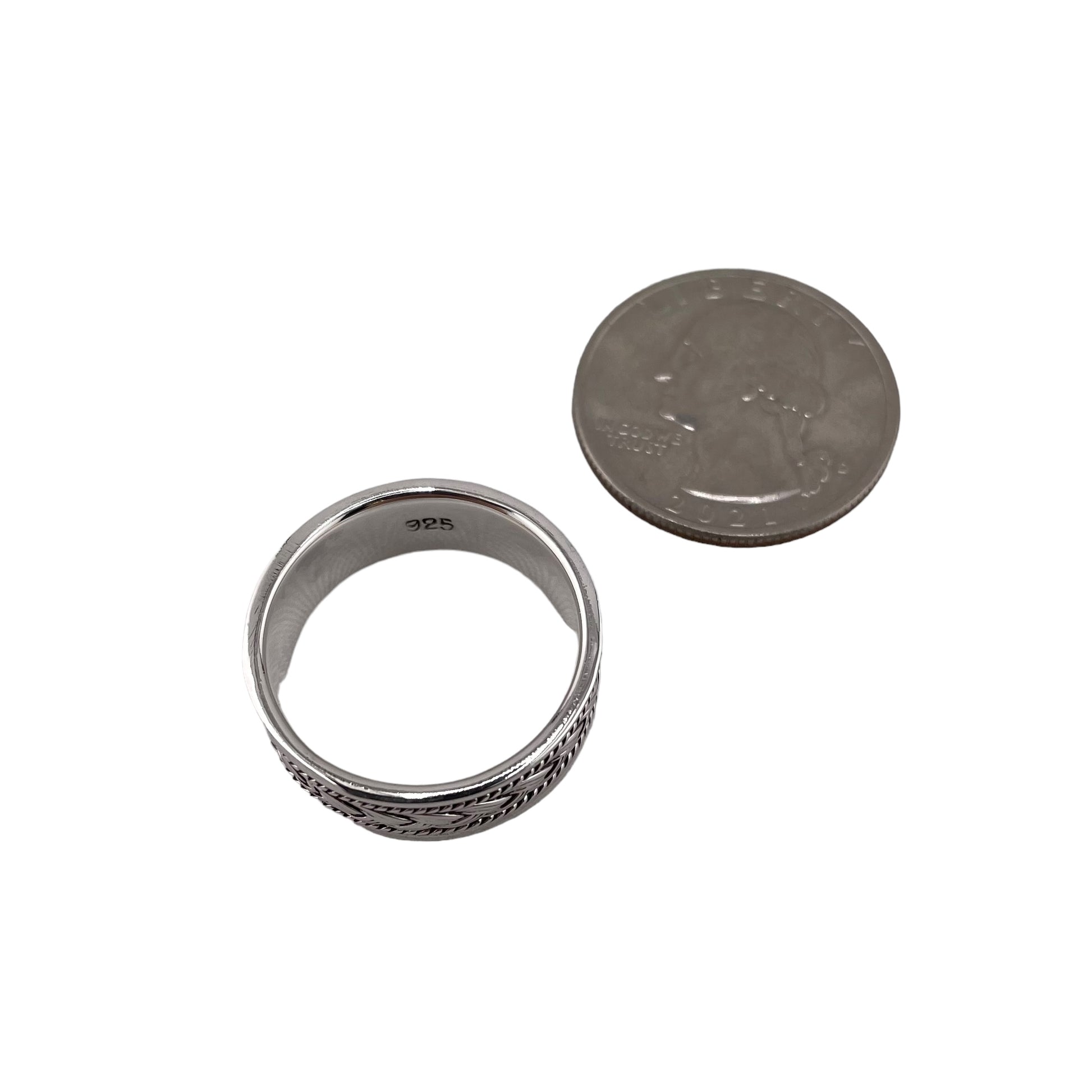 Braided Rope 8mm Band Ring Sterling Silver. This ring measures 8mm wide. It is available in sizes 6-14.