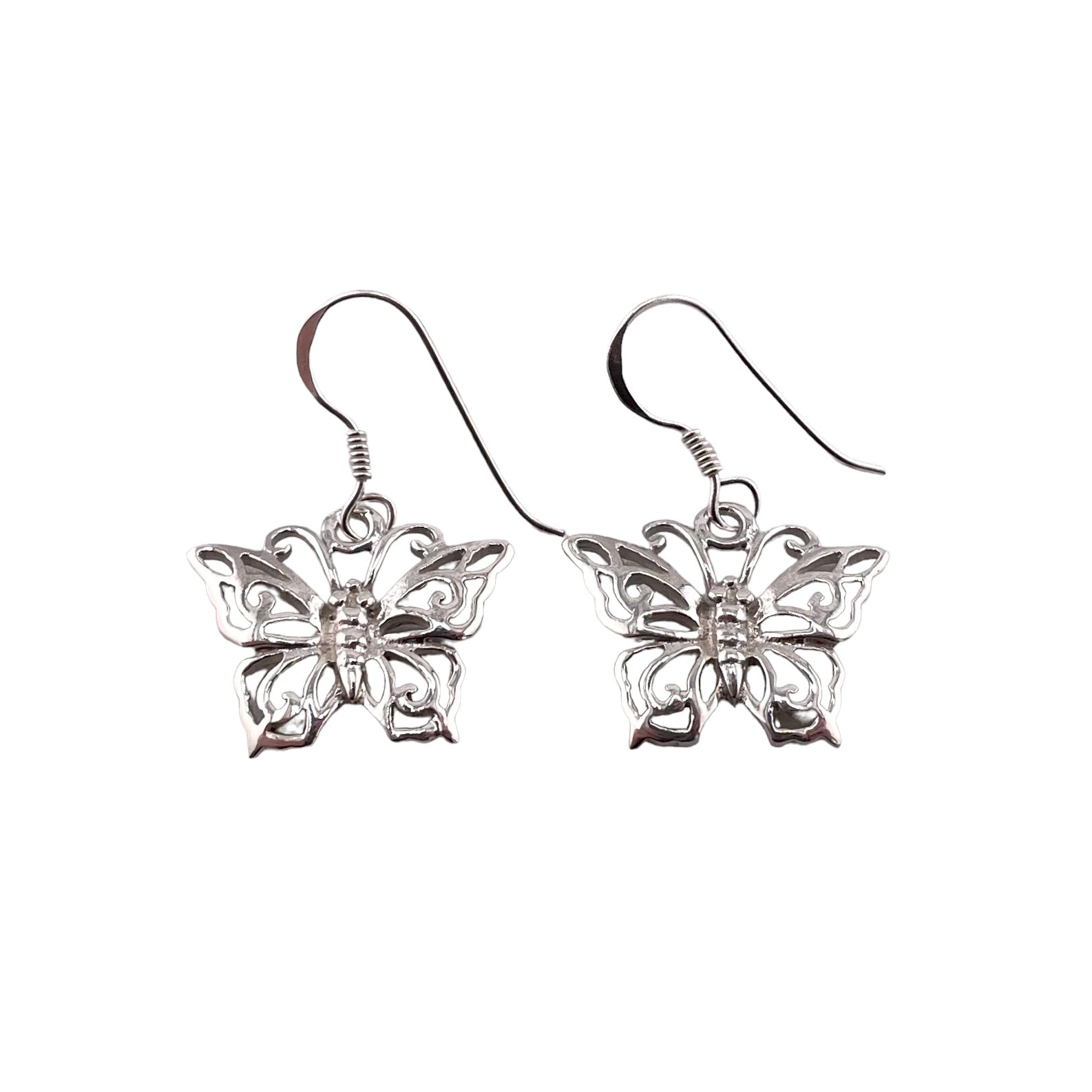 Butterfly Earrings Sterling Silver. Measurements of these earrings are 1- 1/8" long and 3/4" wide.Â