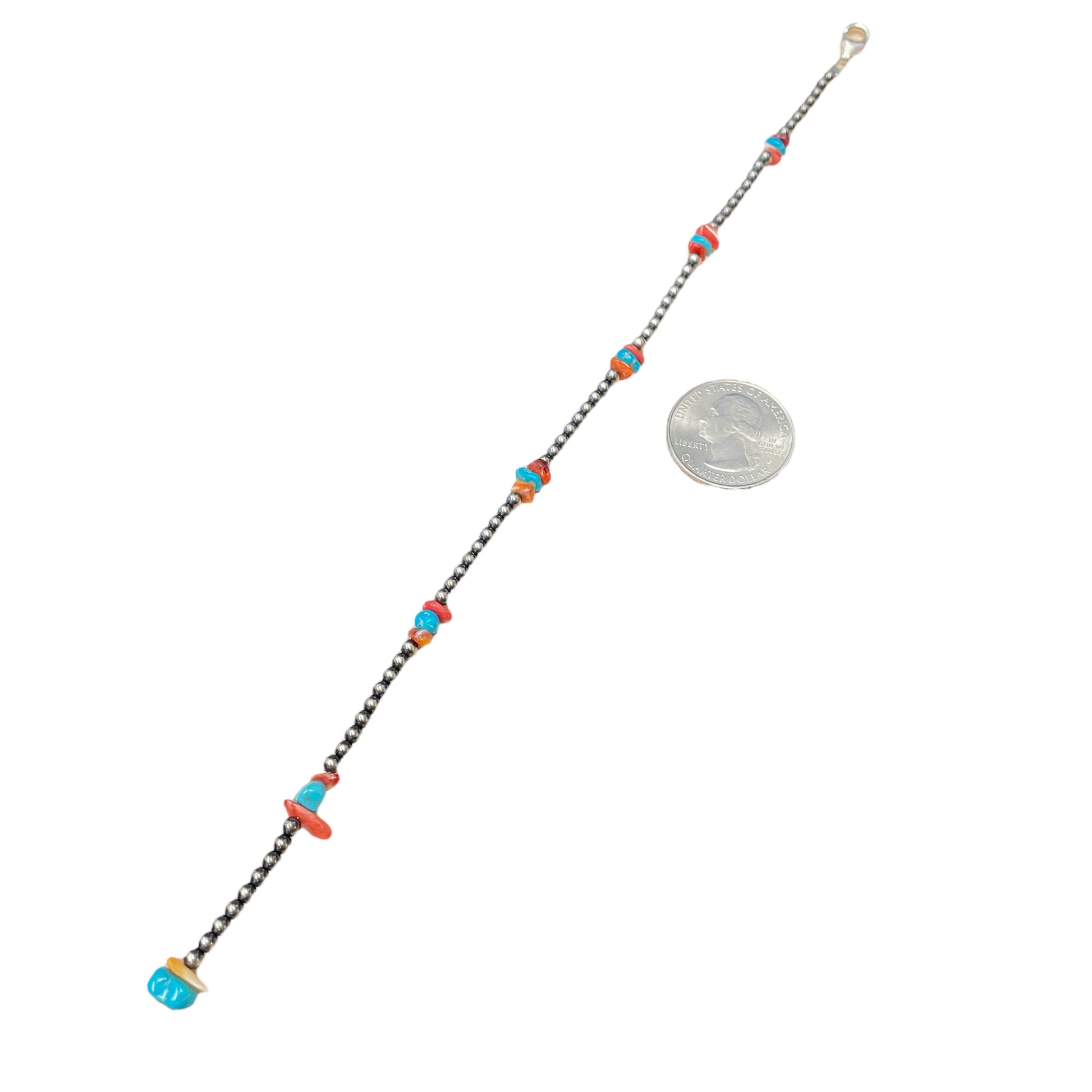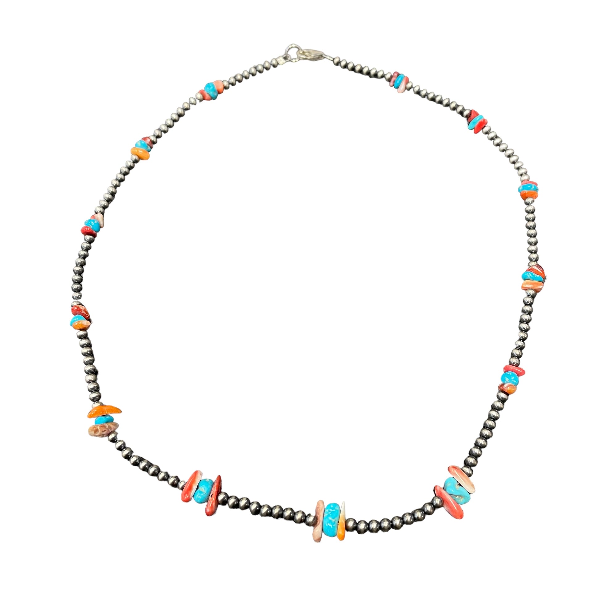 Turquoise & Spiny Oyster Desert Pearl Bead Necklace Sterling Silver
