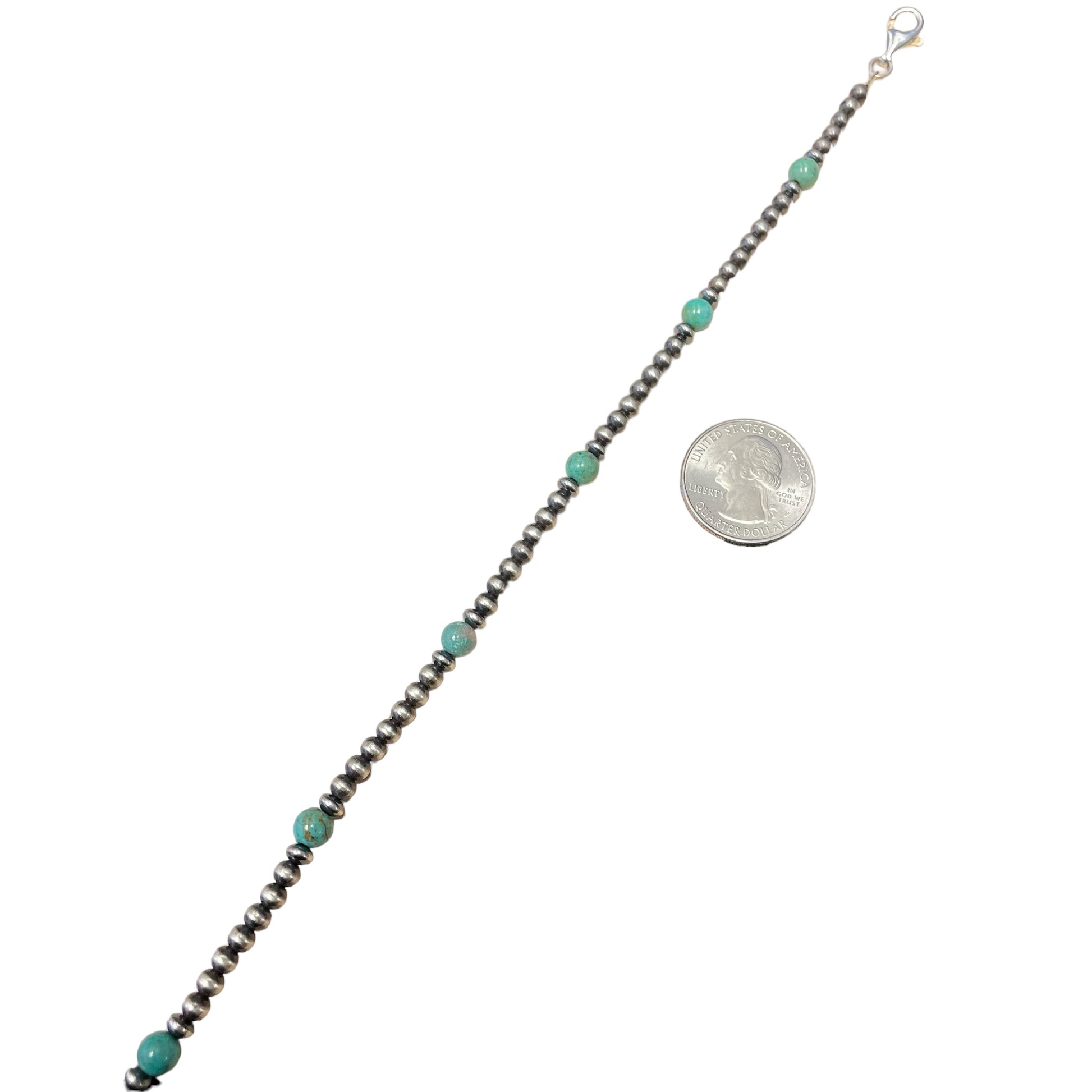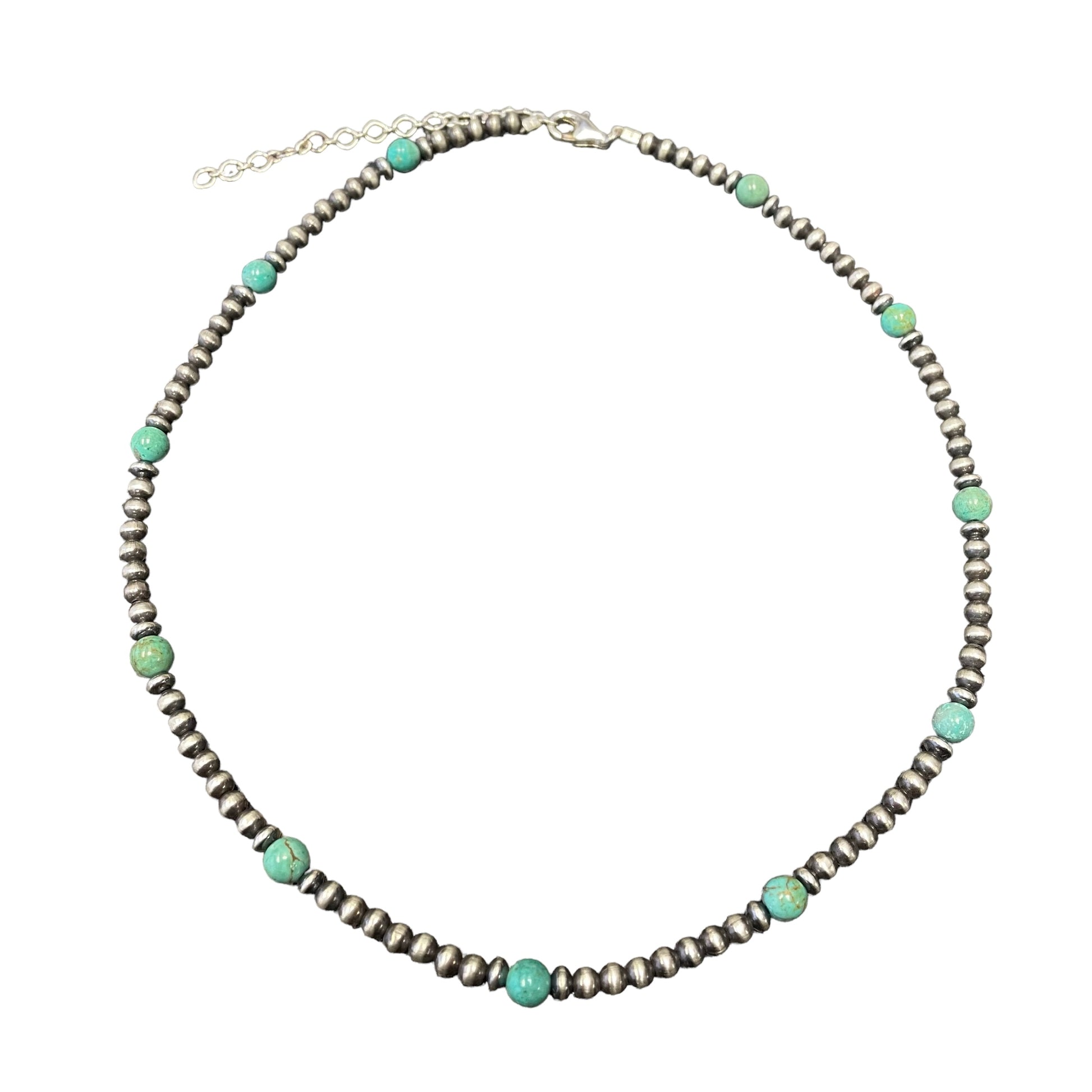 Green Turquoise Desert Pearl Bead Necklace Sterling Silver