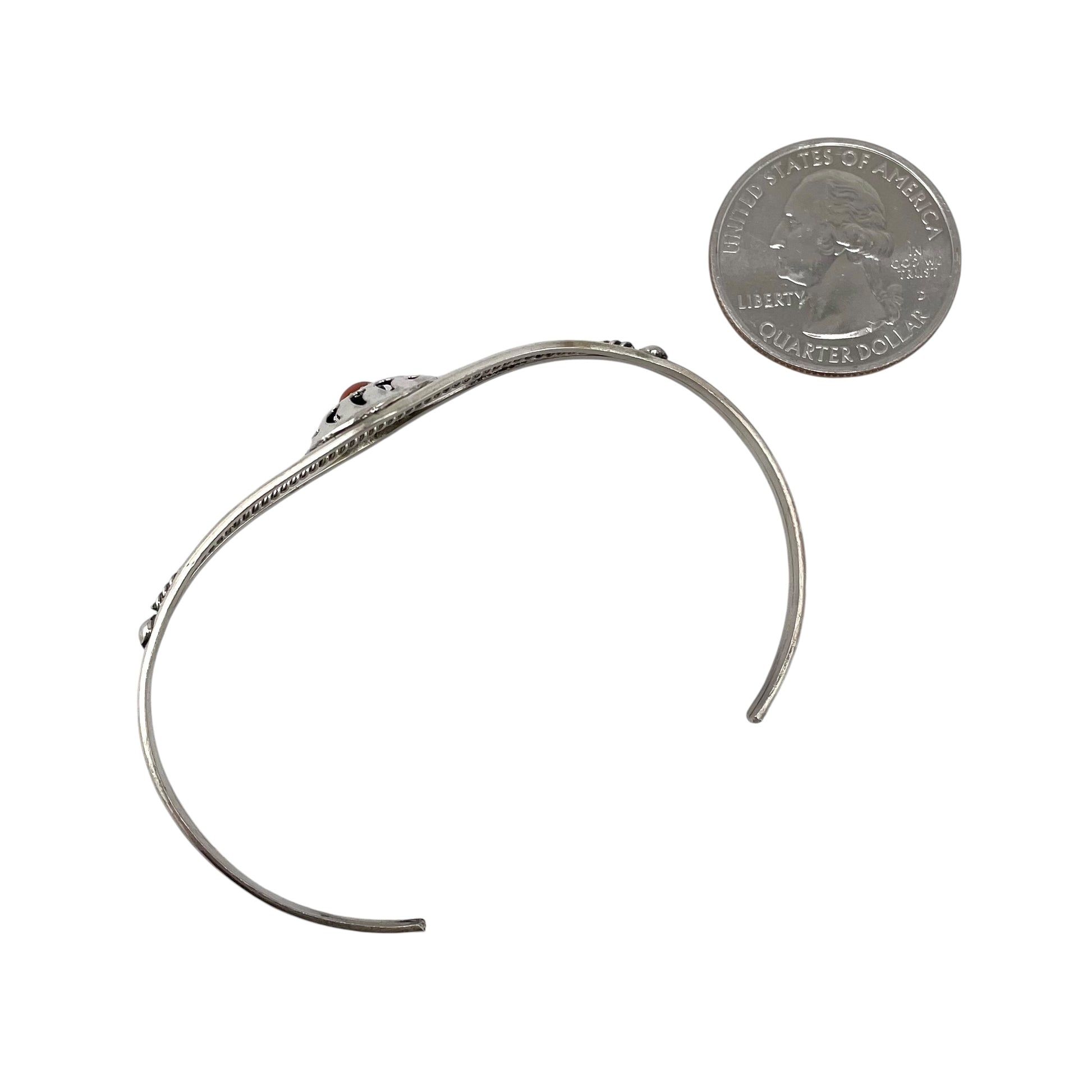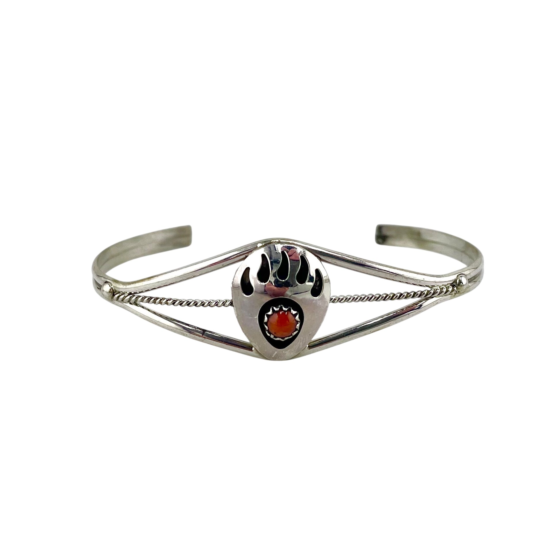 Coral Single Bear Paw Navajo Bracelet Sterling Silver