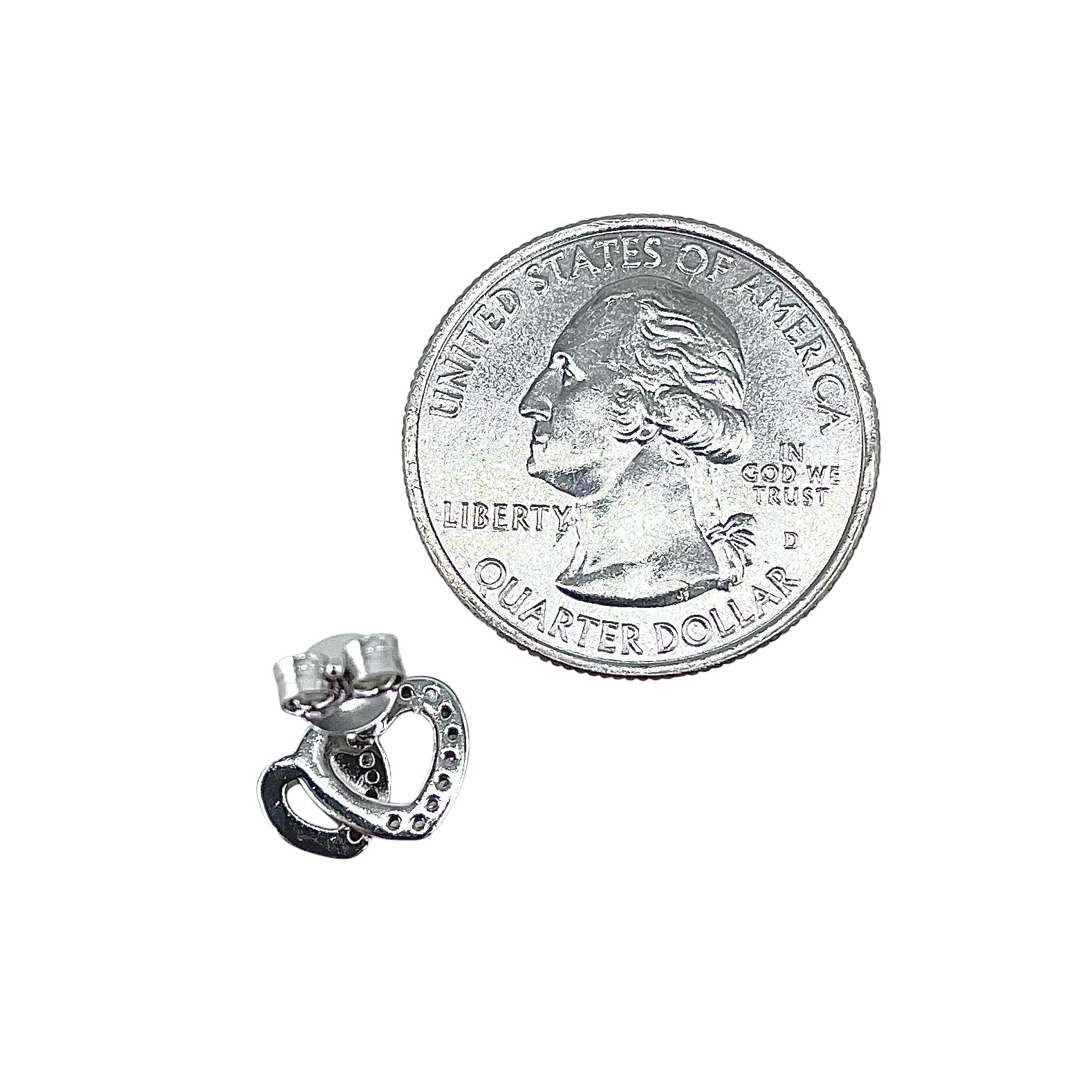 CZ Double Heart Post Earrings Sterling Silver. Measurements of these earrings are 3/8" long and 7/16" wide.
