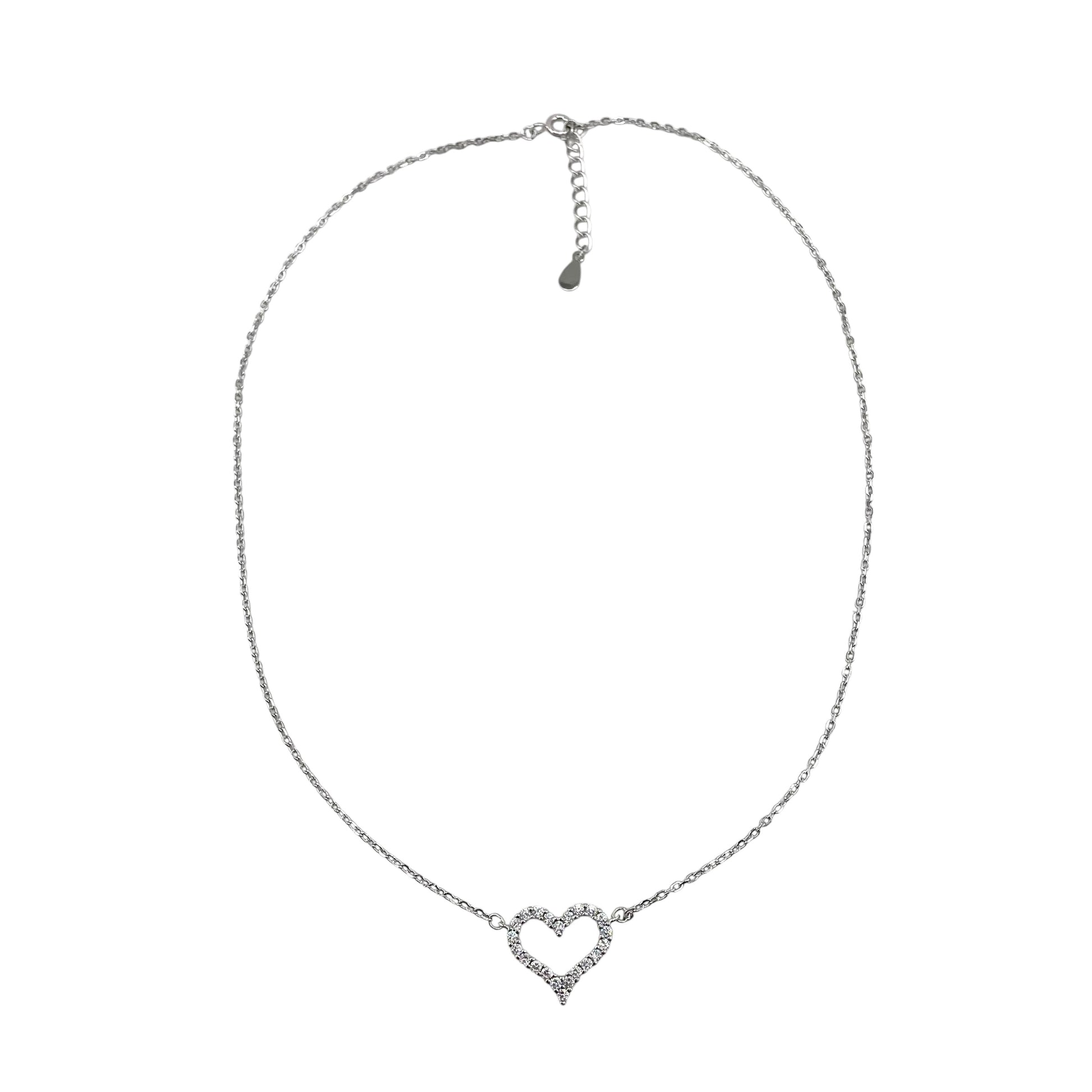 CZ Heart Chain Necklace Sterling Silver. This necklace measures 16" long, plus a 1.5" extender. Centerpiece measures 5/8" long and 5/8" wide.
