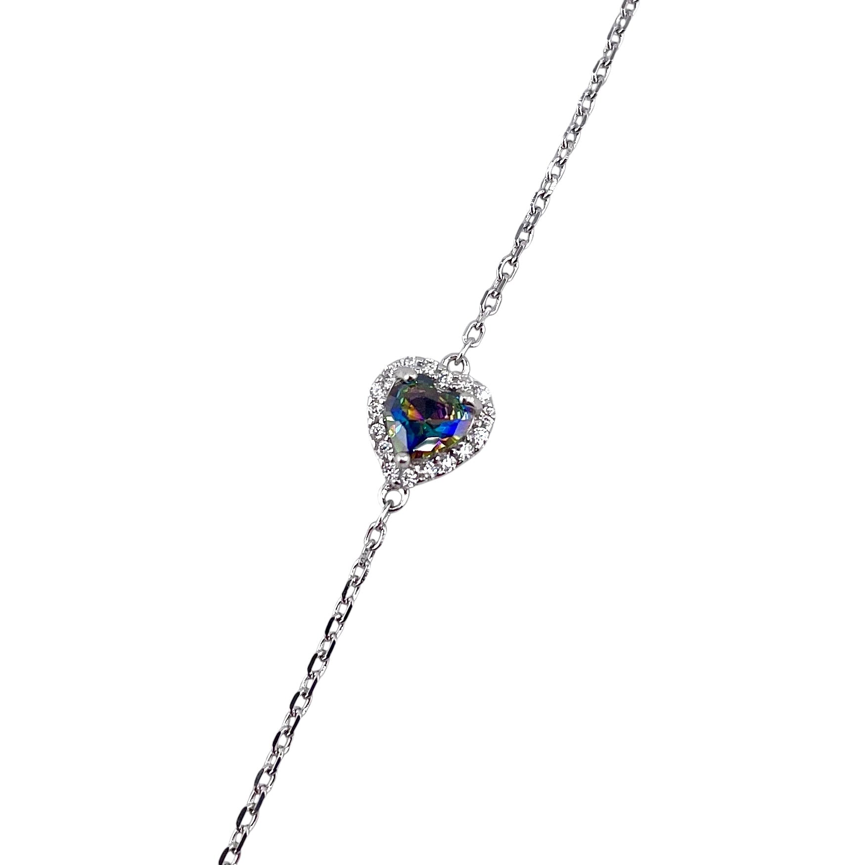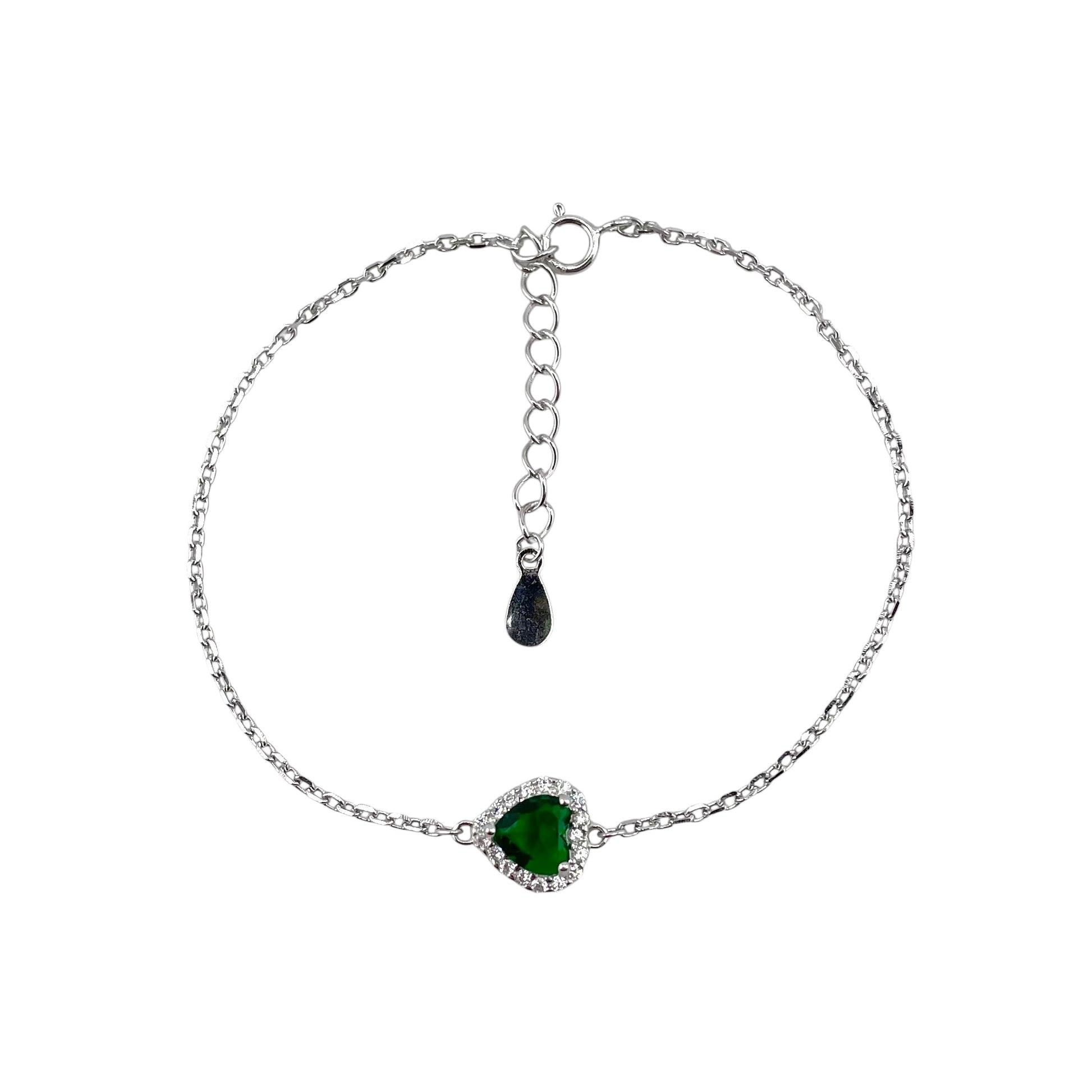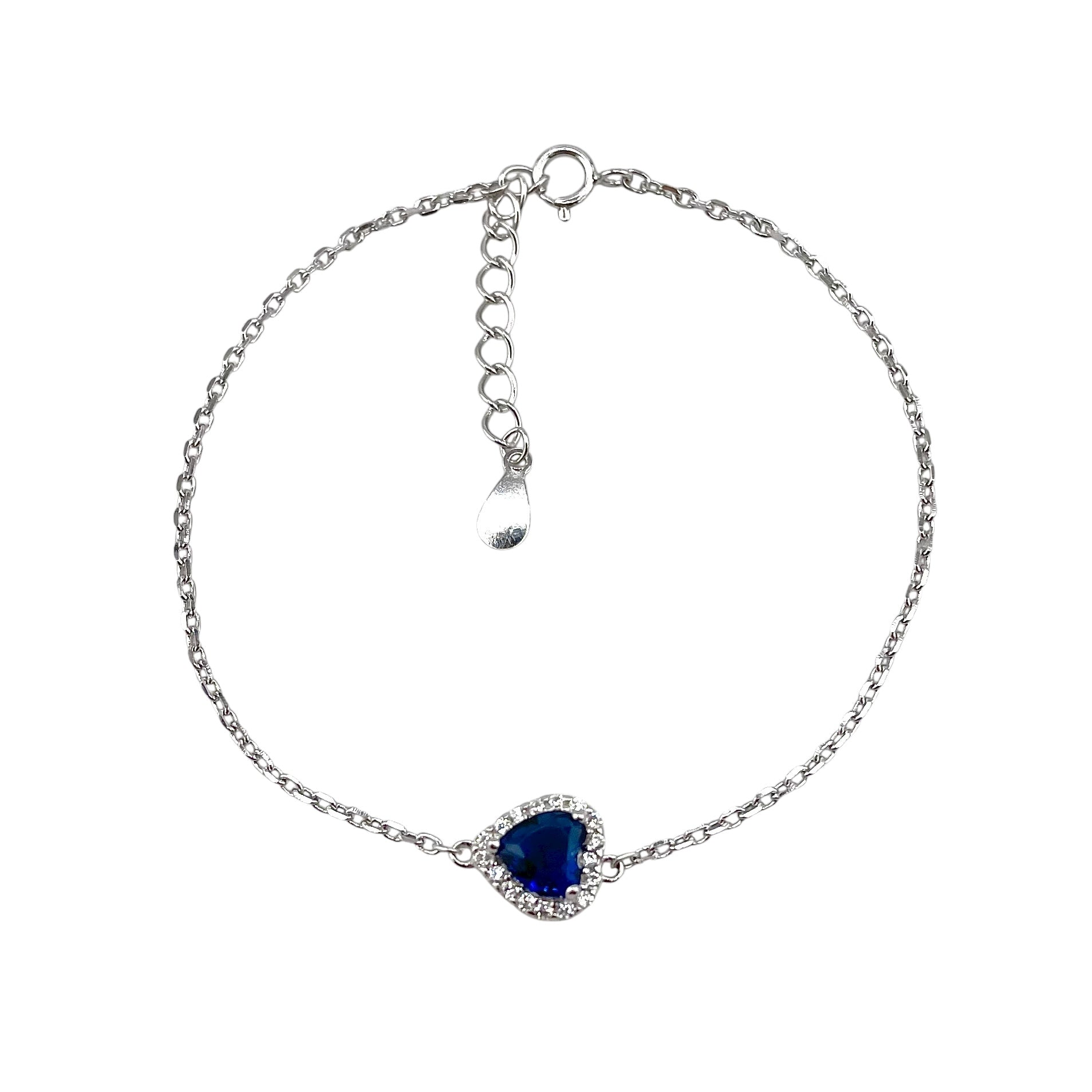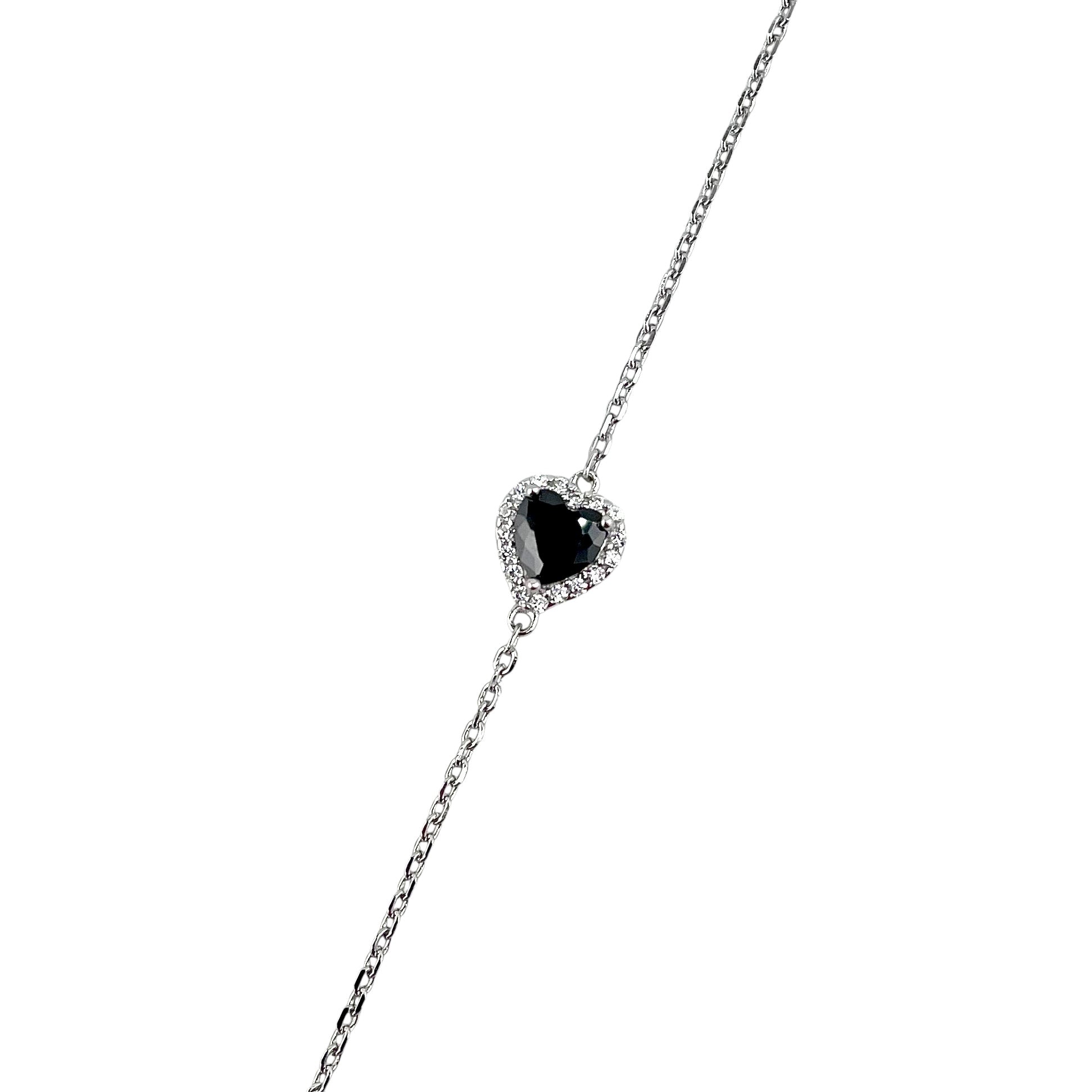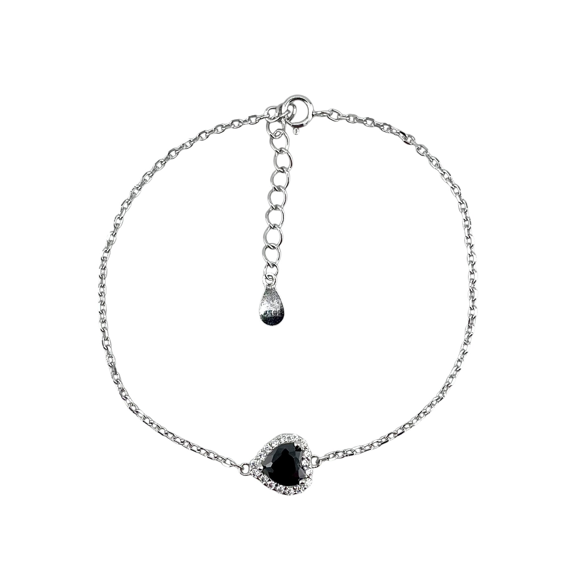 CZ Heart Stone Link Bracelet Sterling Silver. Measurements of this bracelet is 6.75" long with a 1.25" extender. The centerpiece is 9mm in width.