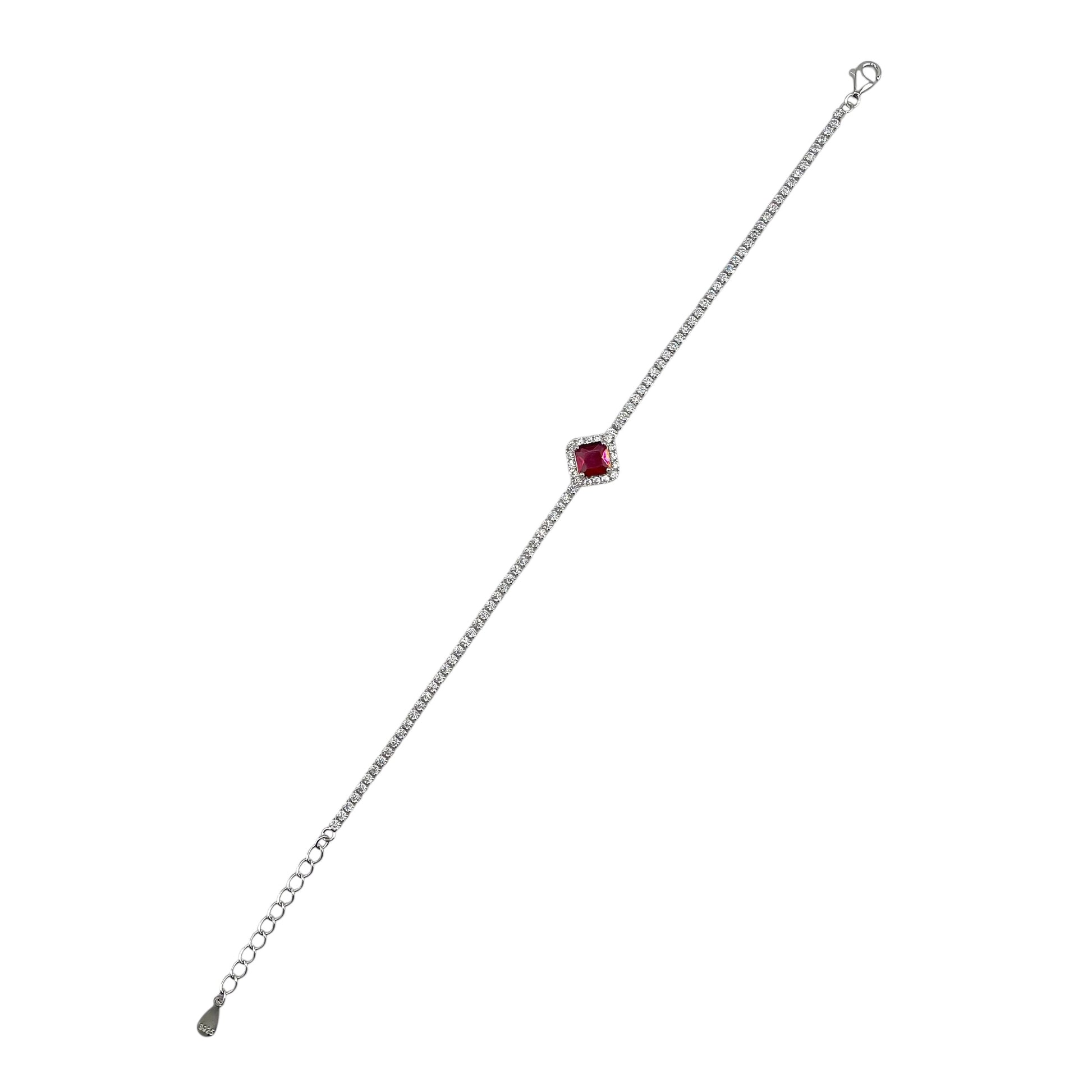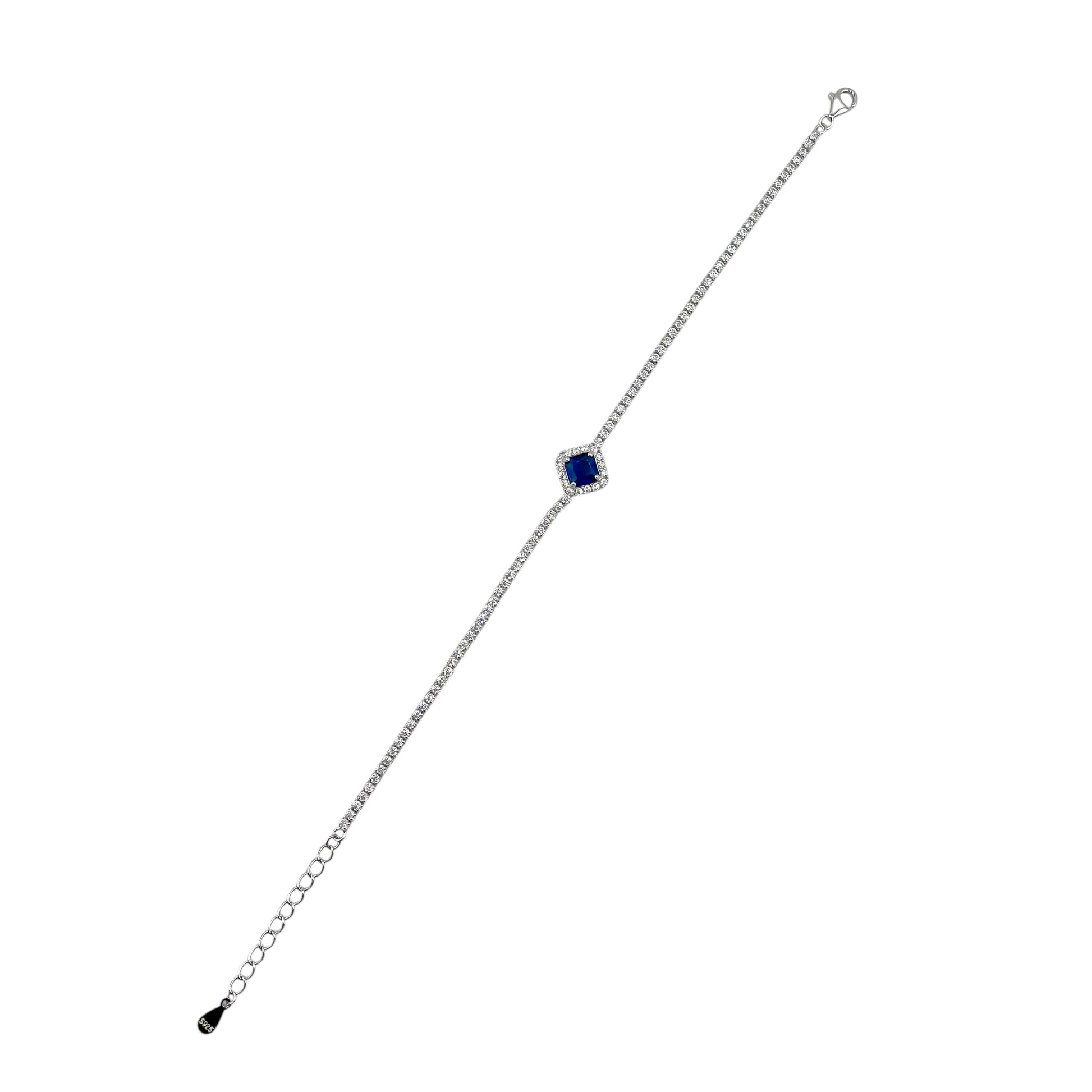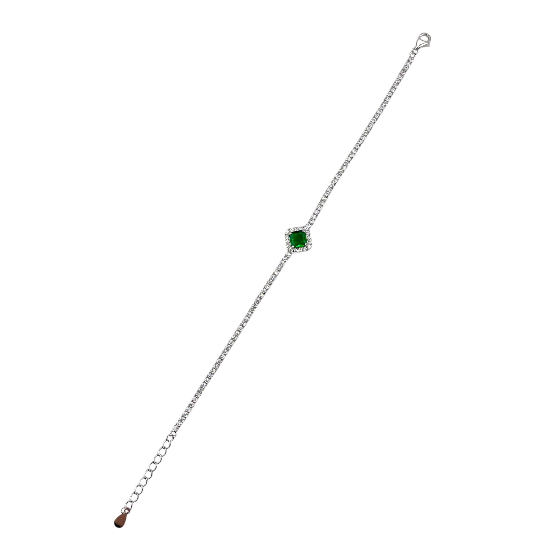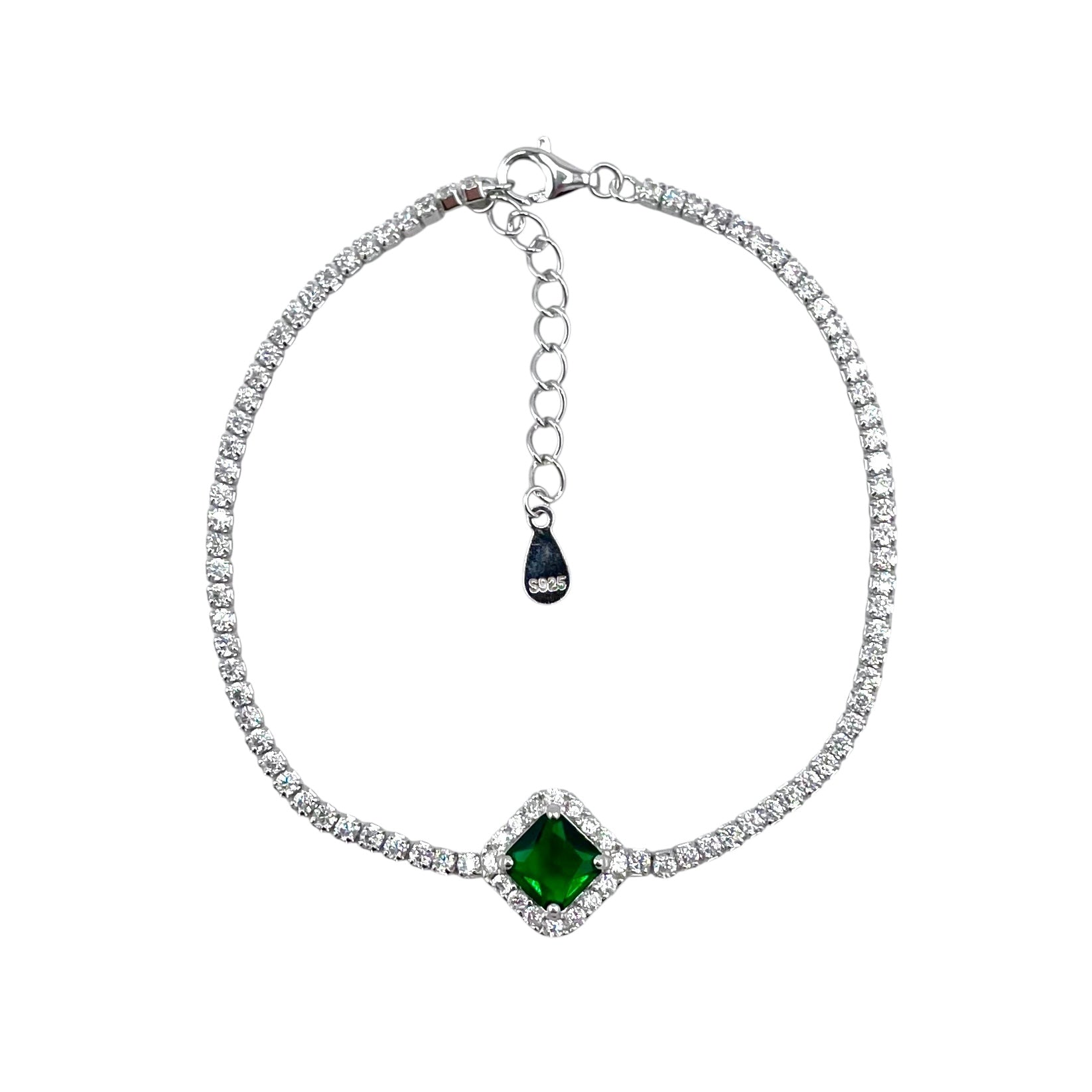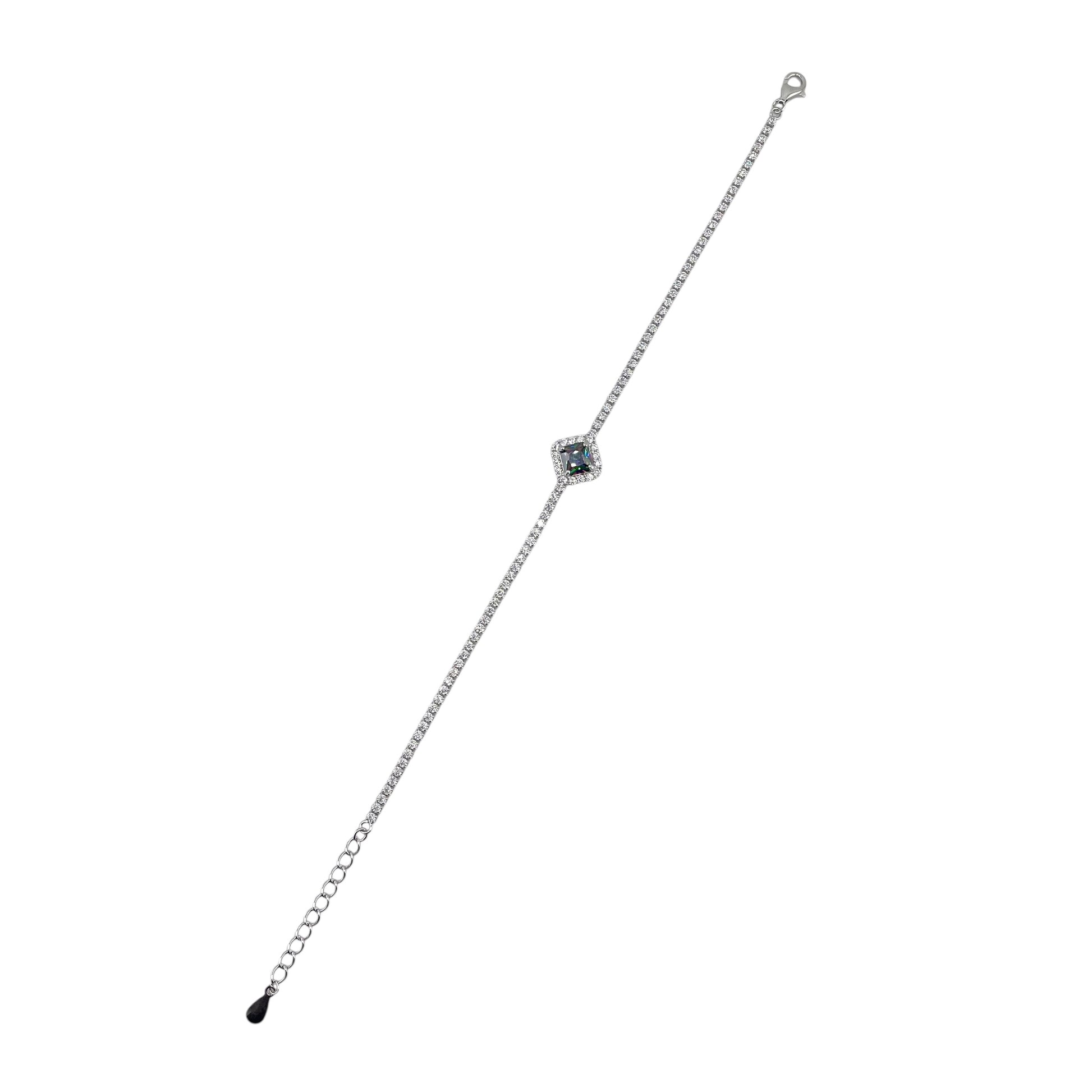 CZ Diamond Shape Link Bracelet Sterling Silver