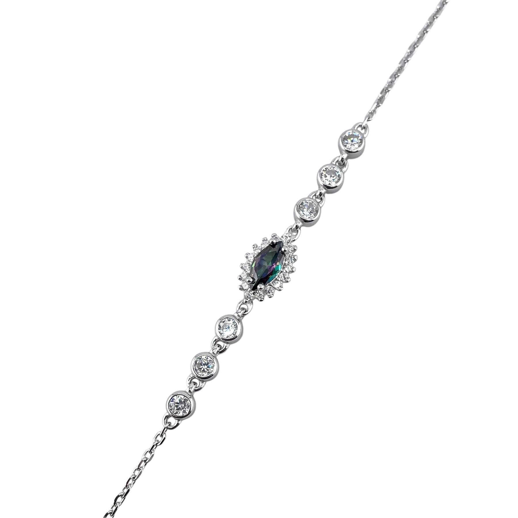 CZ Marquis Link Bracelet Sterling Silver