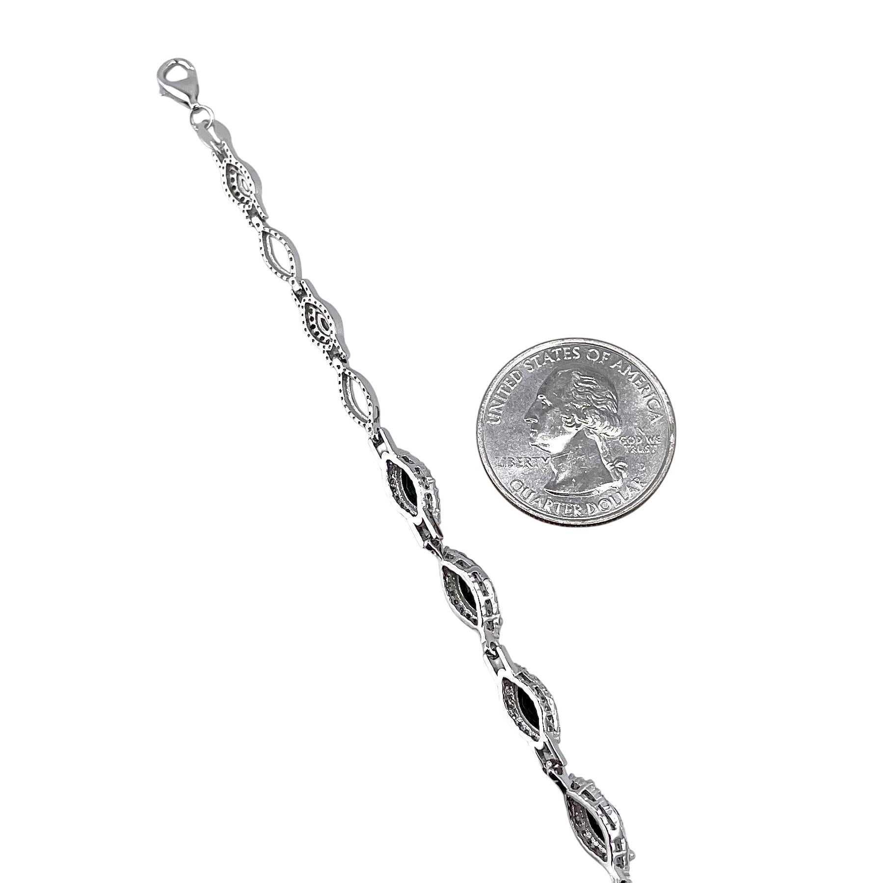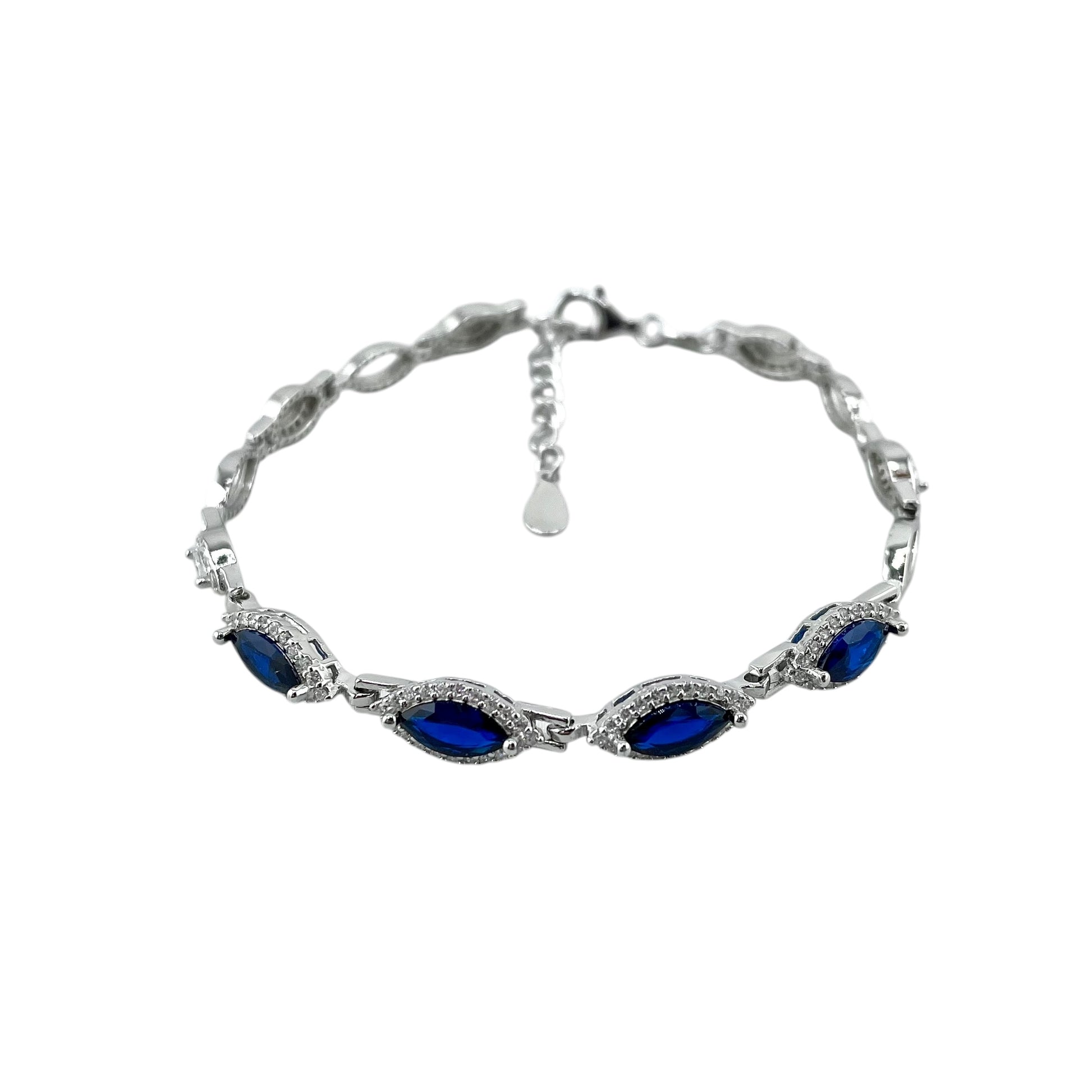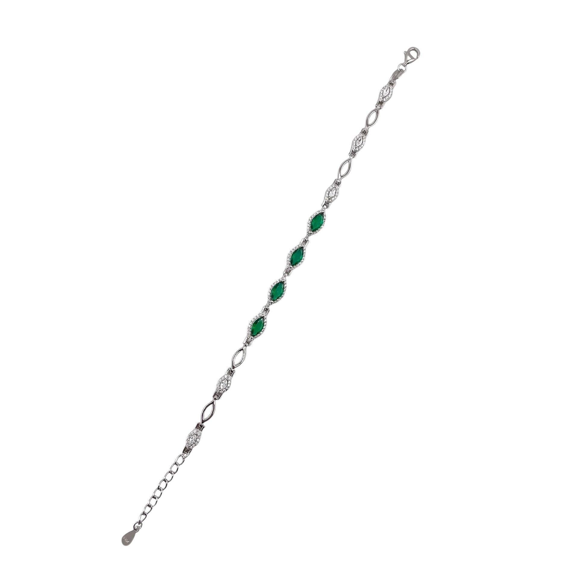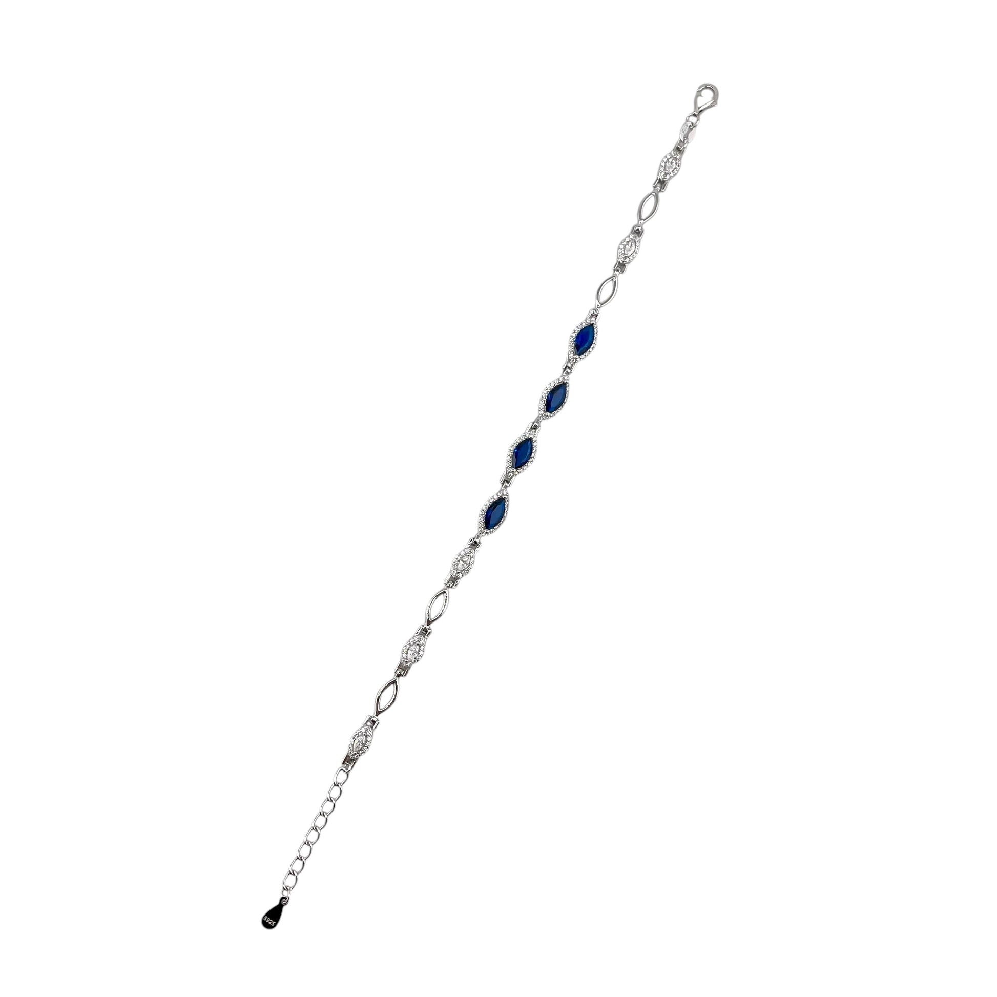 CZ Marquis Stone Link Bracelet Sterling Silver