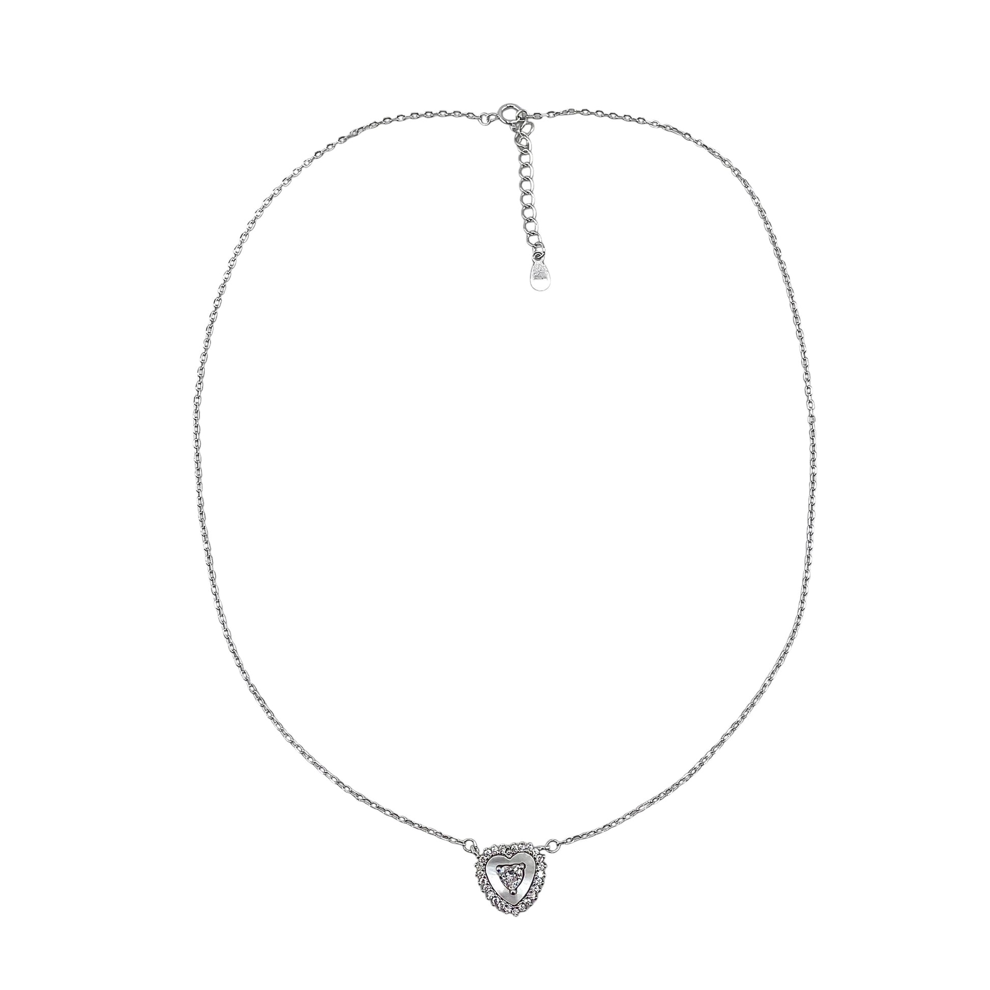 CZ Mother of Pearl Heart Chain Necklace Sterling Silver