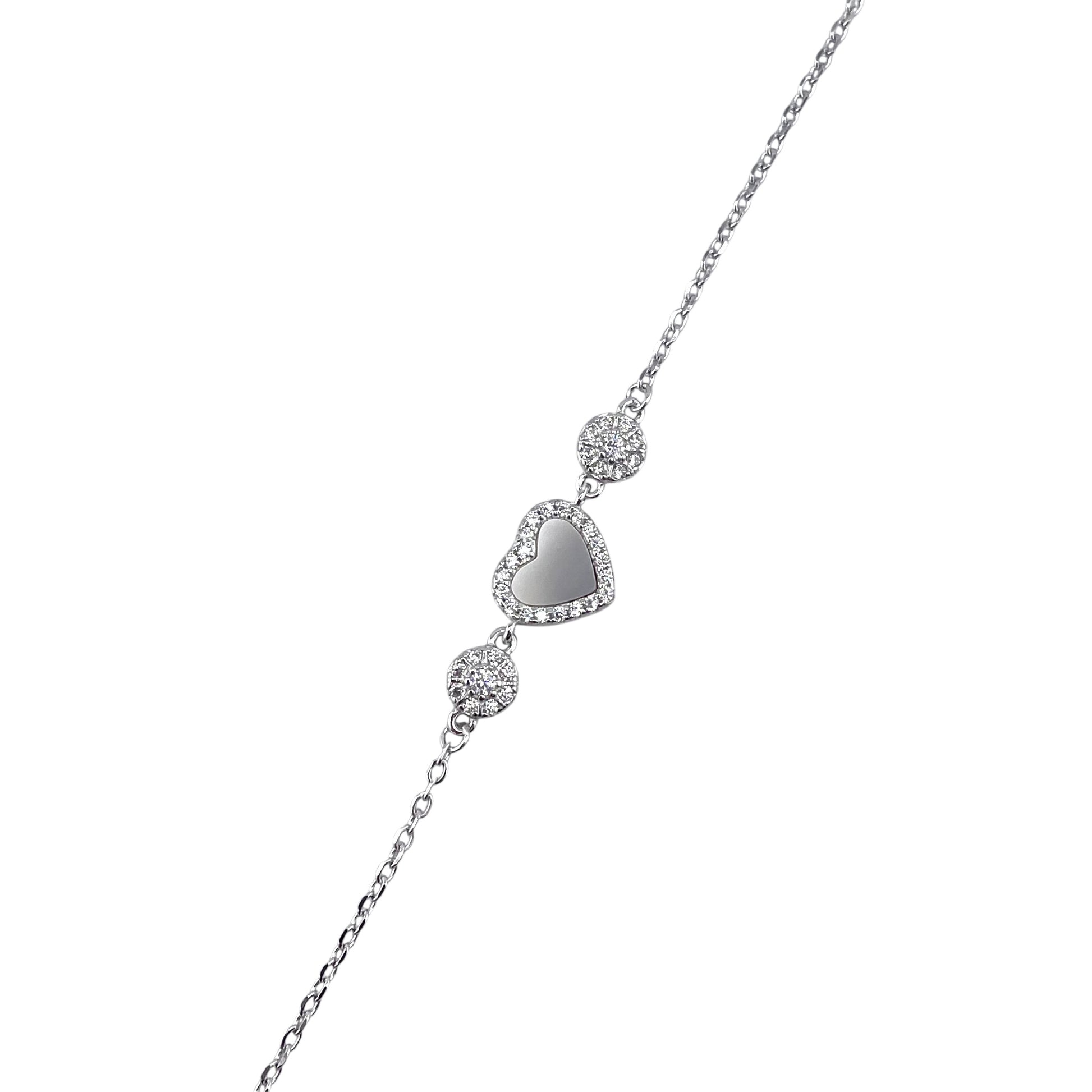 CZ Mother of Pearl Heart Round Link Bracelet Sterling Silver