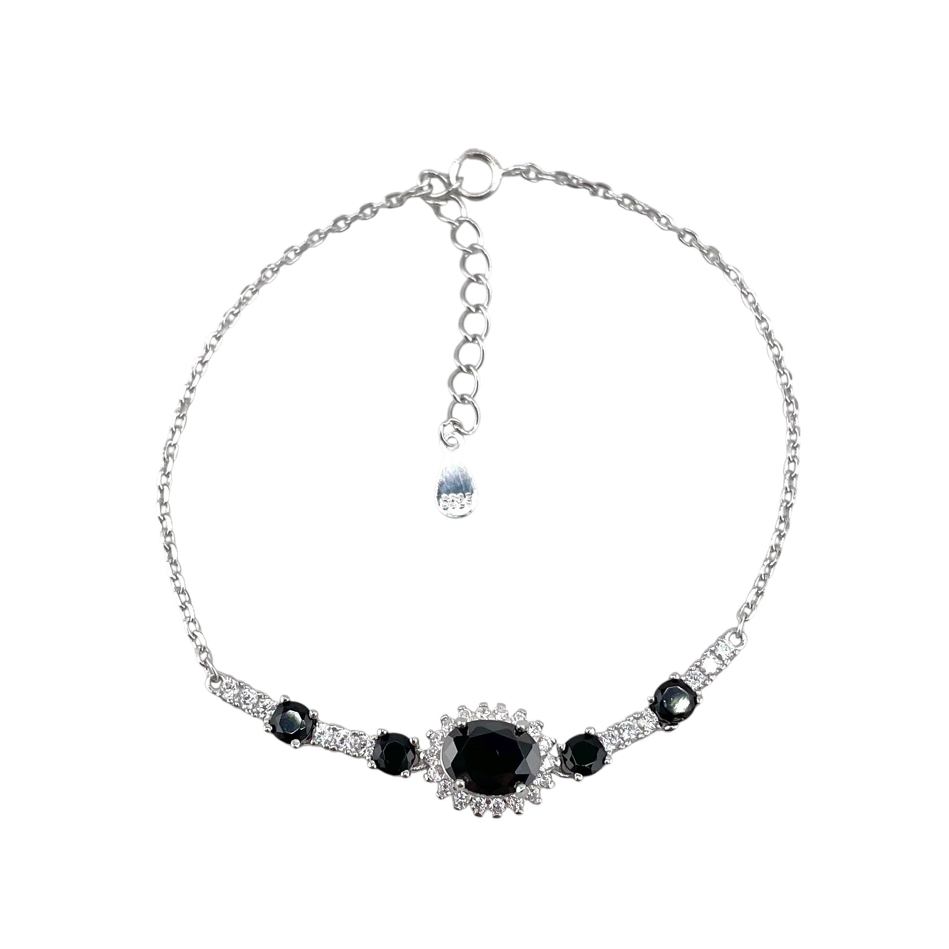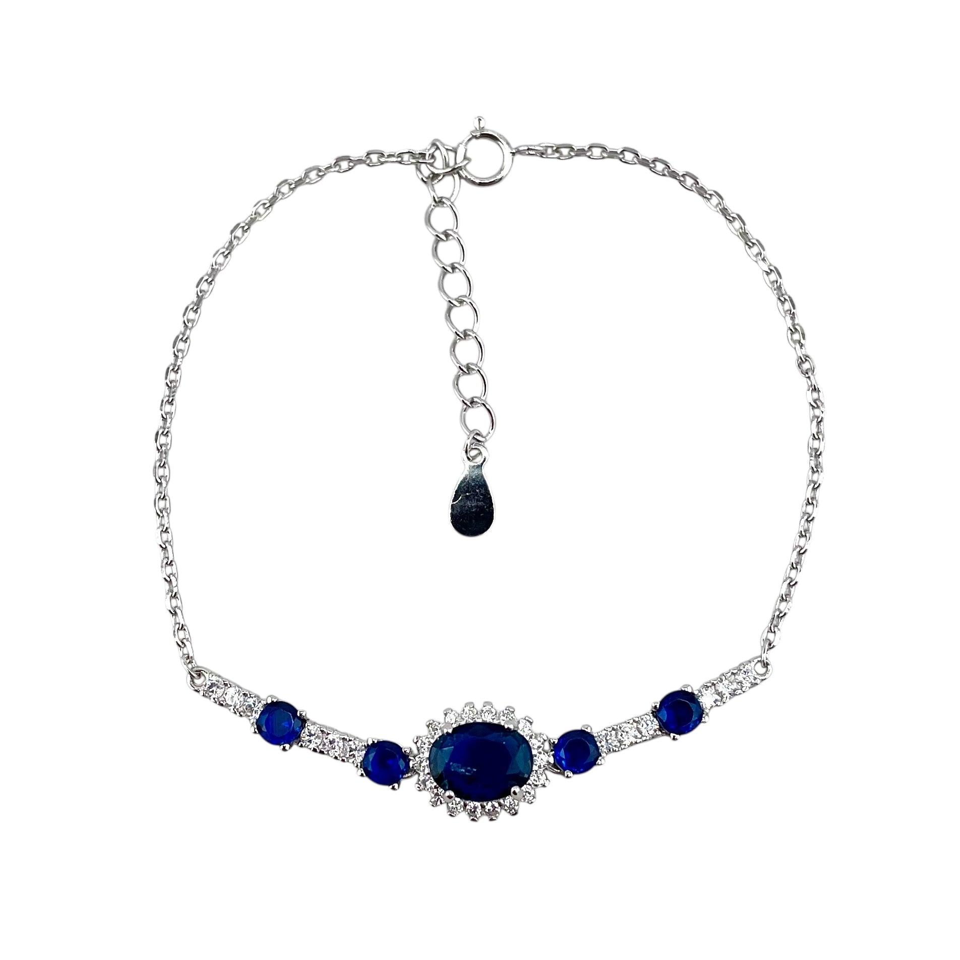 CZ Oval Stone Link Bracelet Sterling Silver. Measurements of this bracelet is 7" long with a 1.5" extender. The centerpiece is 9mm in width.