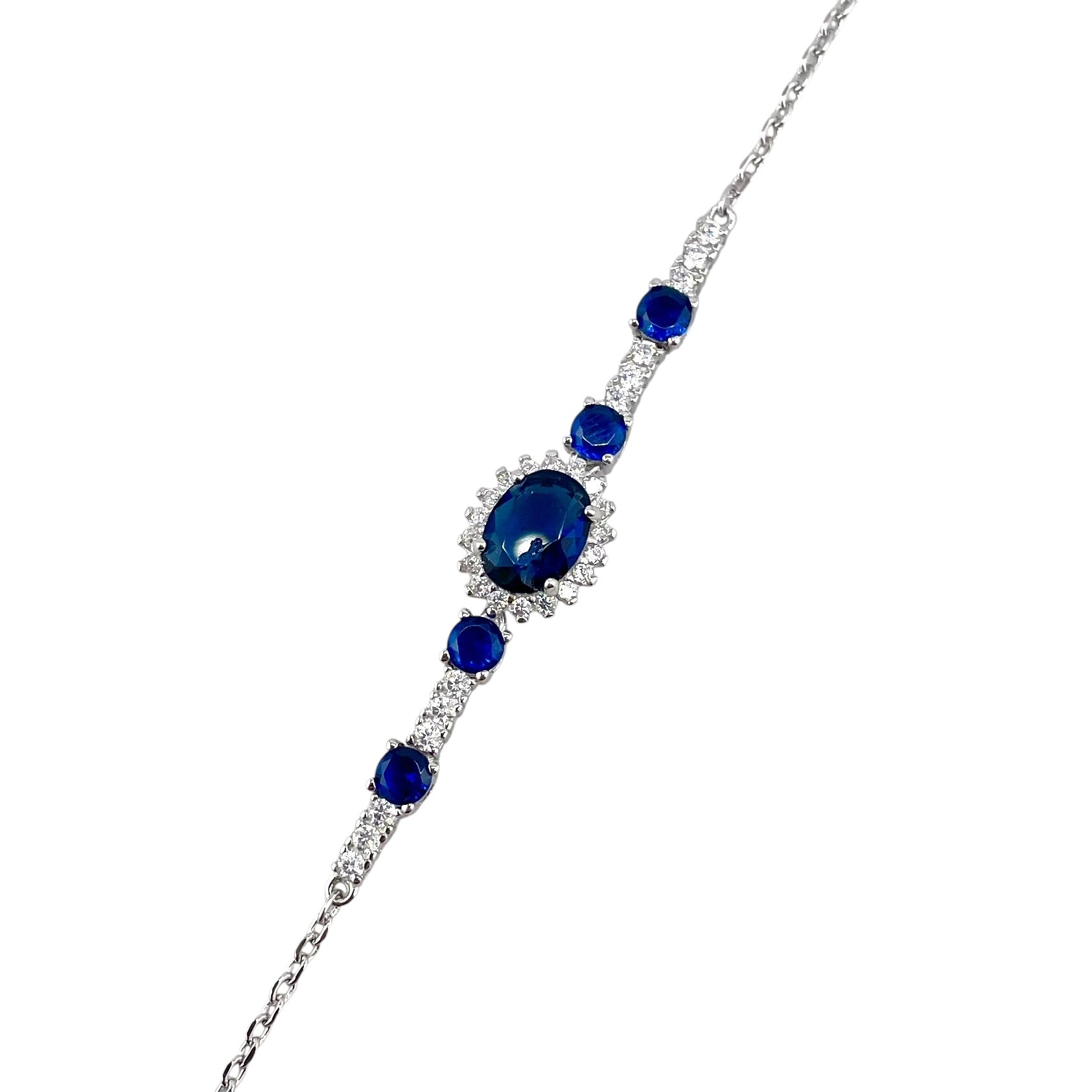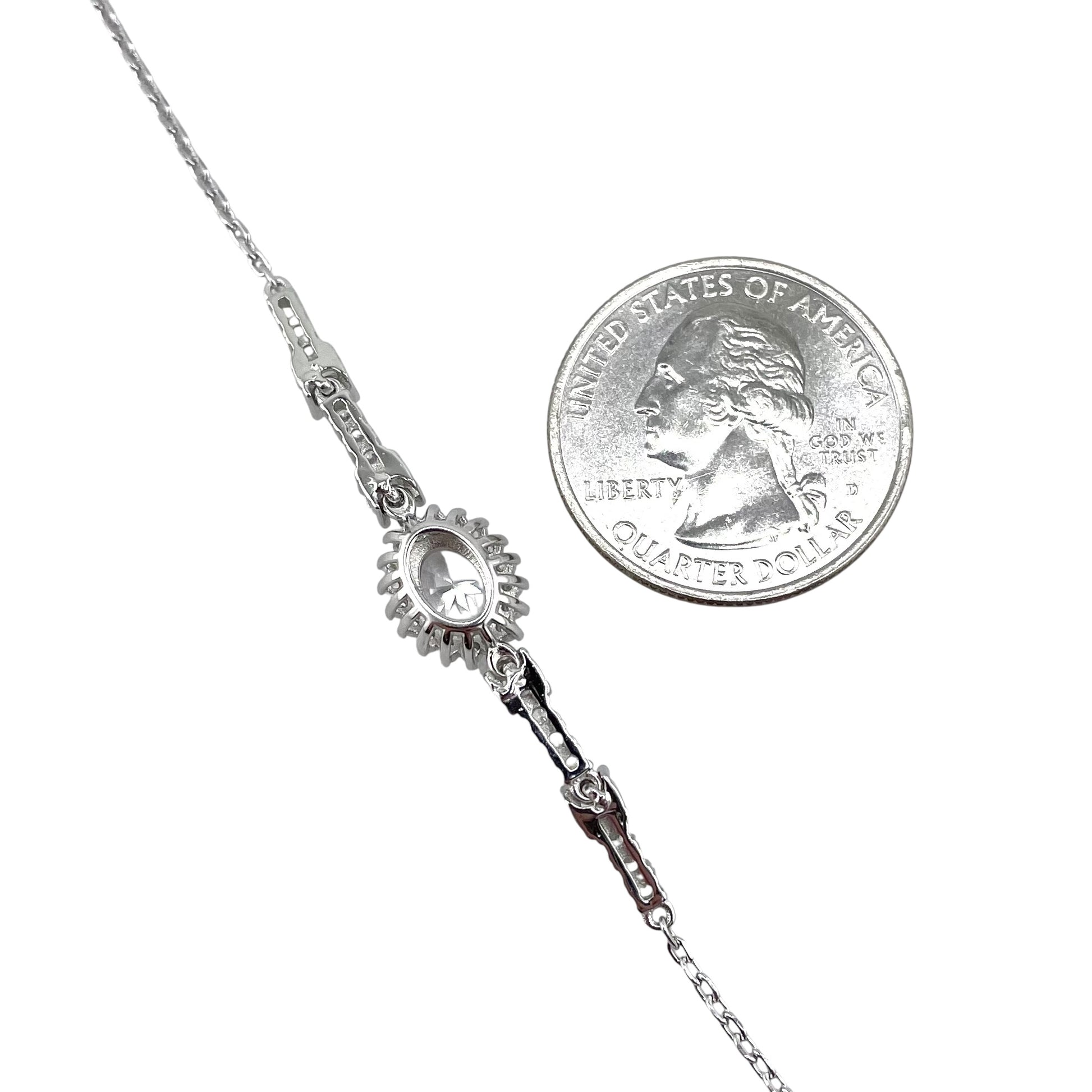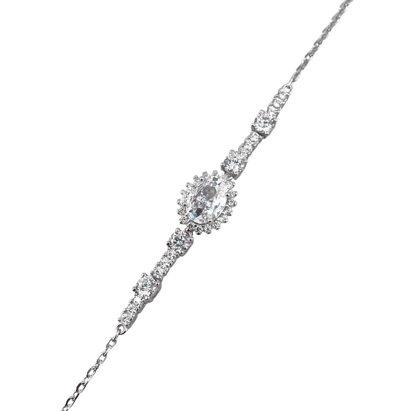 CZ Oval Stone Link Bracelet Sterling Silver