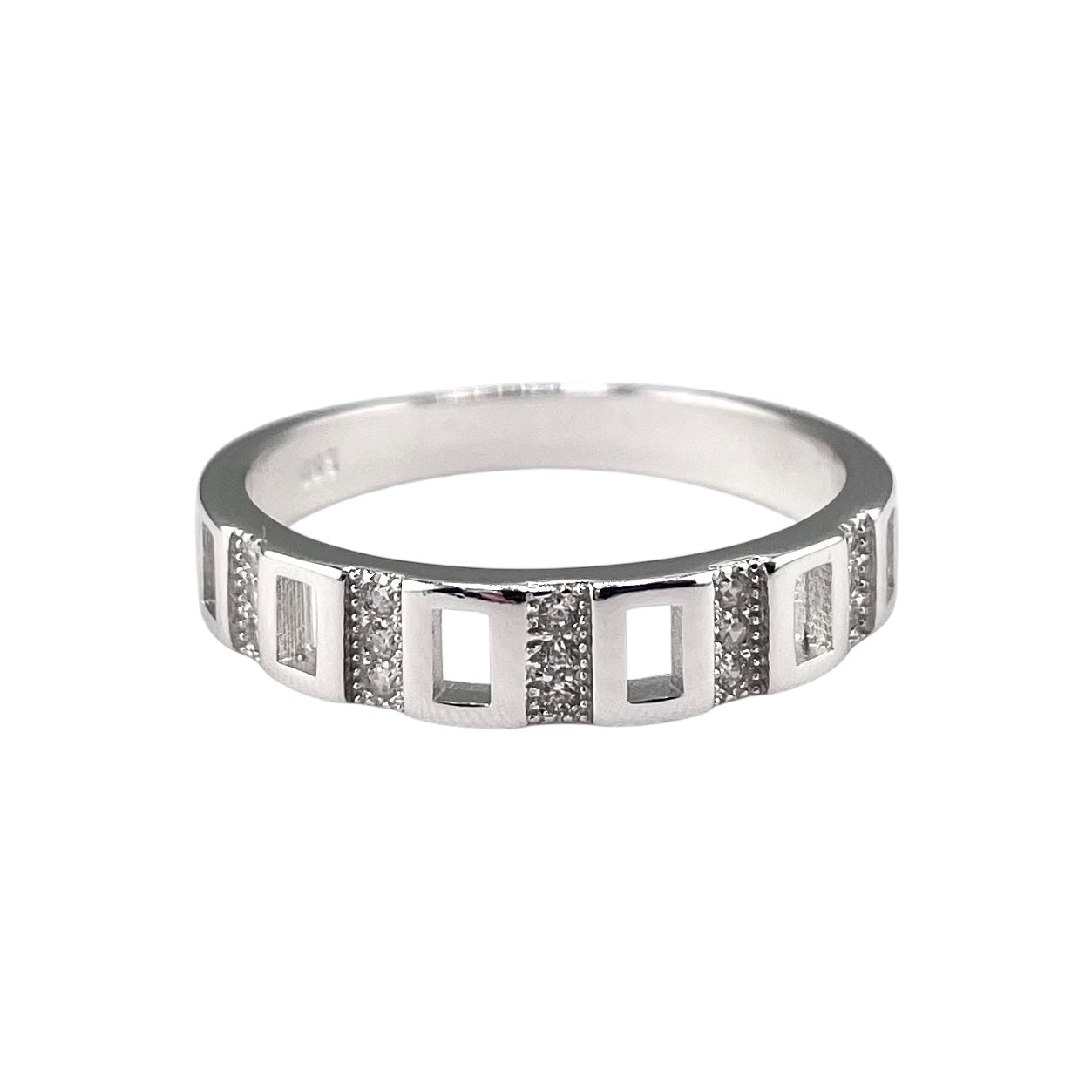CZ Rectangle Row Ring Sterling Silver. This ring measures 5mm wide and is available in sizes 6-11.
