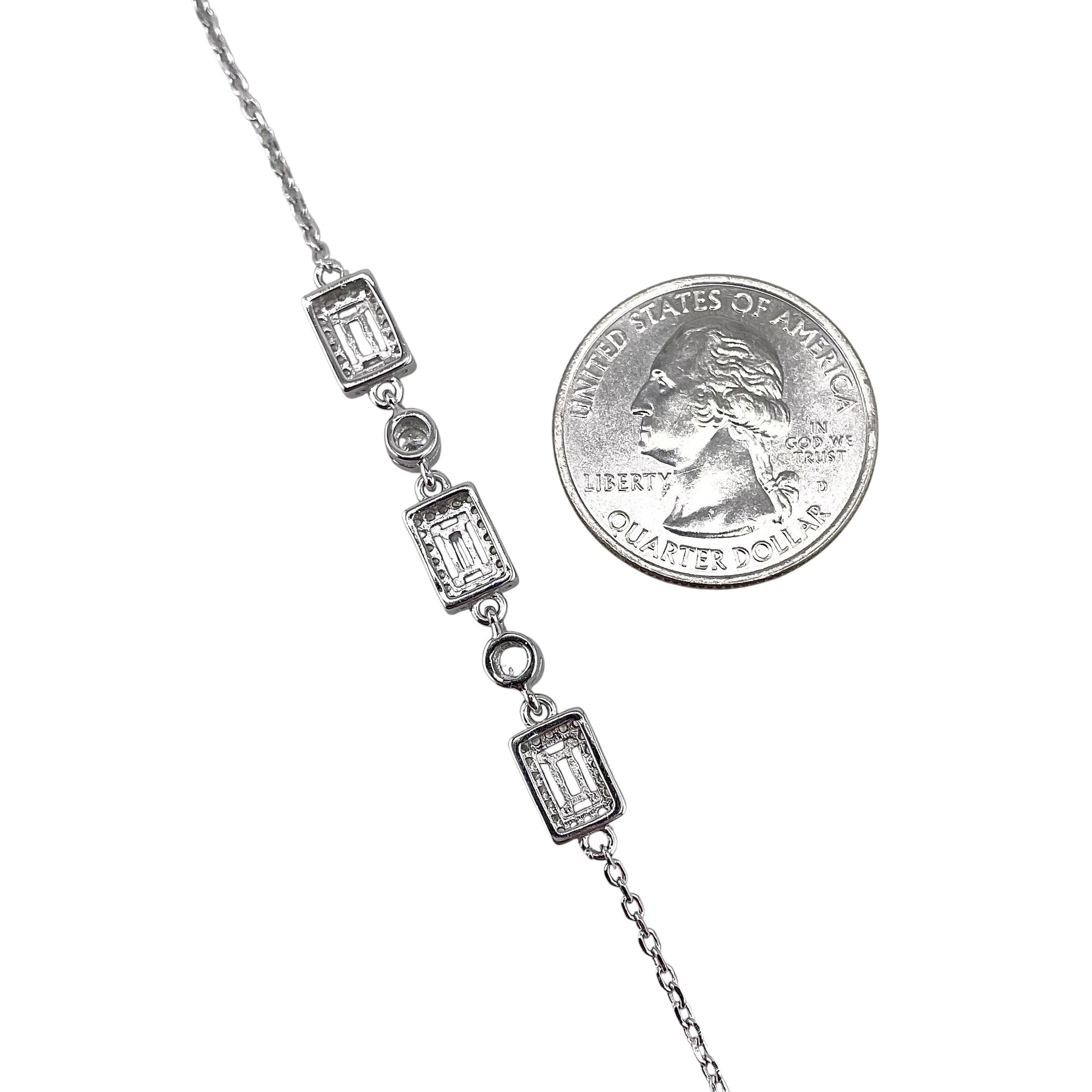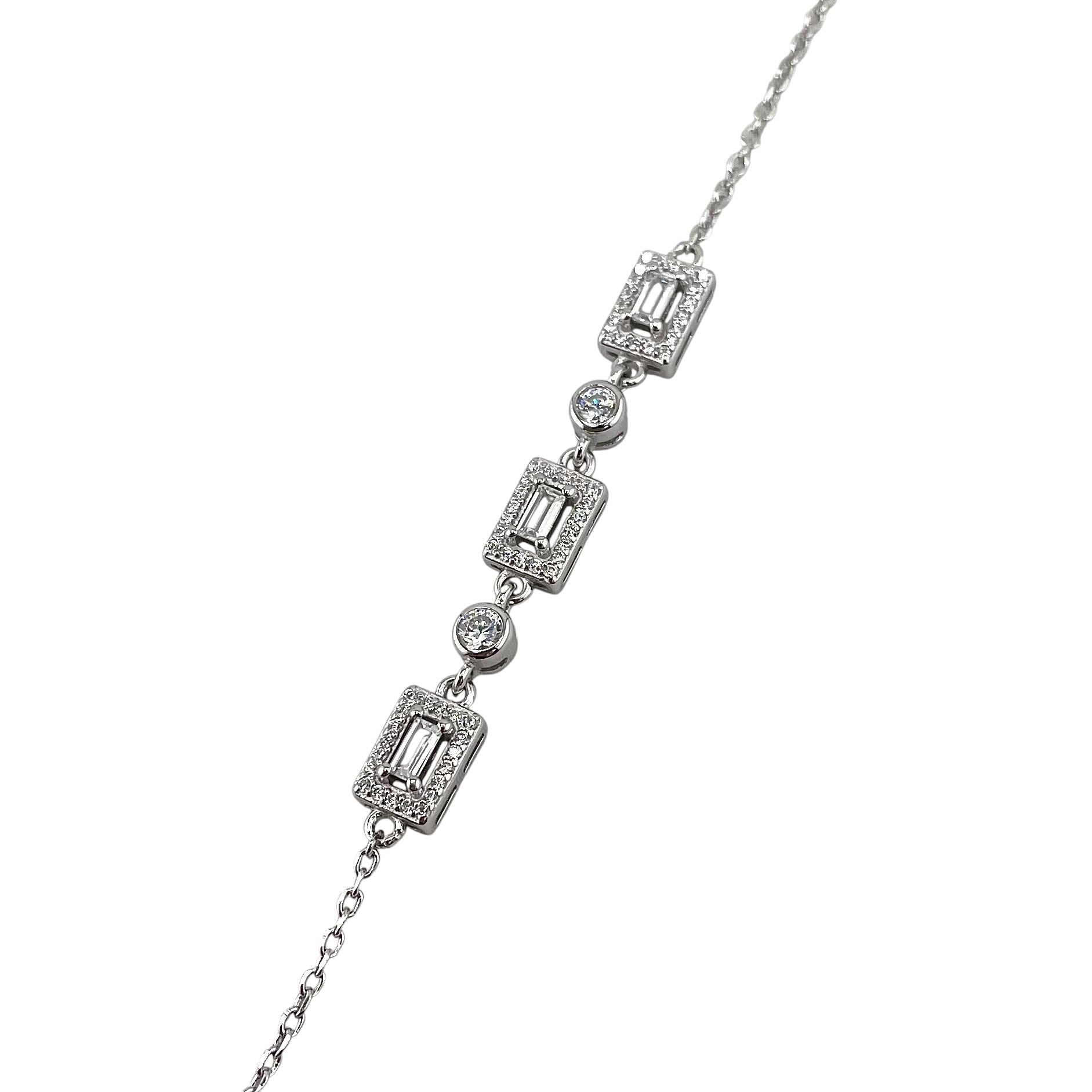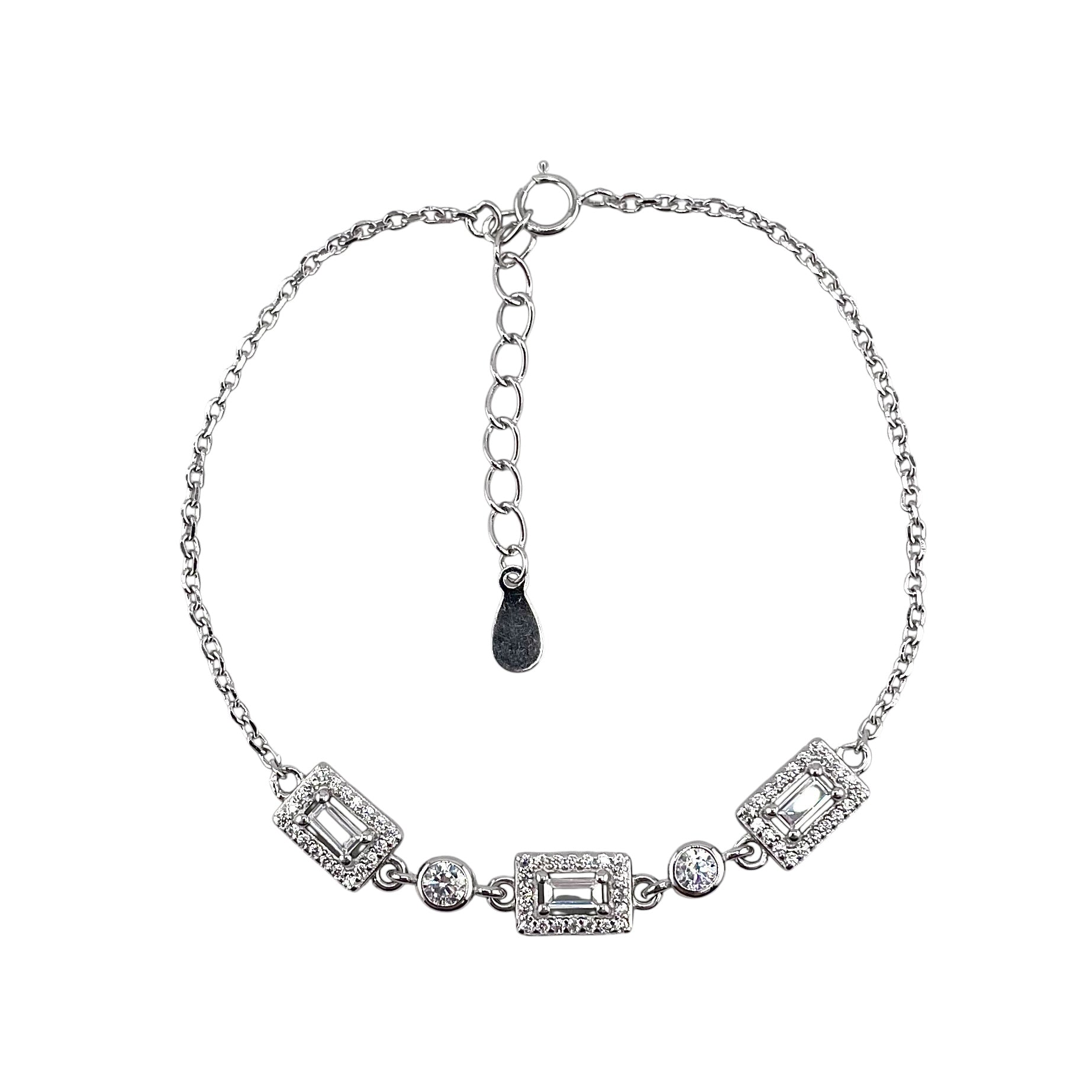 CZ Rectangle Stone Link Bracelet Sterling Silver