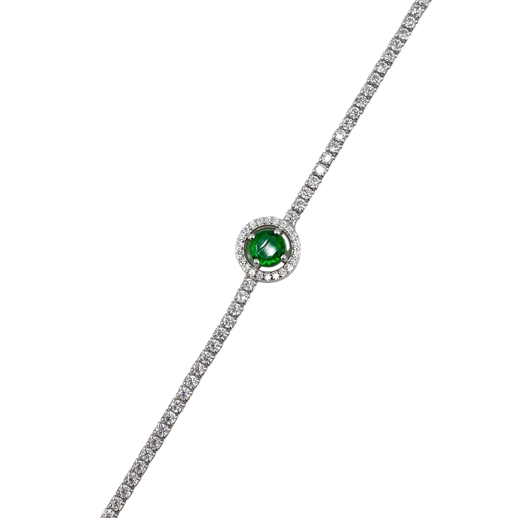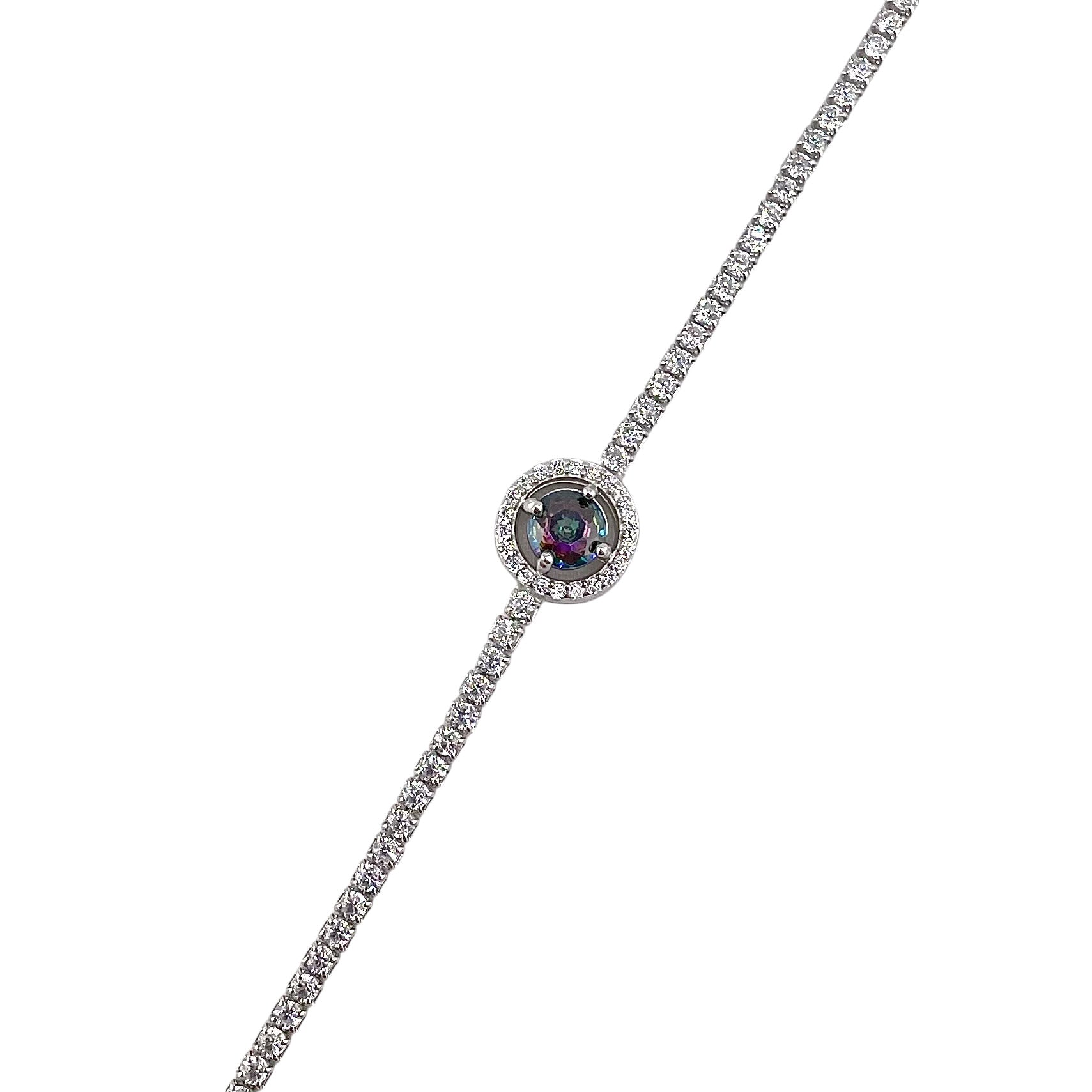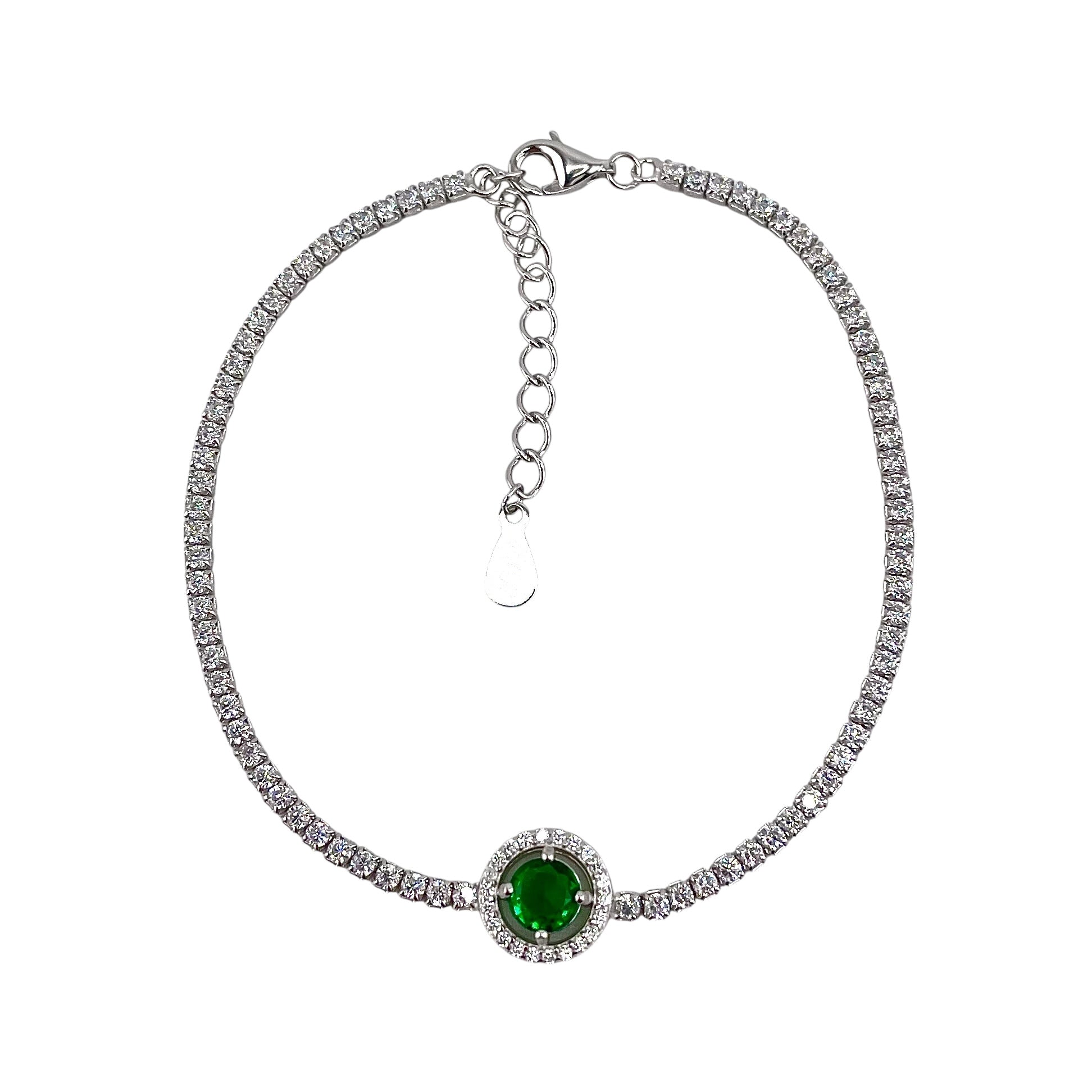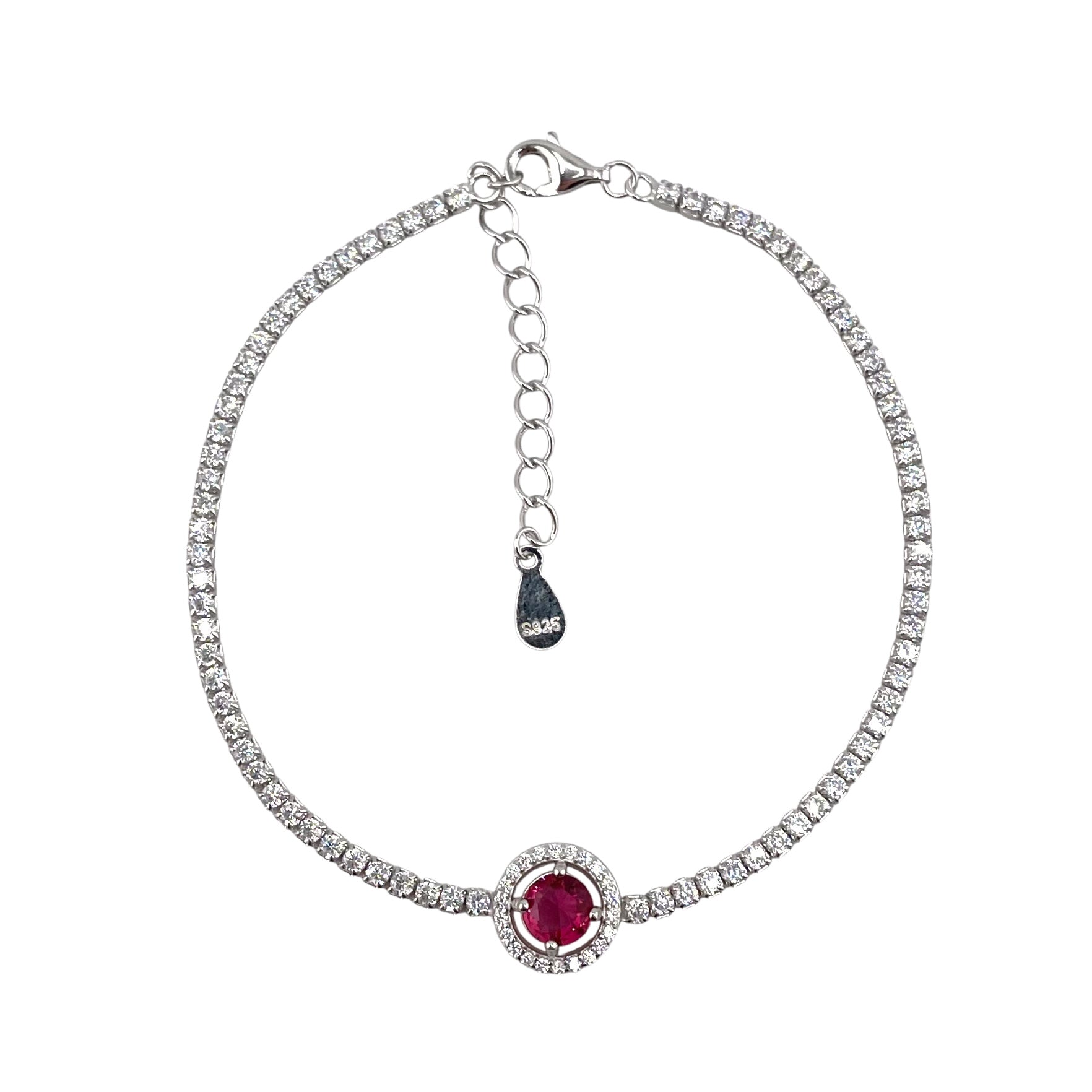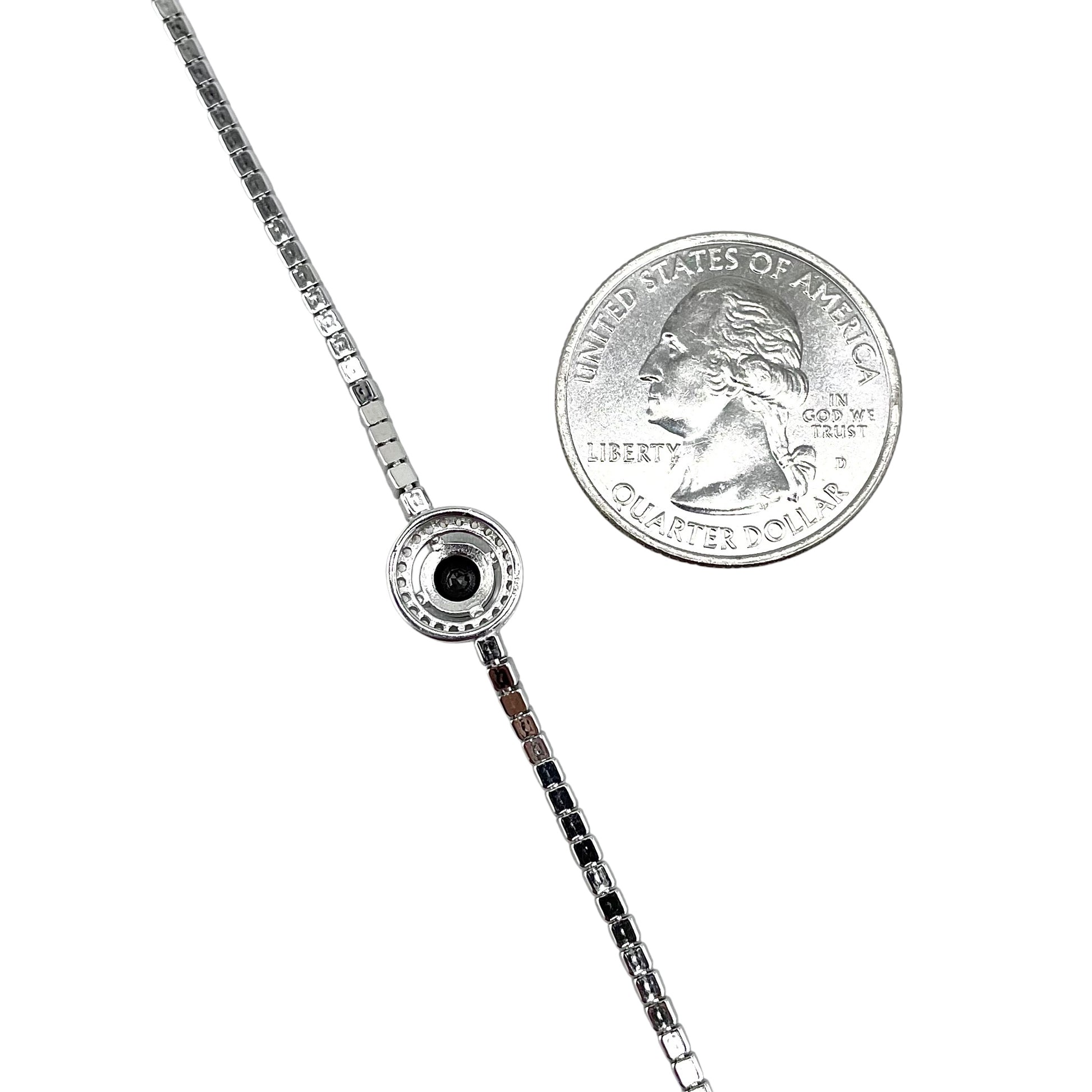 CZ Round Stone Link Bracelet Sterling Silver. Measurements of this bracelet is 7" long with a 1.5" extender. The centerpiece is 9mm in width.