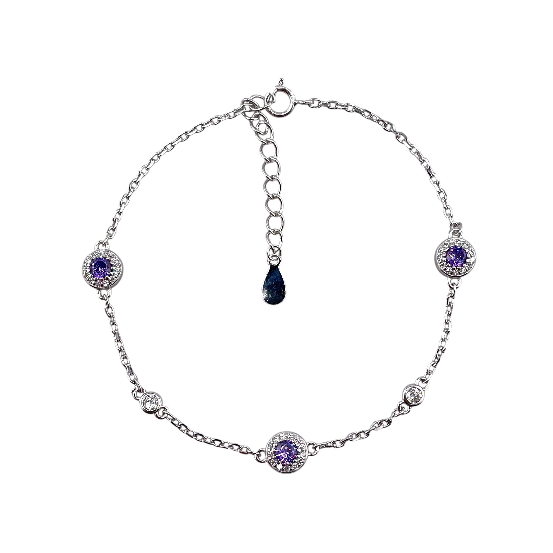 CZ Round Stone Link Bracelet Sterling Silver. Measurements of this bracelet is 7" long with a 1.5" extender. The centerpiece is 6mm in width.