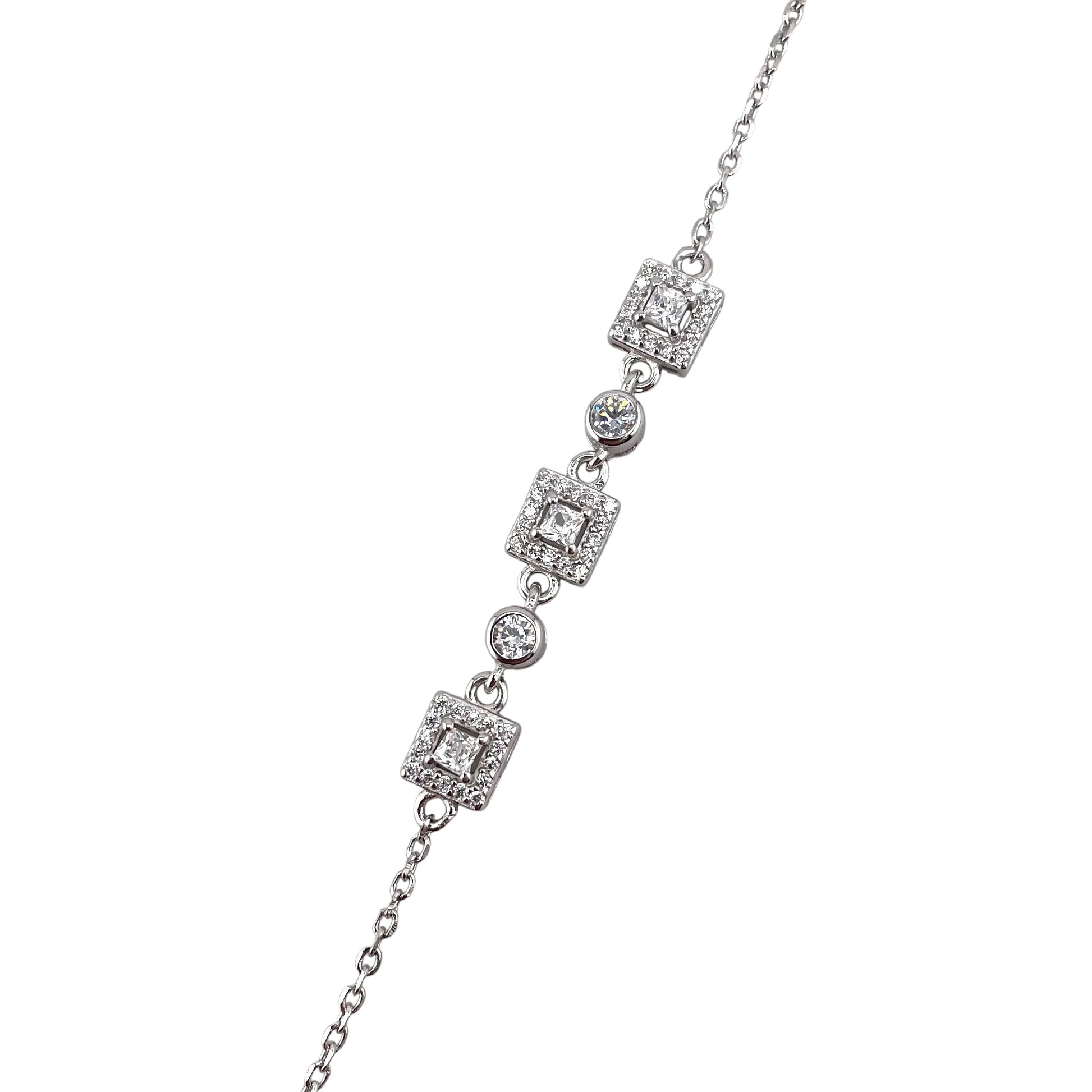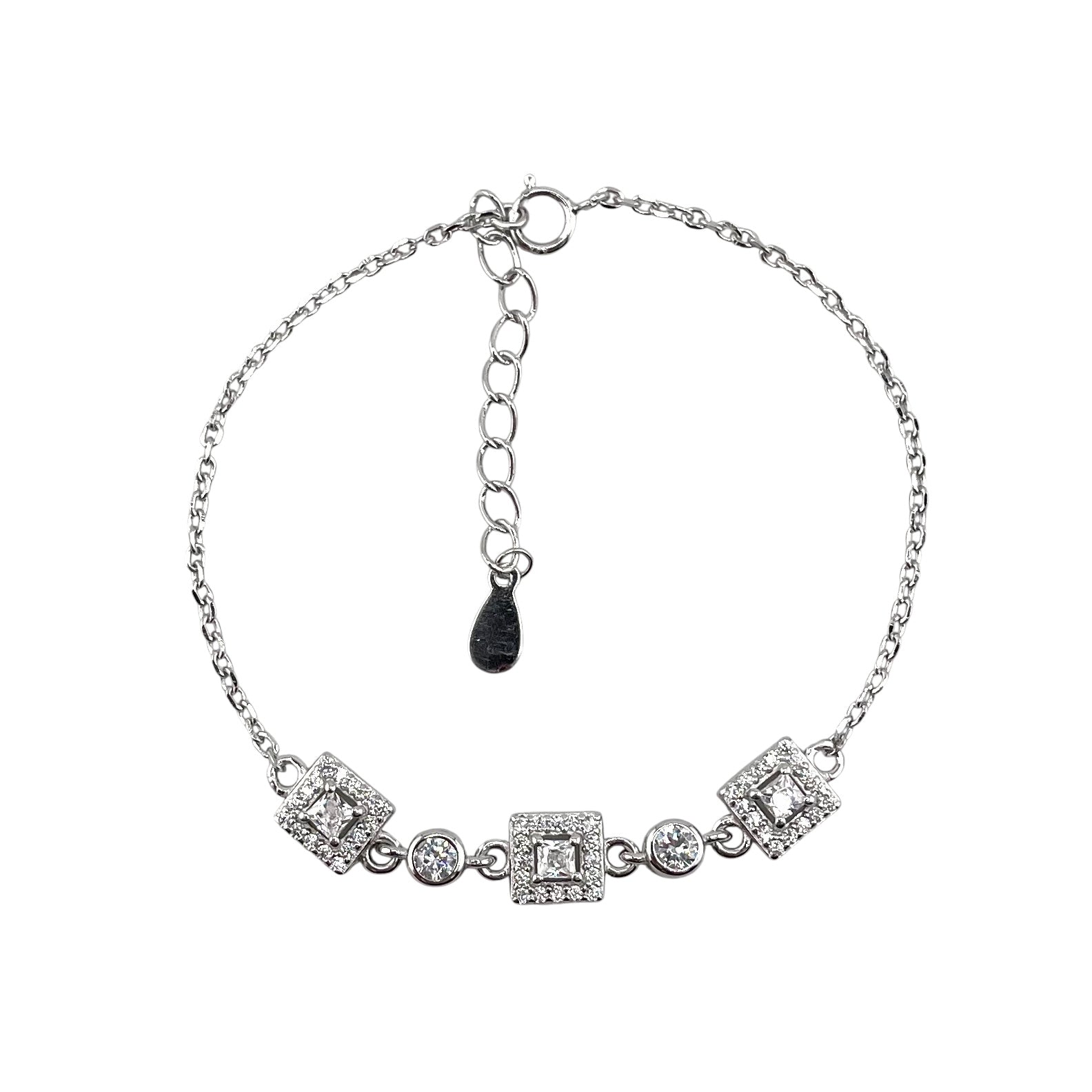 CZ Square Circle Stone Link Bracelet Sterling Silver