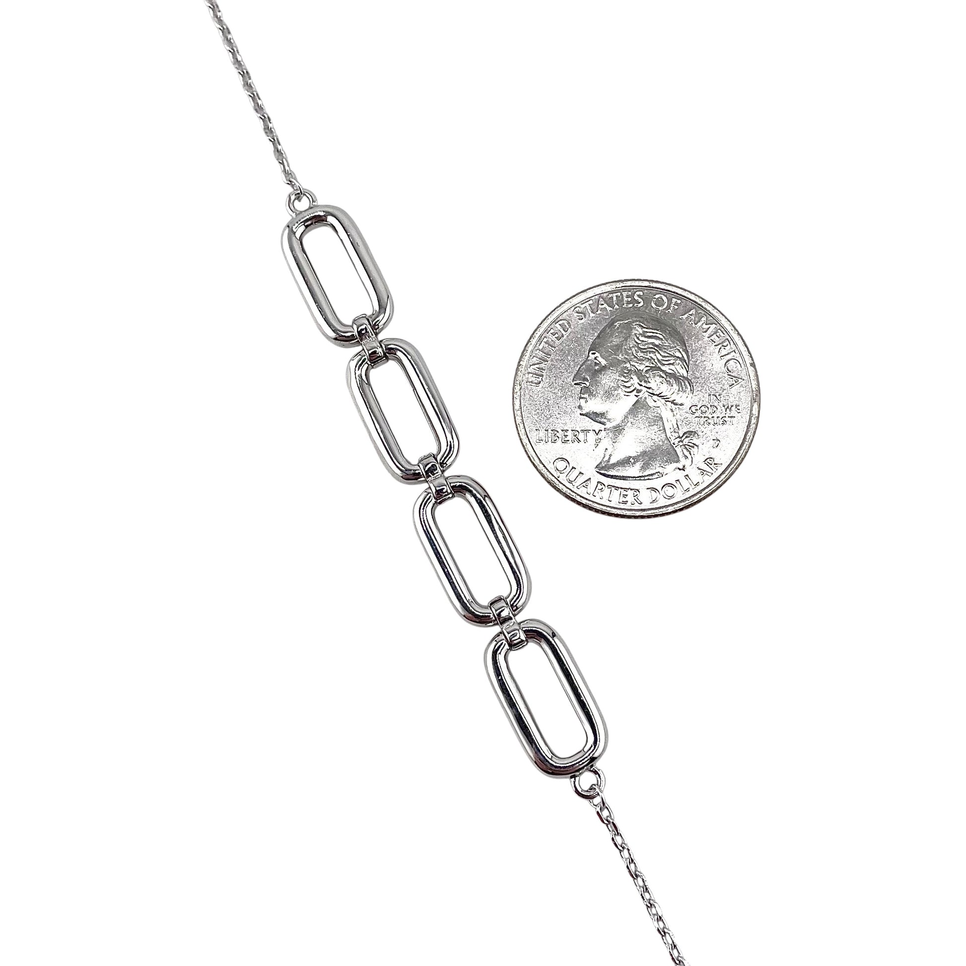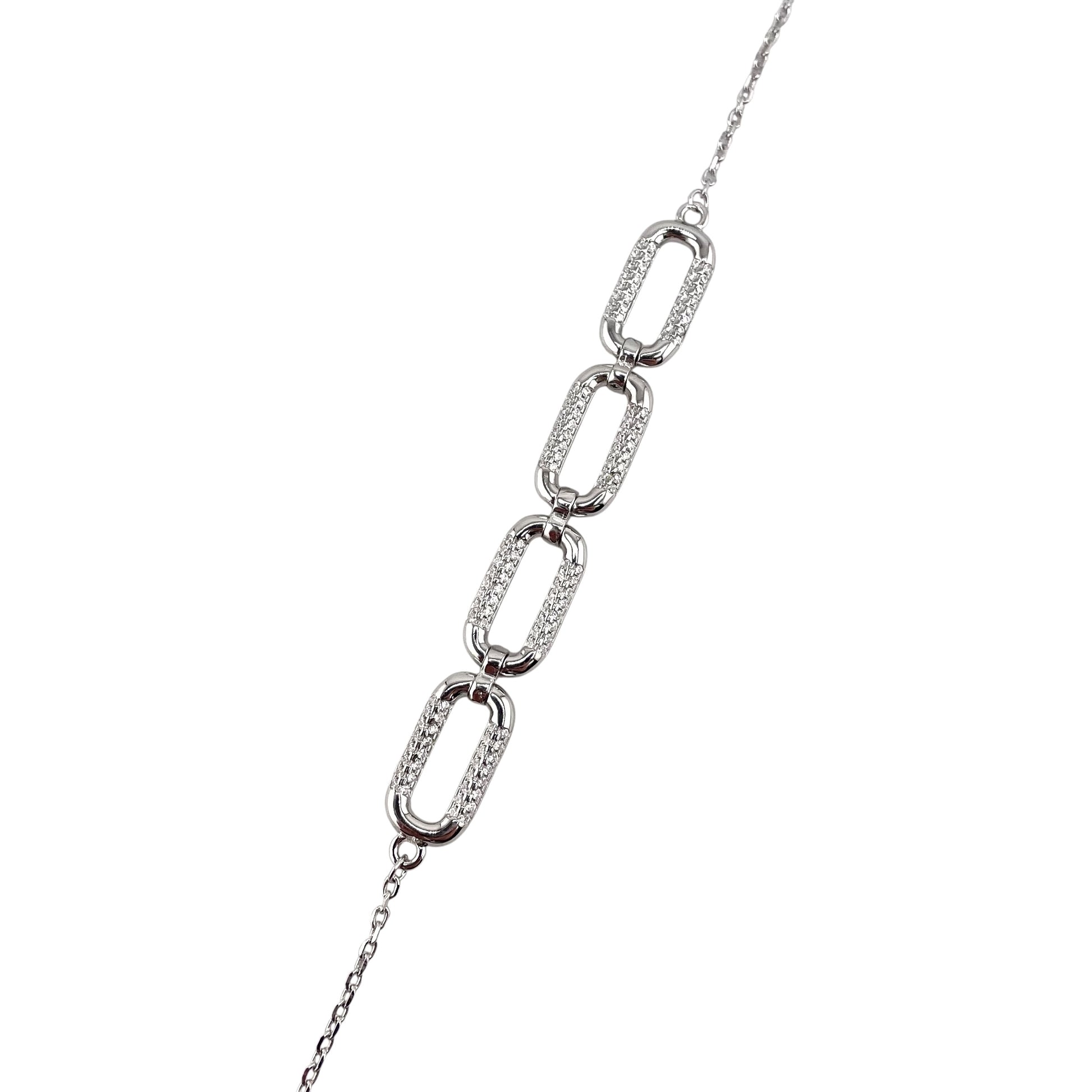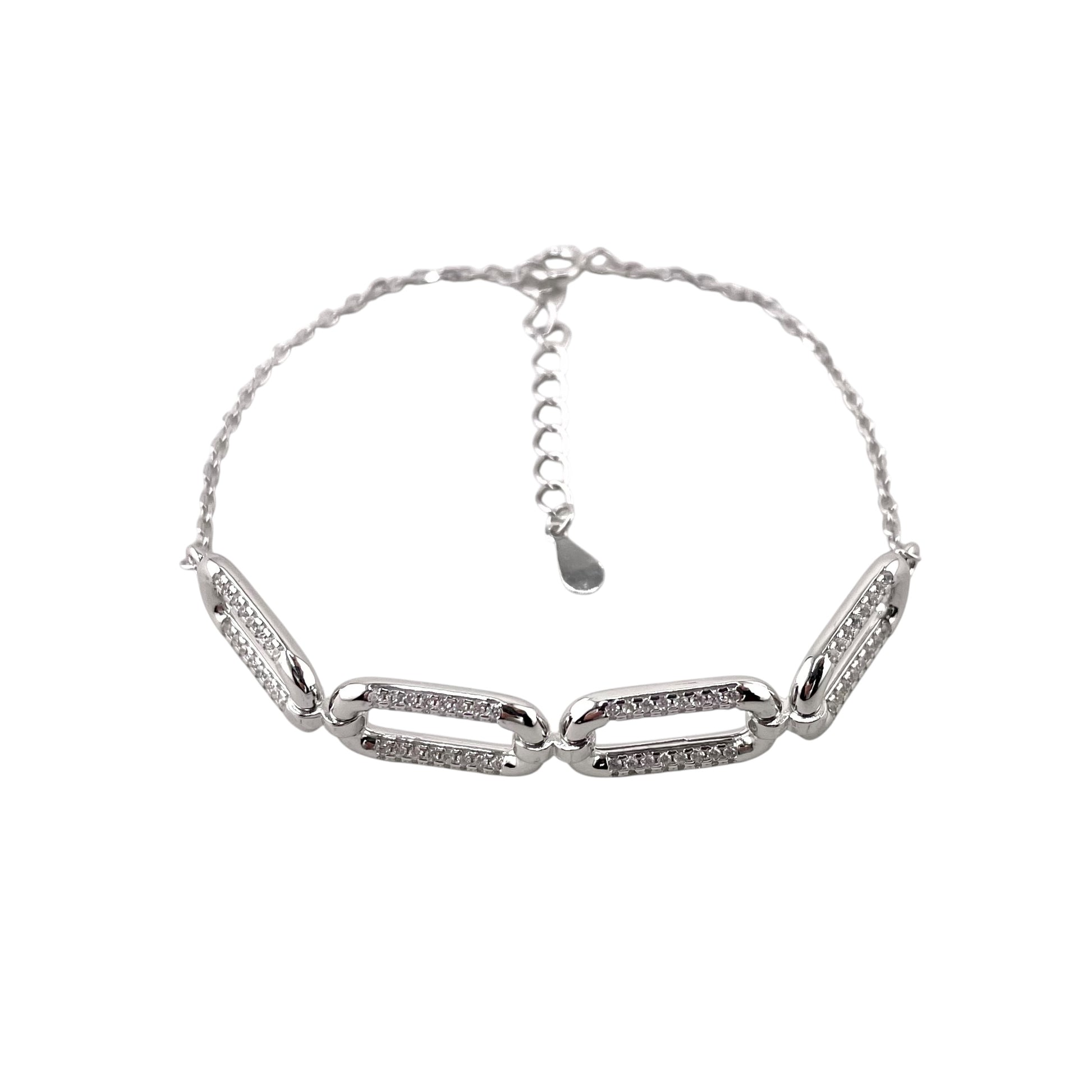 CZ Stone Oval Link Bracelet Sterling Silver. Measurements of this bracelet is 6.75" long with a 1.5" extender. The centerpiece is 8mm in width.