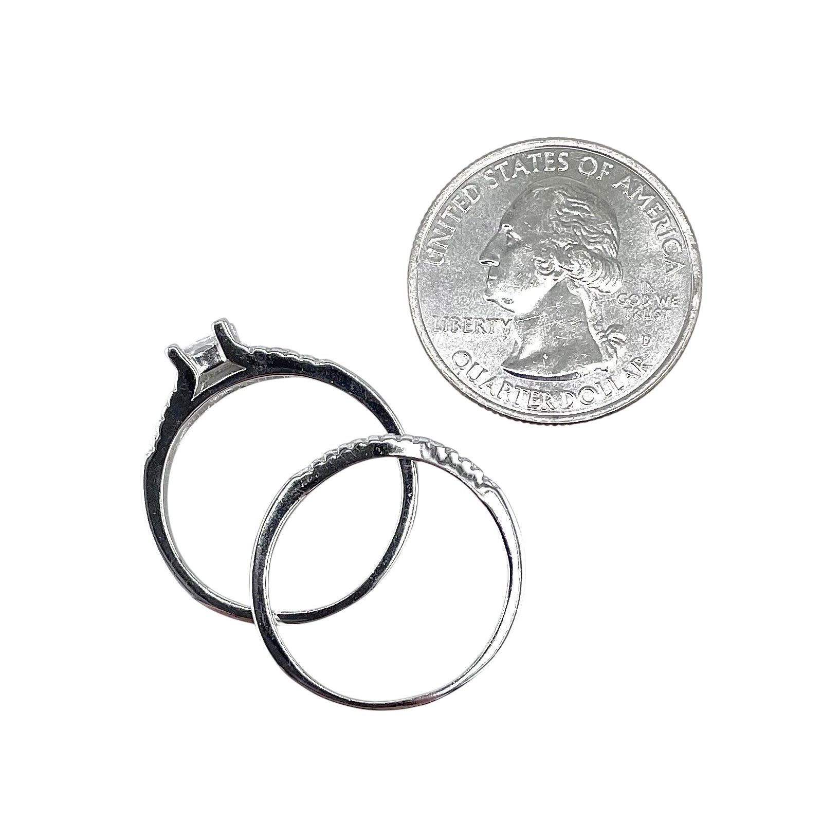 CZ Stone Princess Cut Bridal Set Band Ring Sterling Silver