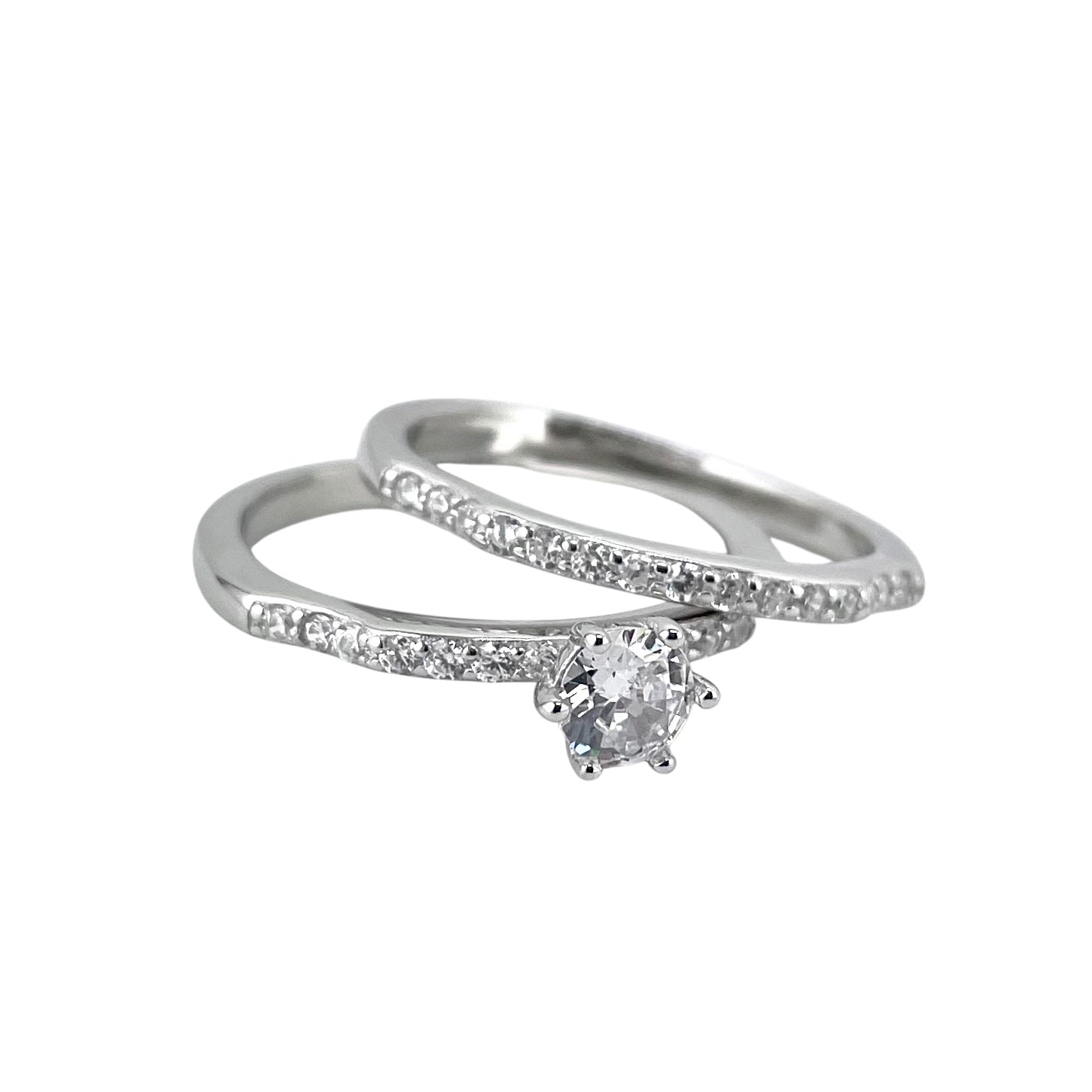 CZ Stone Round Bridal Set Band Ring Sterling Silver