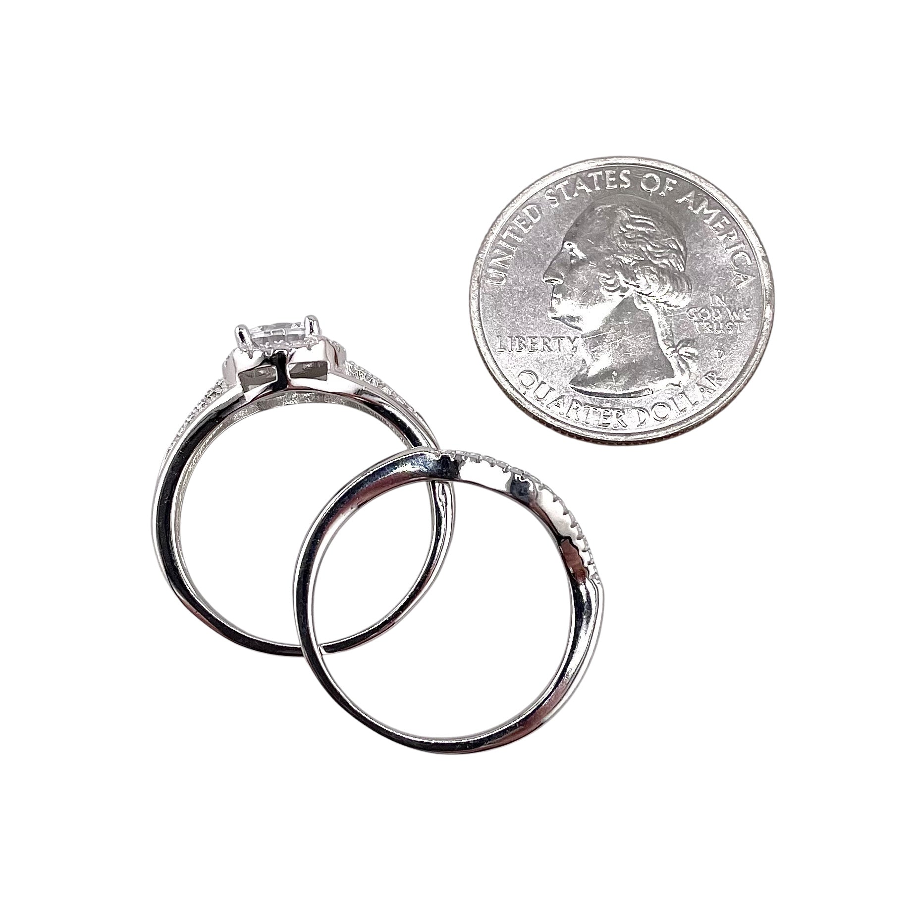 CZ Stone Round Bridal Set Band Ring Sterling Silver