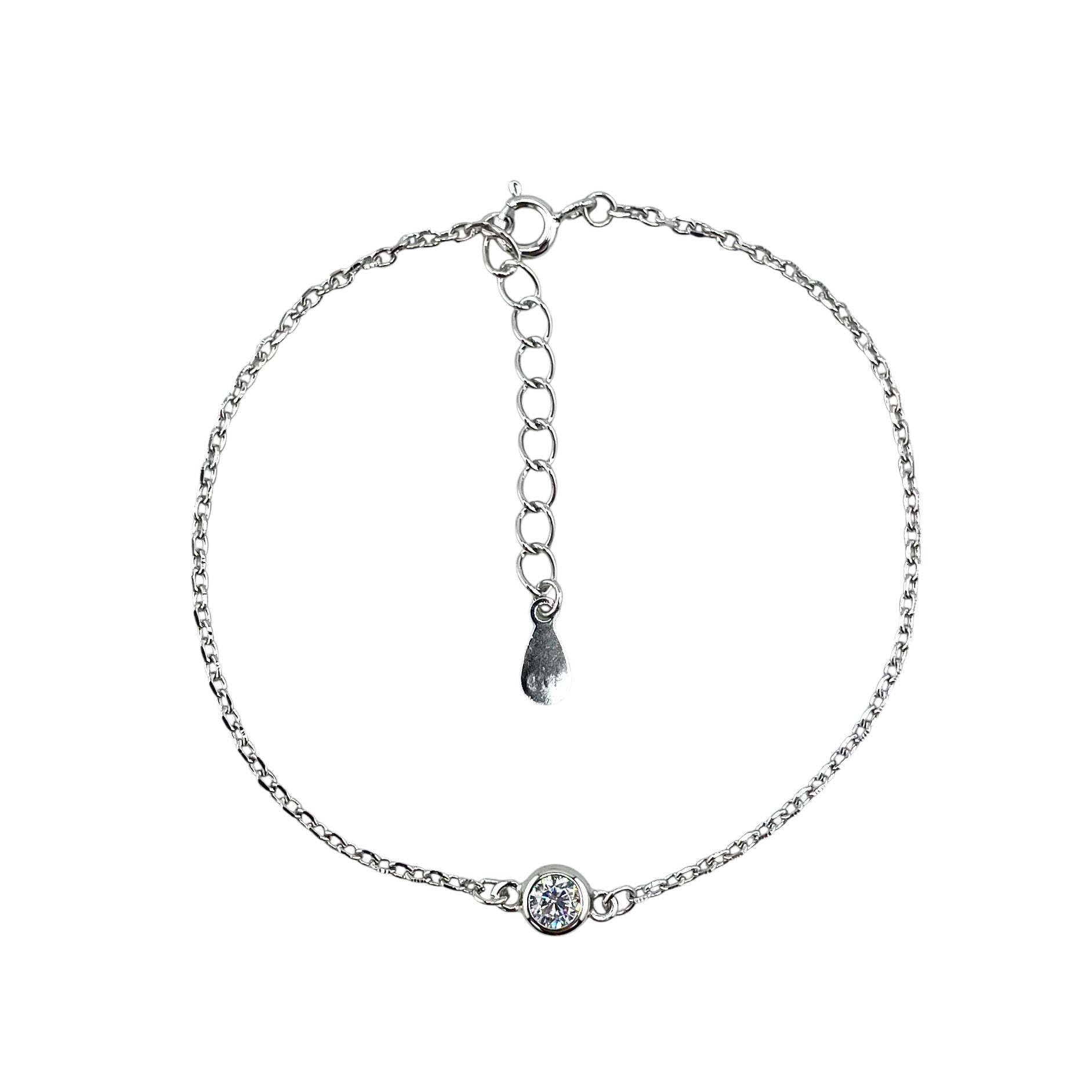 CZ Stone Round Link Bracelet Sterling Silver. Measurements of this bracelet is 6.75" long with a 1.5" extender. The centerpiece is 5mm in width.