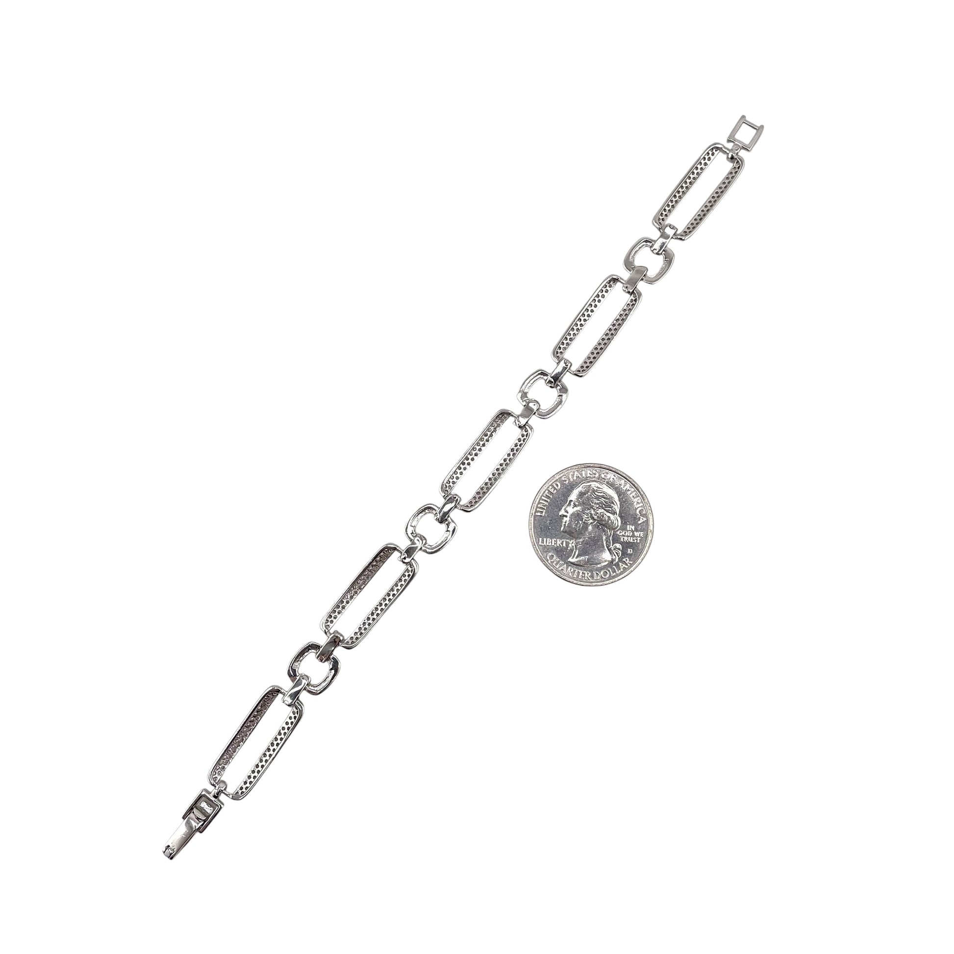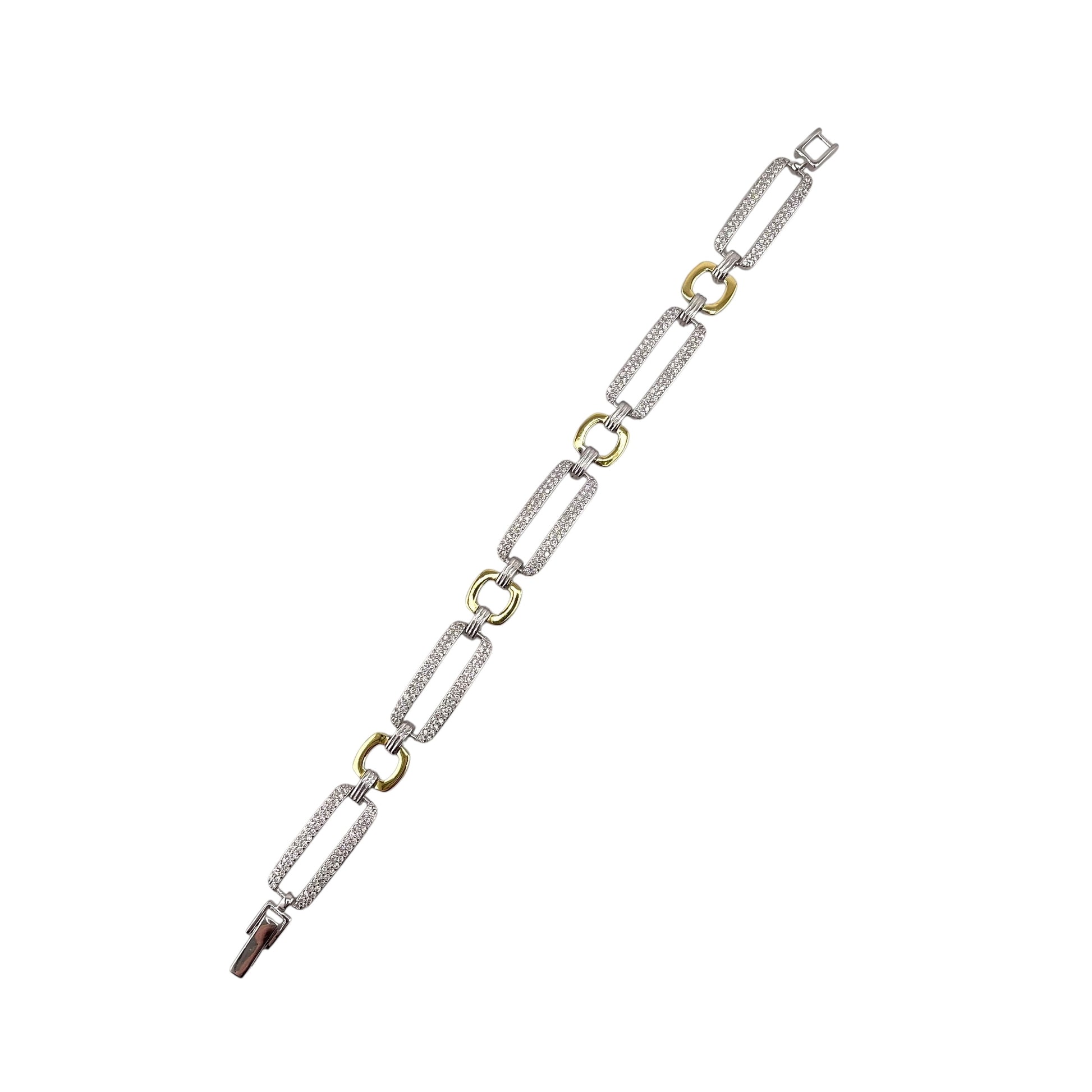 CZ Two Tone Link Bracelet Sterling Silver. Measurements of this bracelet is 7" long and 9mm in width.
