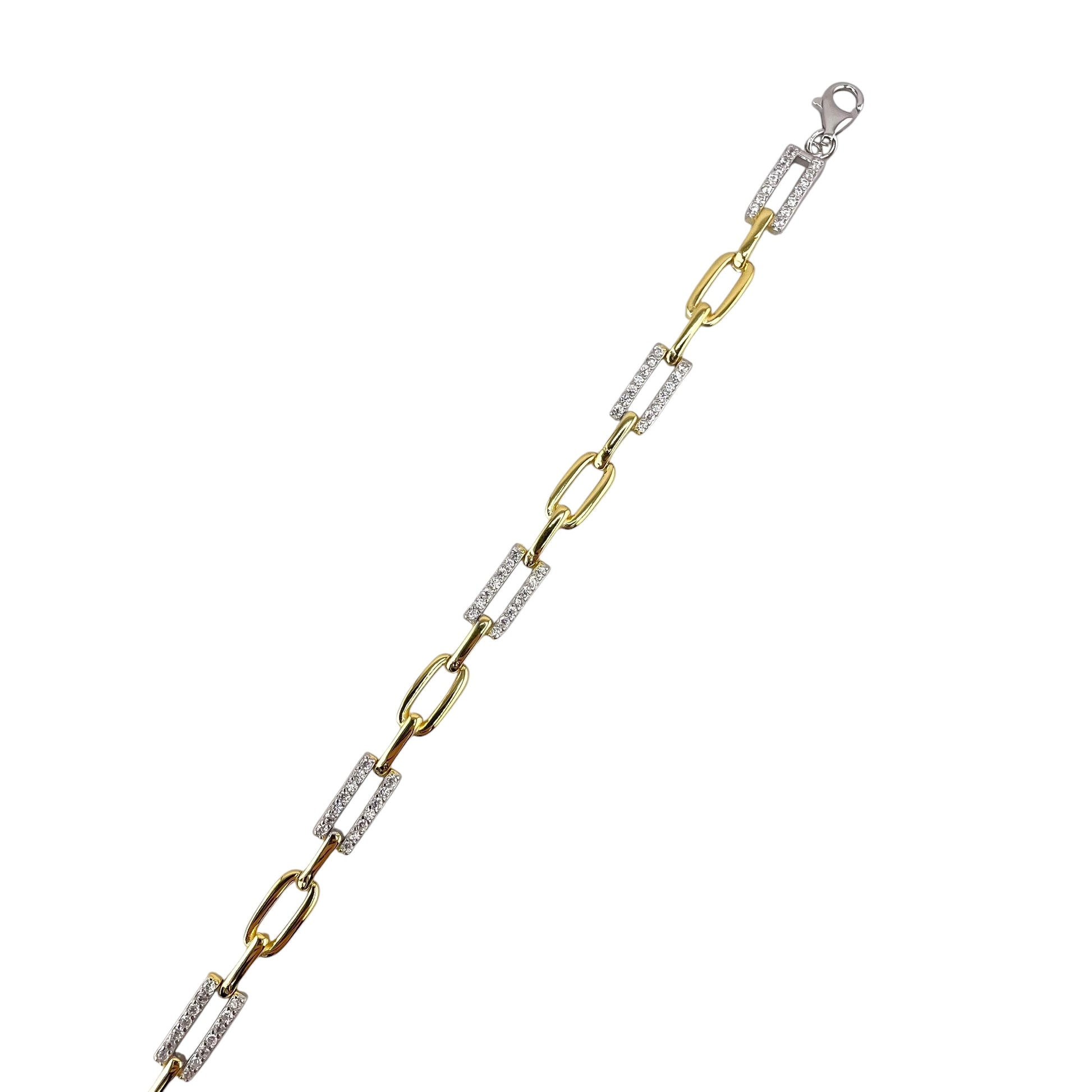 CZ Two Tone Link Bracelet Sterling Silver. Measurements of this bracelet is 7-1/4" long and 5mm in width with a 1.25" extender.