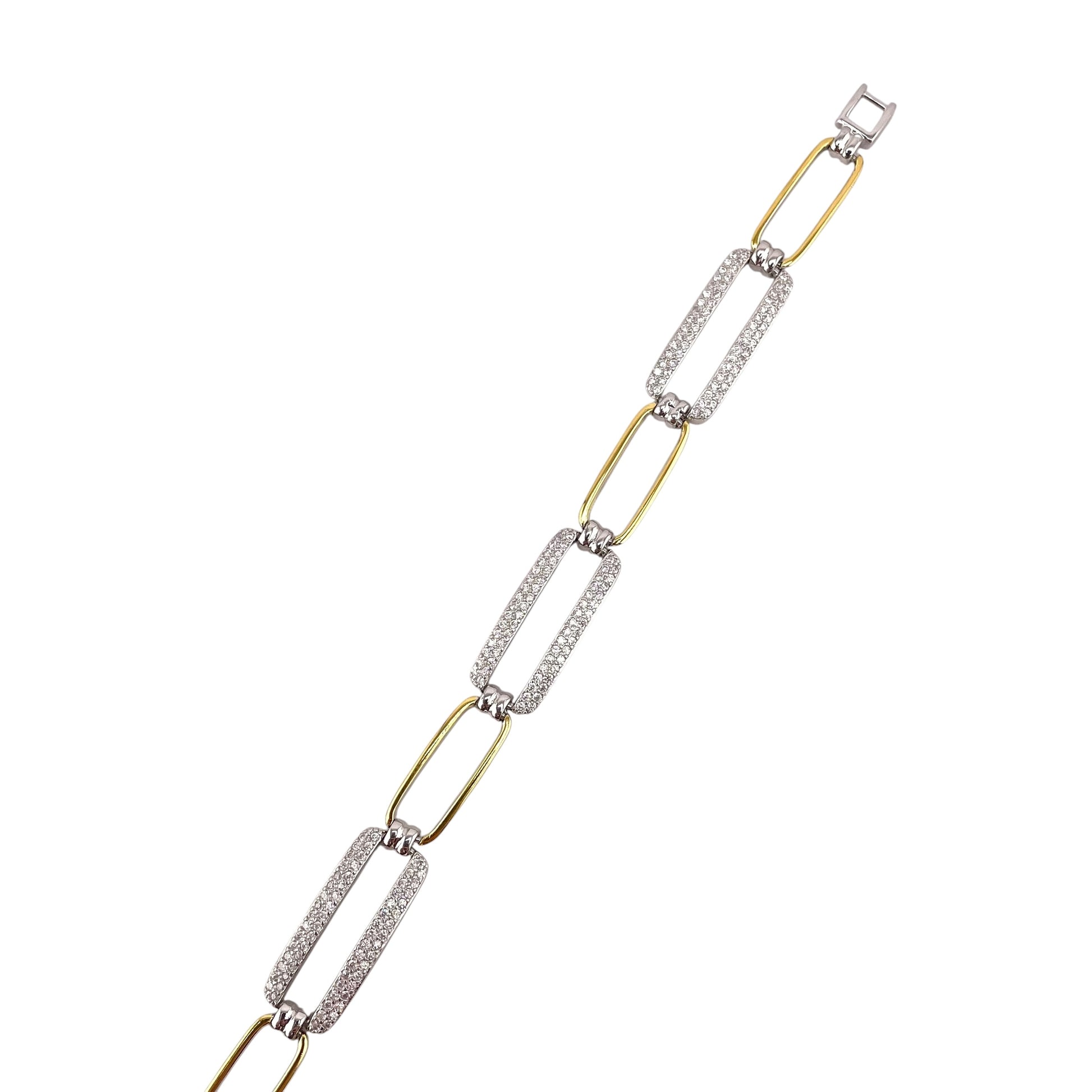 CZ Two Tone Link Bracelet Sterling Silver