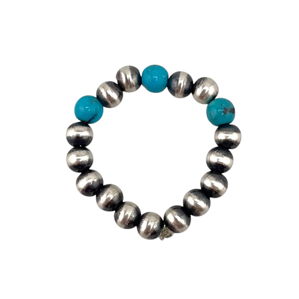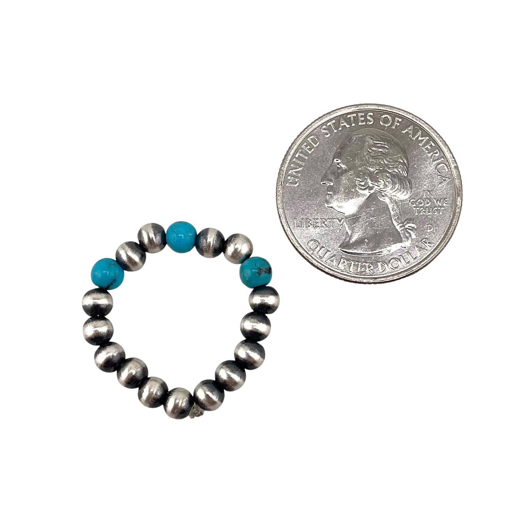 Desert Pearl 3 Blue Turquoise Bead 4mm Stretch Ring Sterling Silver