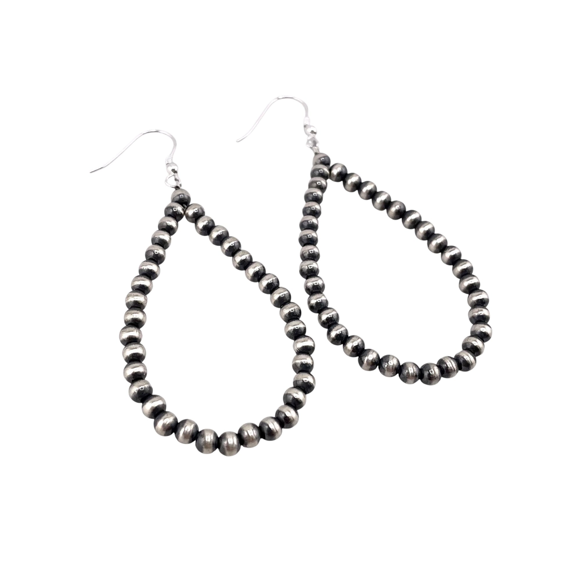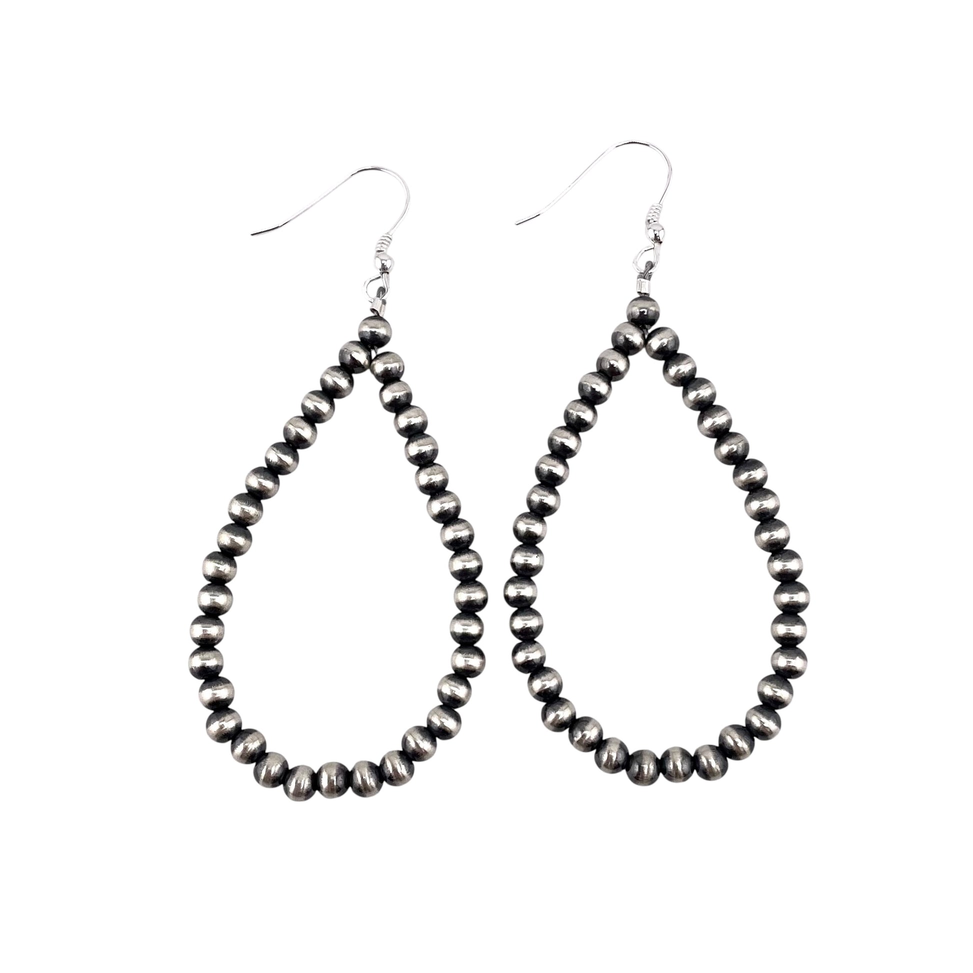 Desert Pearl 4mm Bead Dangle Loop Earrings Sterling Silver. Measurements of these earrings are 3" long and 1-1/2" wide.