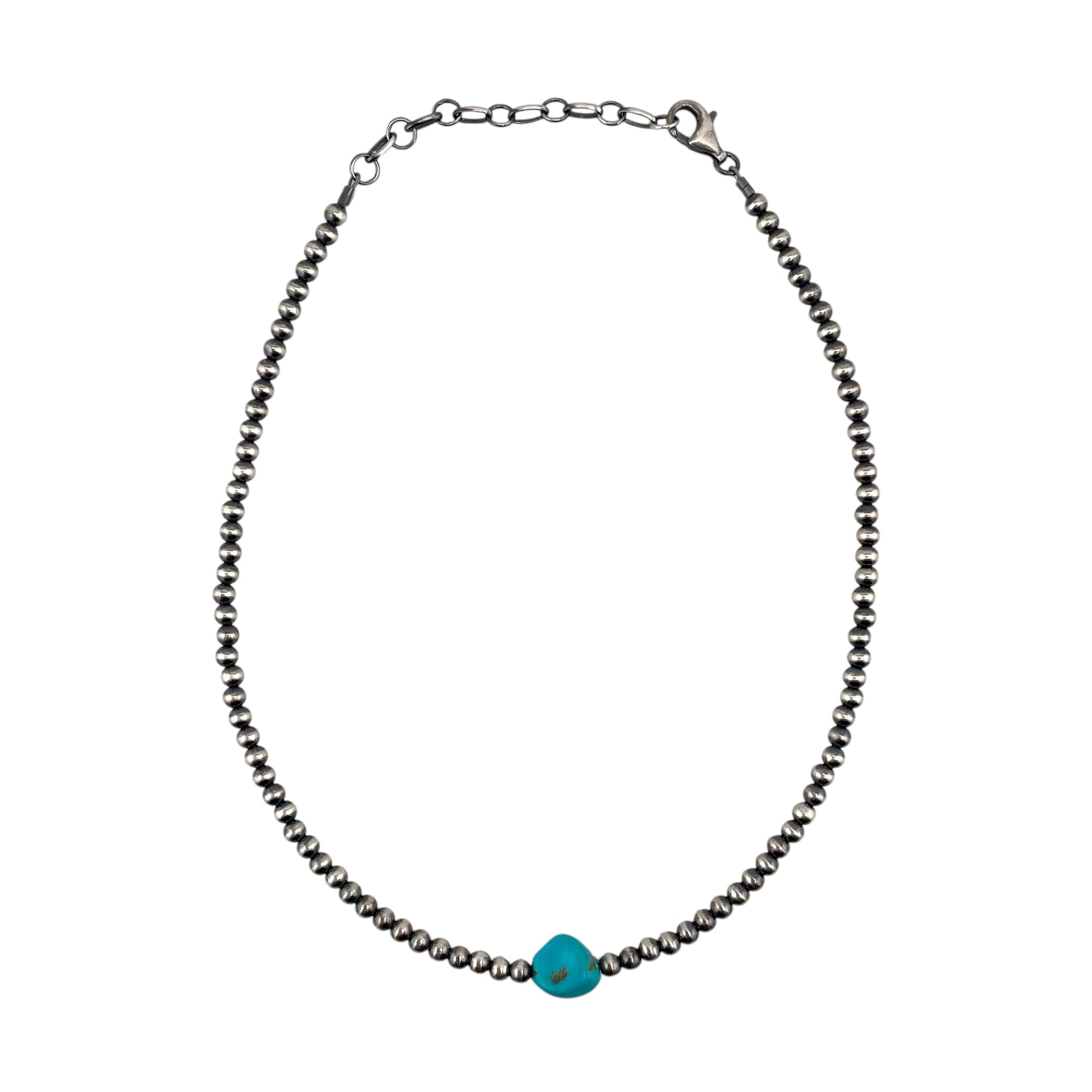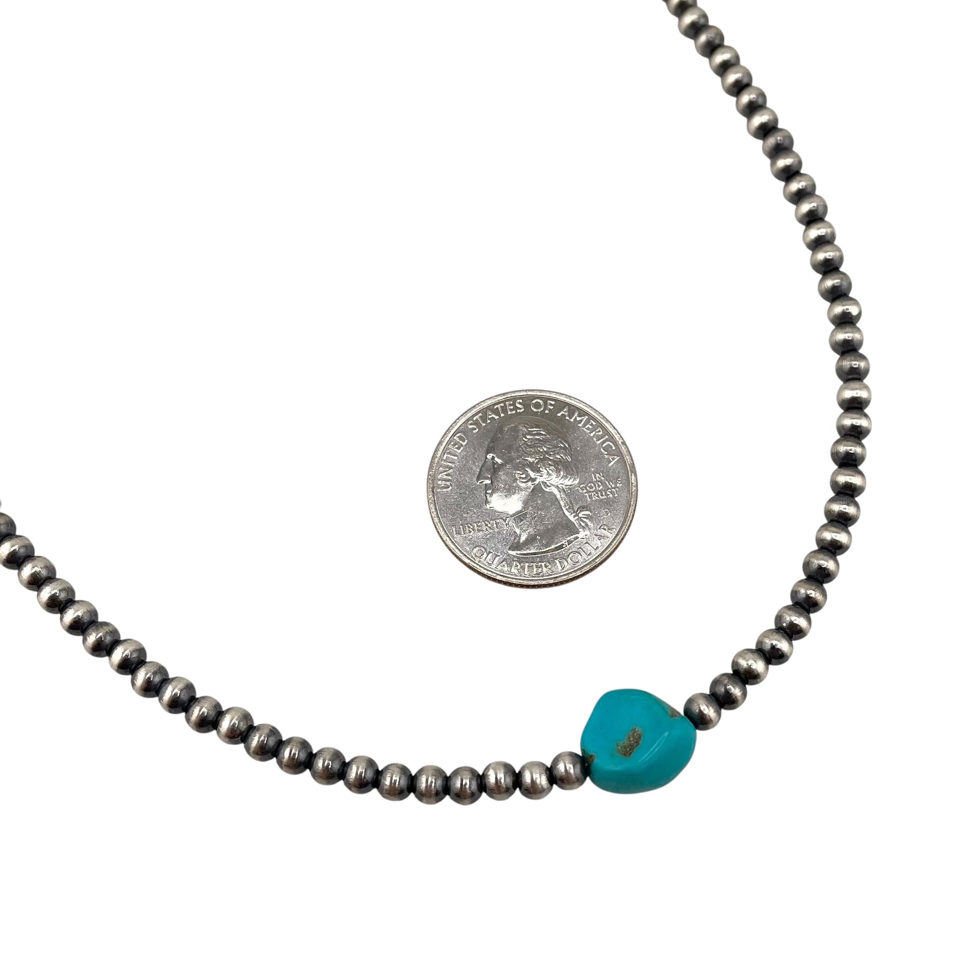 Desert Pearls 4mm Bead Turquoise Nugget Necklace Sterling Silver