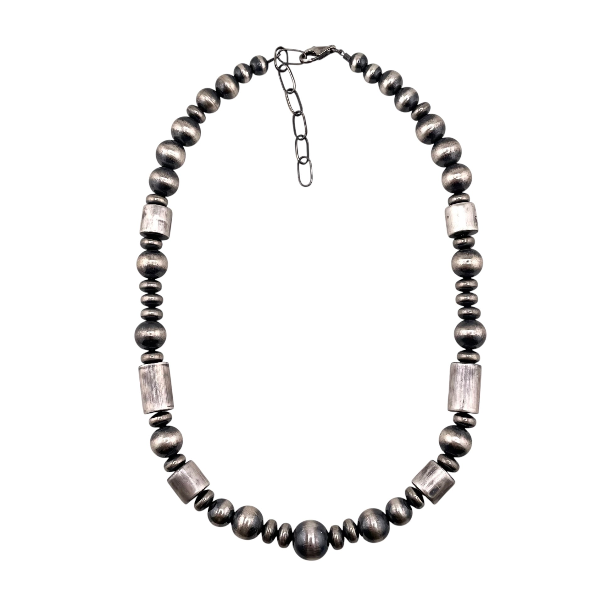 Desert Pearls Round Saucer Cylinder Bead Necklace Sterling Silver