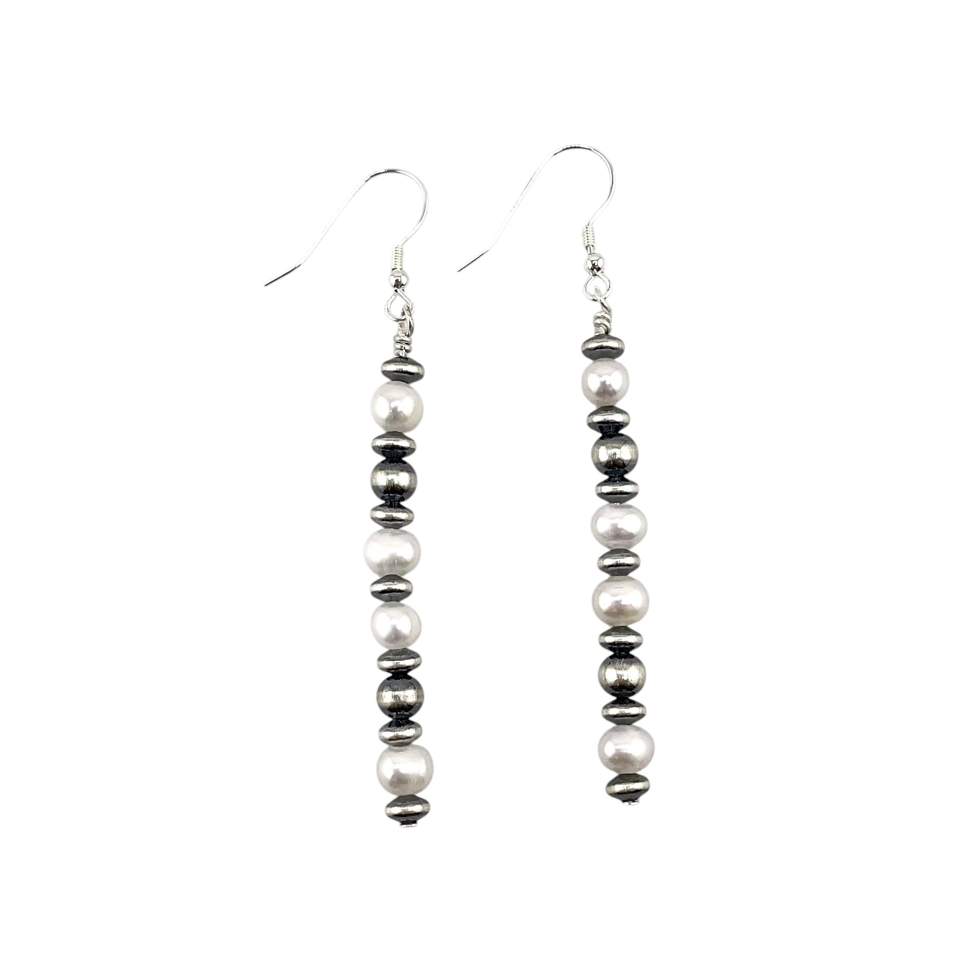 Desert Pearls & White Pearl Bead Drop Dangle Earrings Sterling Silver