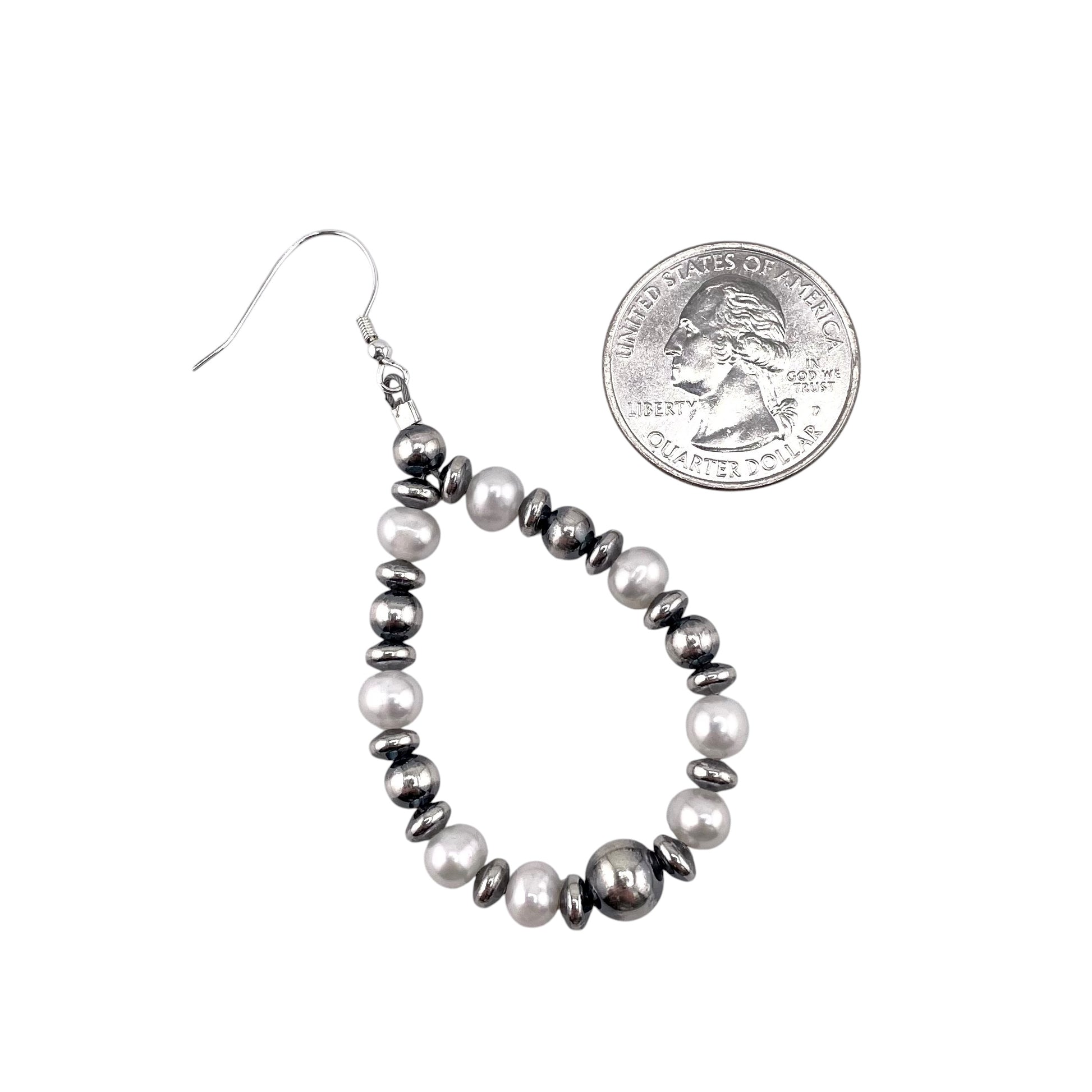 Desert Pearls & White Pearl Bead Tear Drop Dangle Earrings Sterling Silver. Measurements of these earrings are 2- 1/2" long and 1- 1/8" wide.