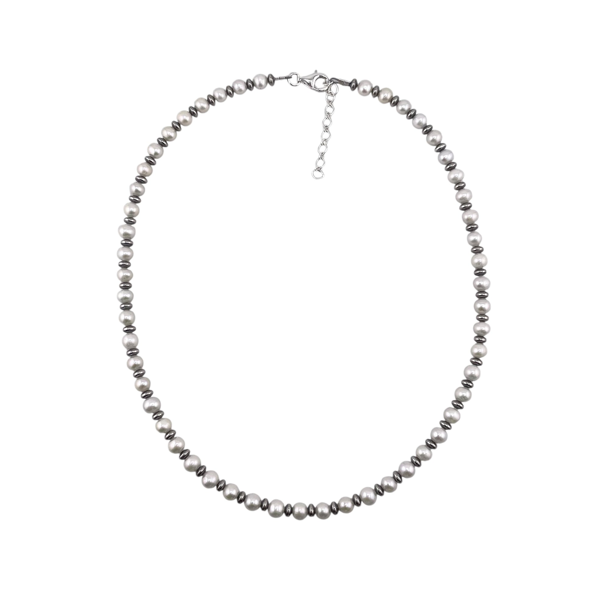Desert Pearls & White Pearls Rondelle Bead Necklace Sterling Silver