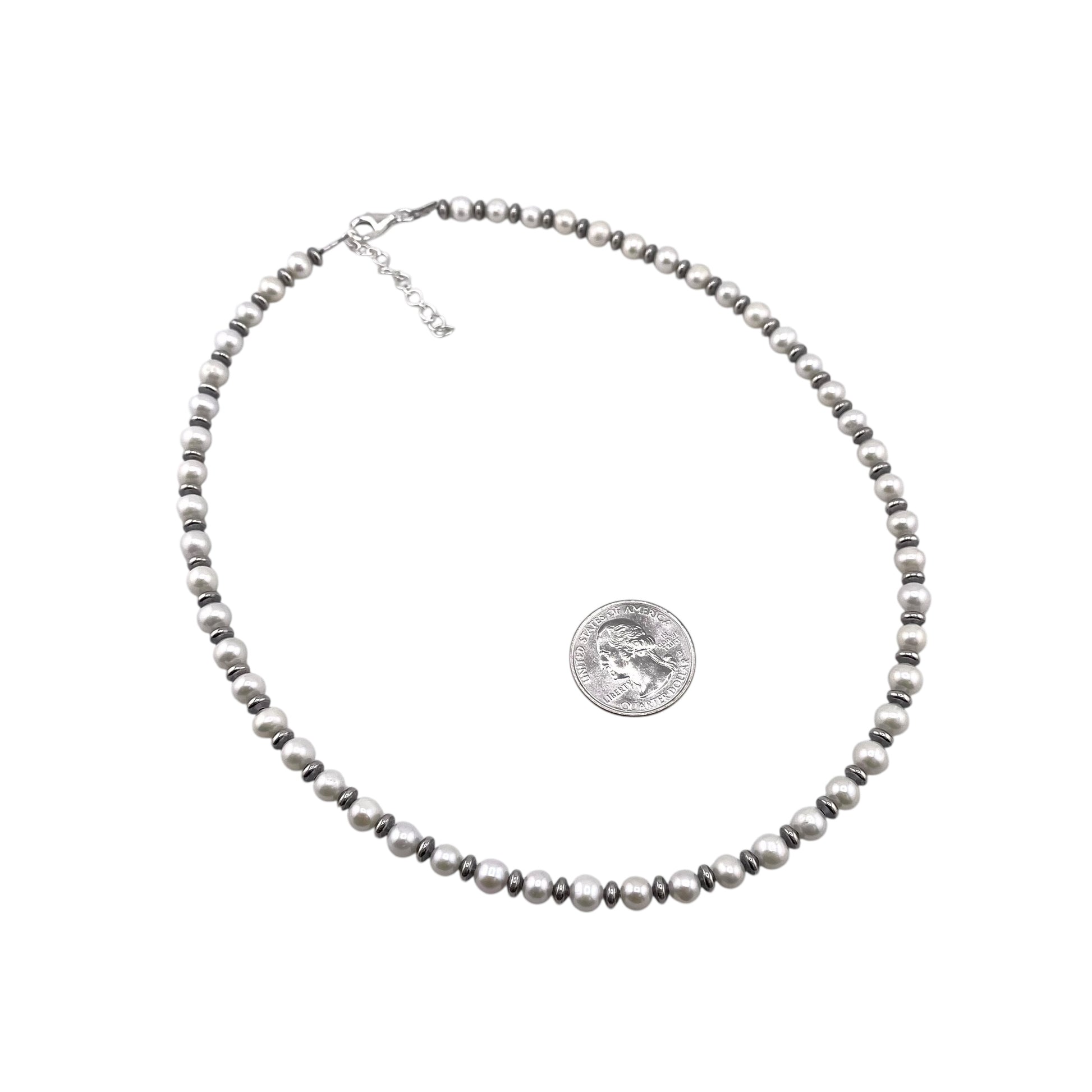 Desert Pearls & White Pearls Bead Necklace Sterling Silver. Necklace is 18" long with a 2" extender. It is 6mm at the widest point.